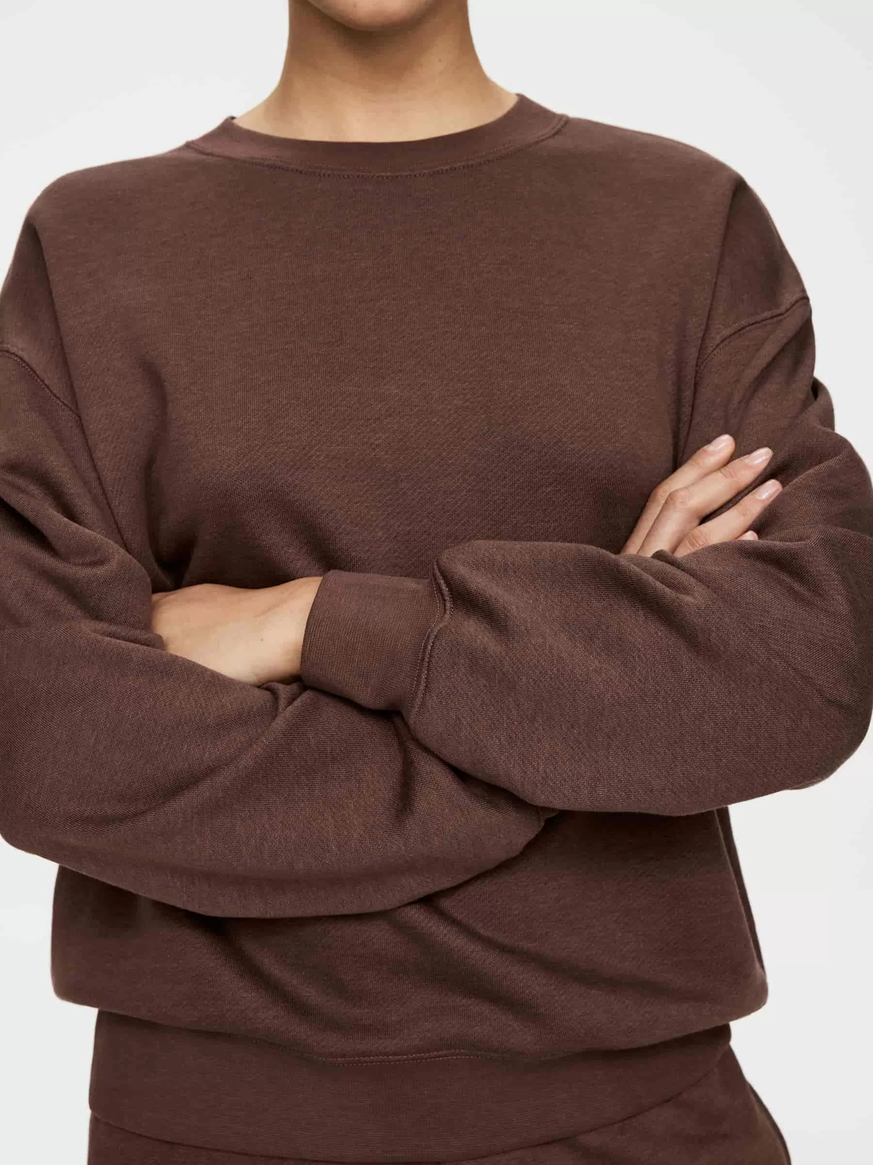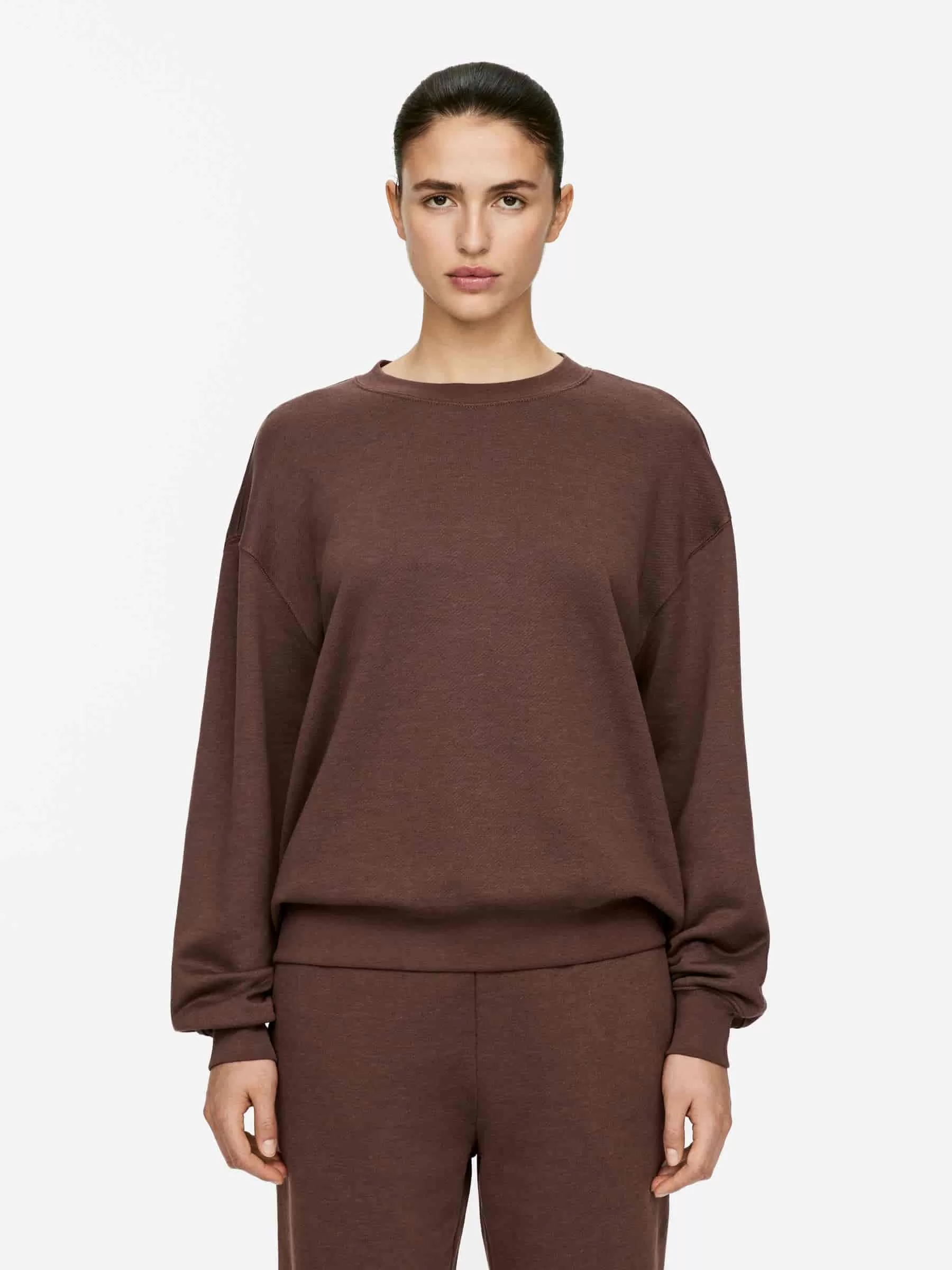 Mjuk sweatshirt tillverkad av en bomulls-modal blandning. Designad för en lös passform med ribbad kant.