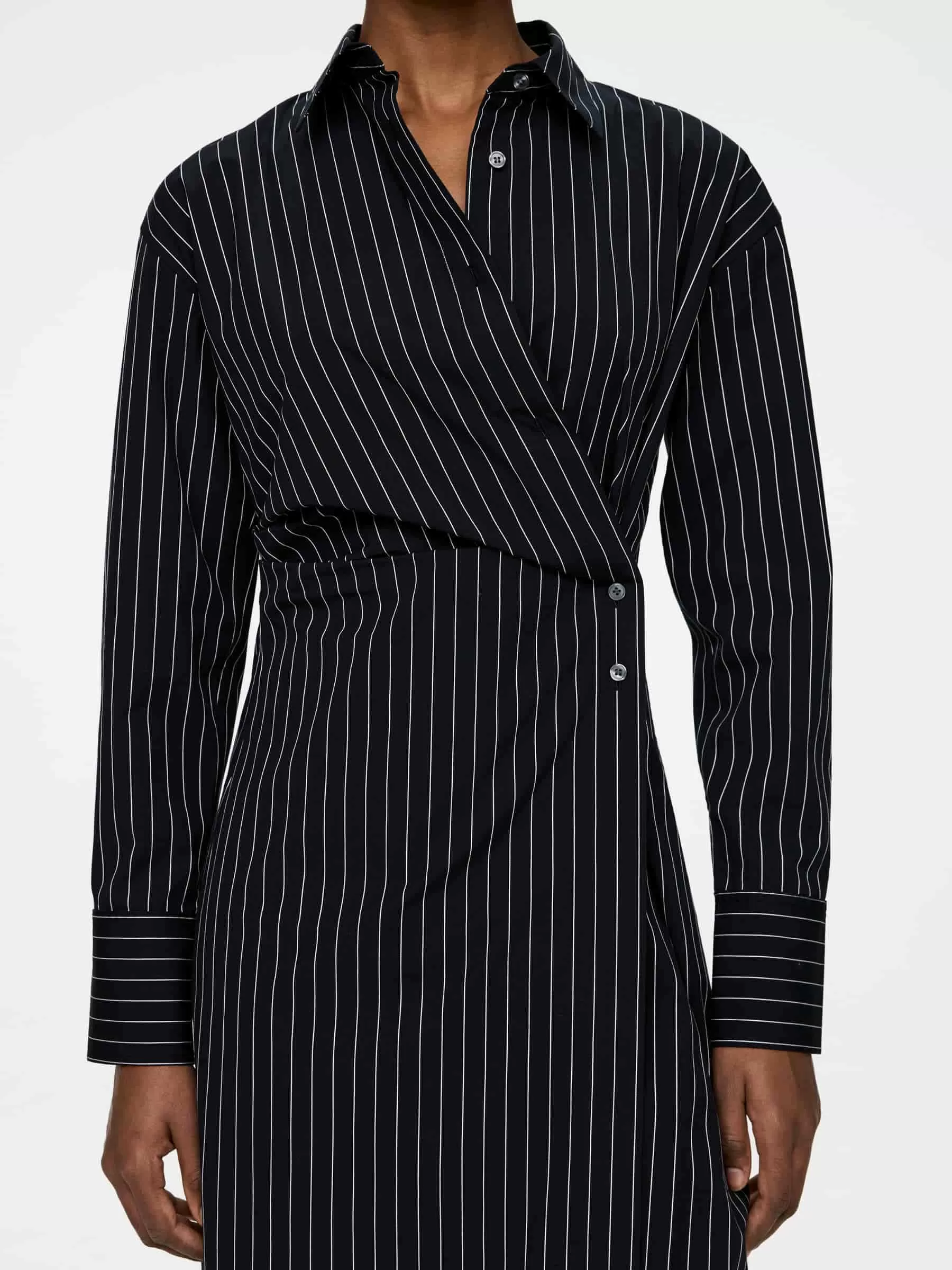 Omlottklänning tillverkad av bomull med en inslag av elastan för stretch. En mellanlång modell med slits i sidorna och knäppning. Normal passform.