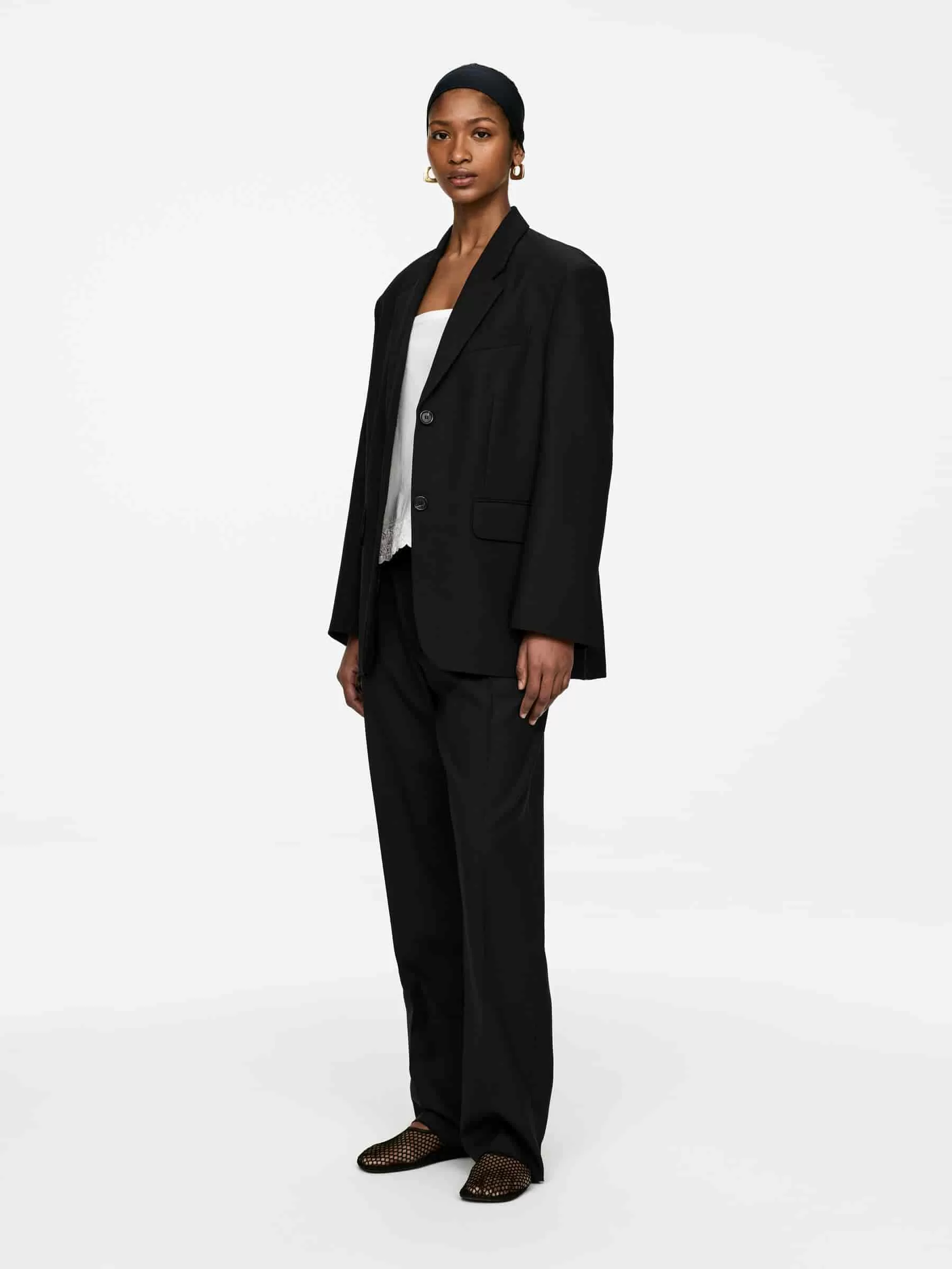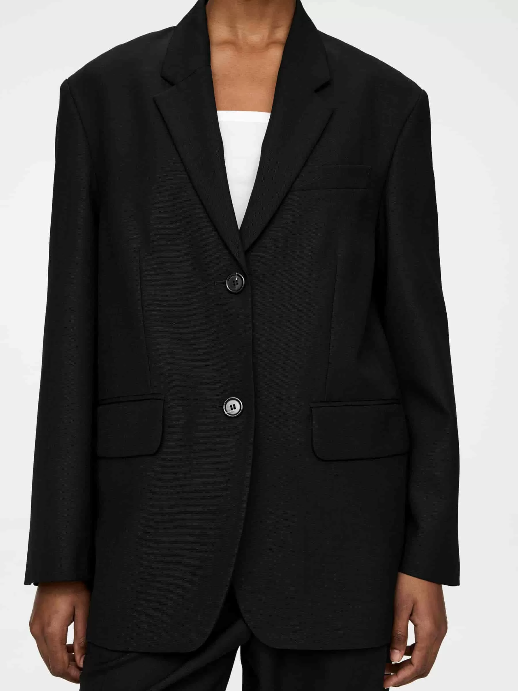 Enknäppt kavaj med överdimensionerad passform. En helfodrad stil med tvåknappsstängning och fickor med lock och en enkel bröstficka. Skaltyget innehåller 45 % RWS-ull (TE-00047206). Produkter certifierade enligt Responsible Wool Standard (RWS) innehåller ullfibrer från gårdar som är oberoende certifierade enligt kraven på djurskydd och markförvaltning.