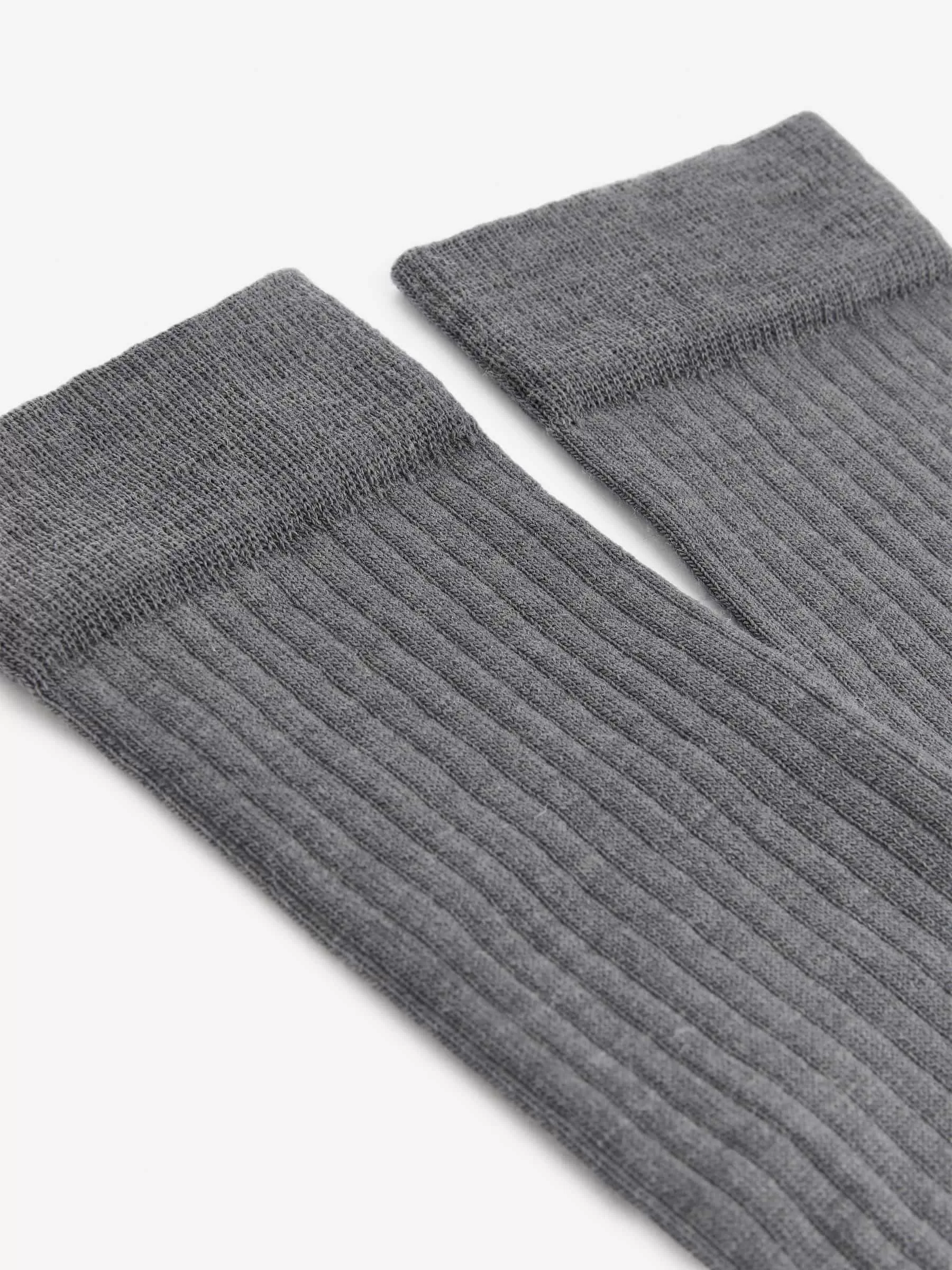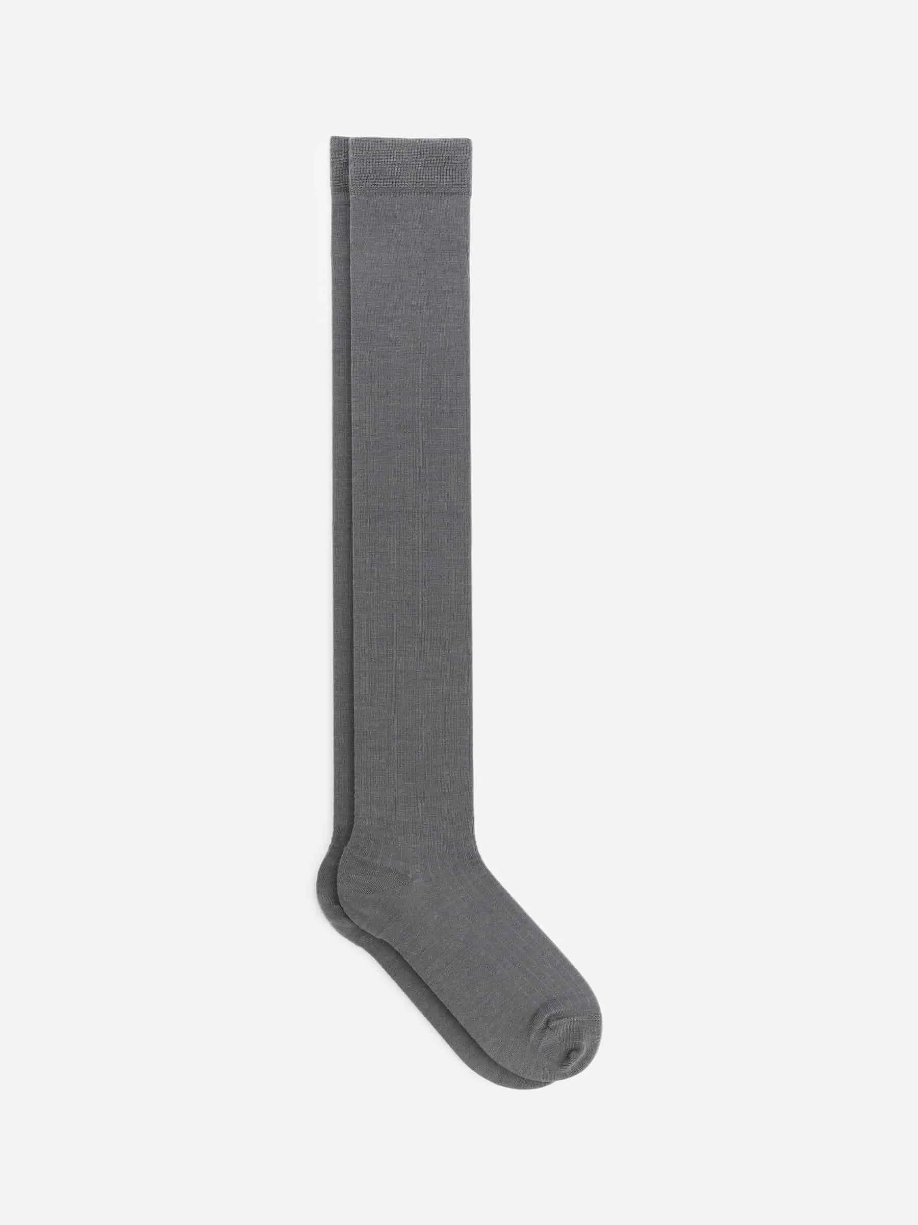 Räbbade strumpor över knäet gjorda av en ullblandning. Strumporna innehåller 60 % RWS-ull, certifierad av kontrollförbundet 822940. Produkter certifierade enligt Responsible Wool Standard (RWS) innehåller ullfiber från gårdar som är oberoende certifierade enligt kraven på djurskydd och markskötsel.