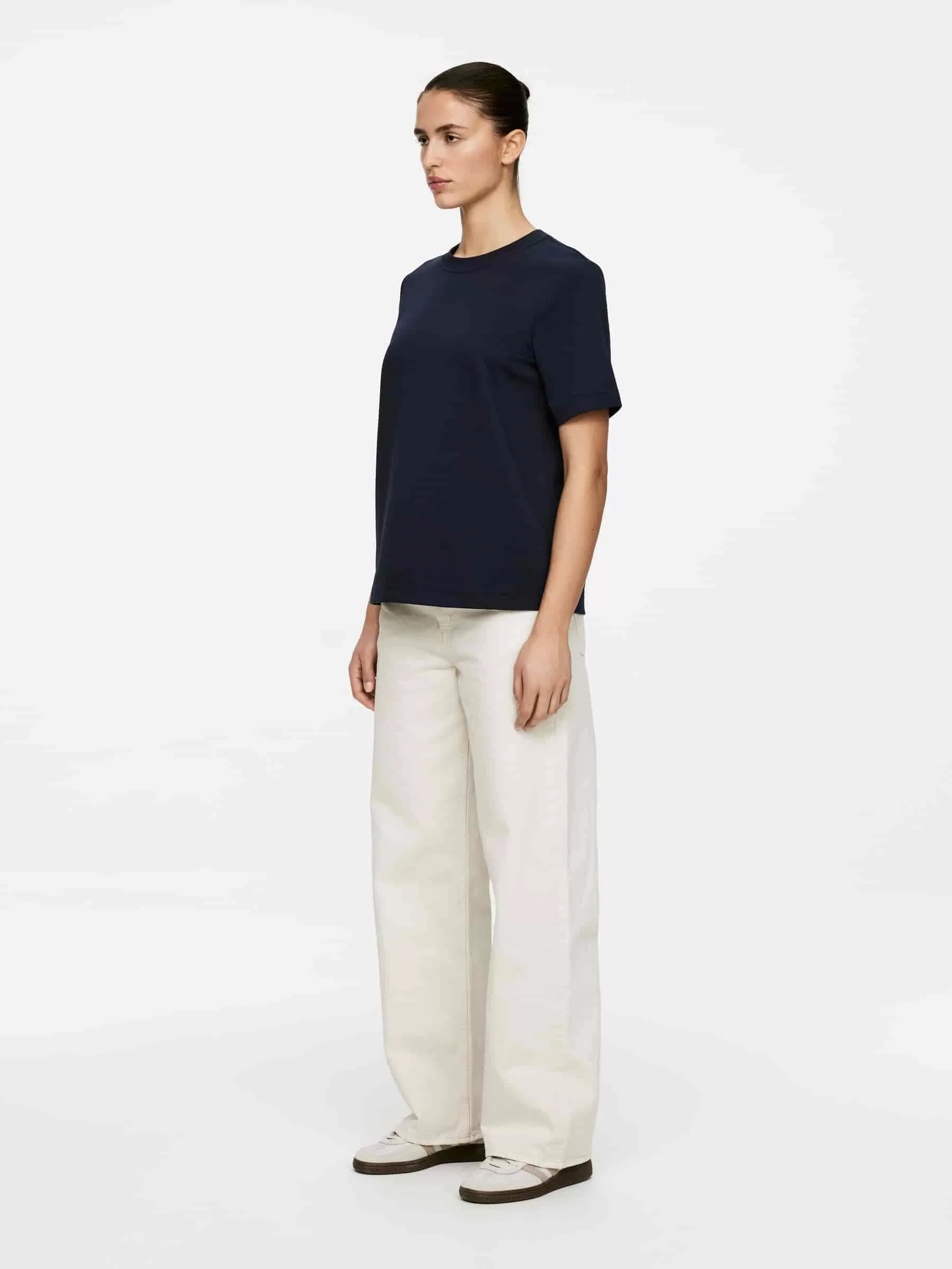 T-shirt skuren från en kraftig interlocktröja. Den robusta men mjuka känslan ger en smart look som håller formen. En kortärmad stil med rund halsringning och klassisk passform.