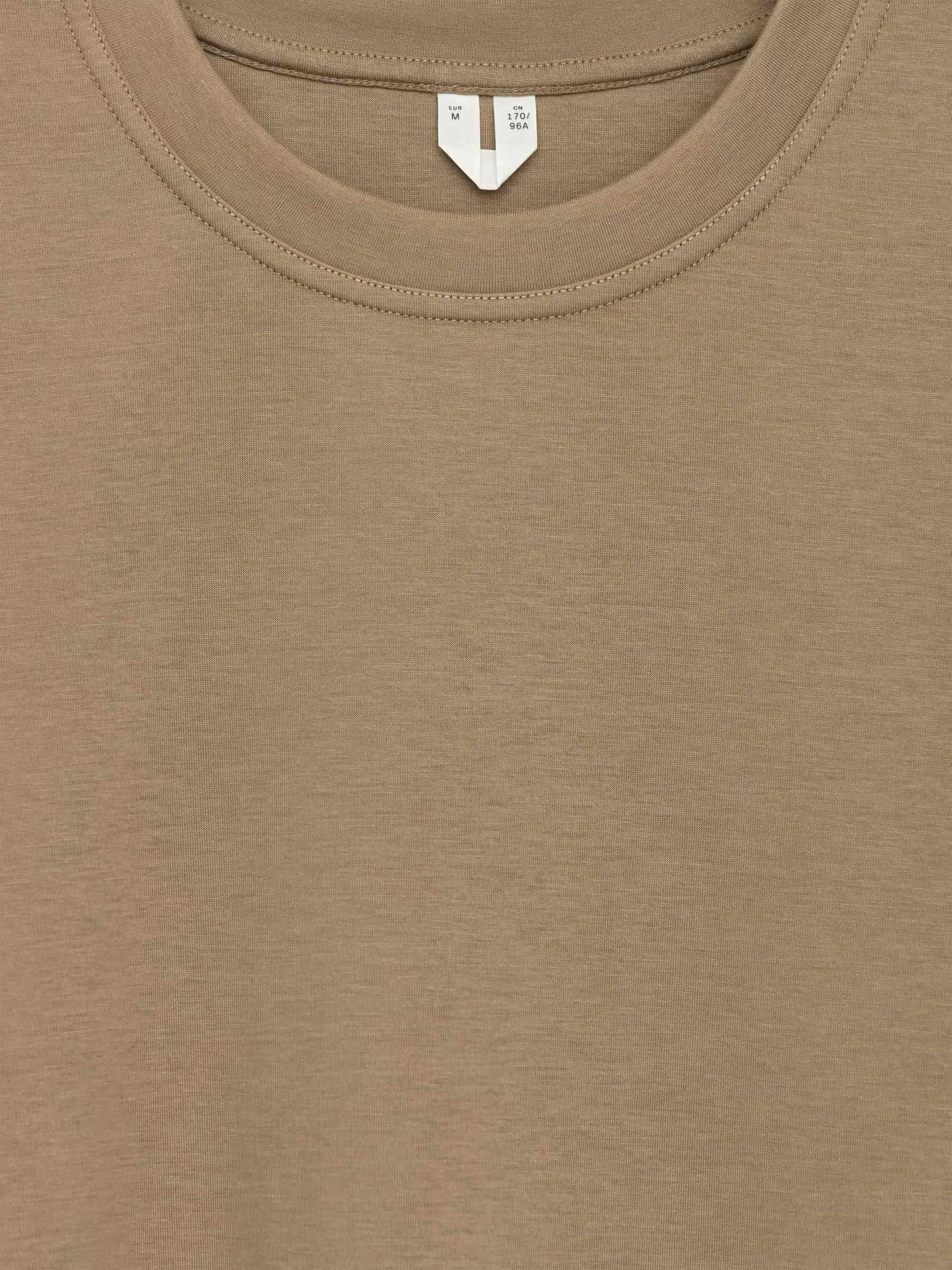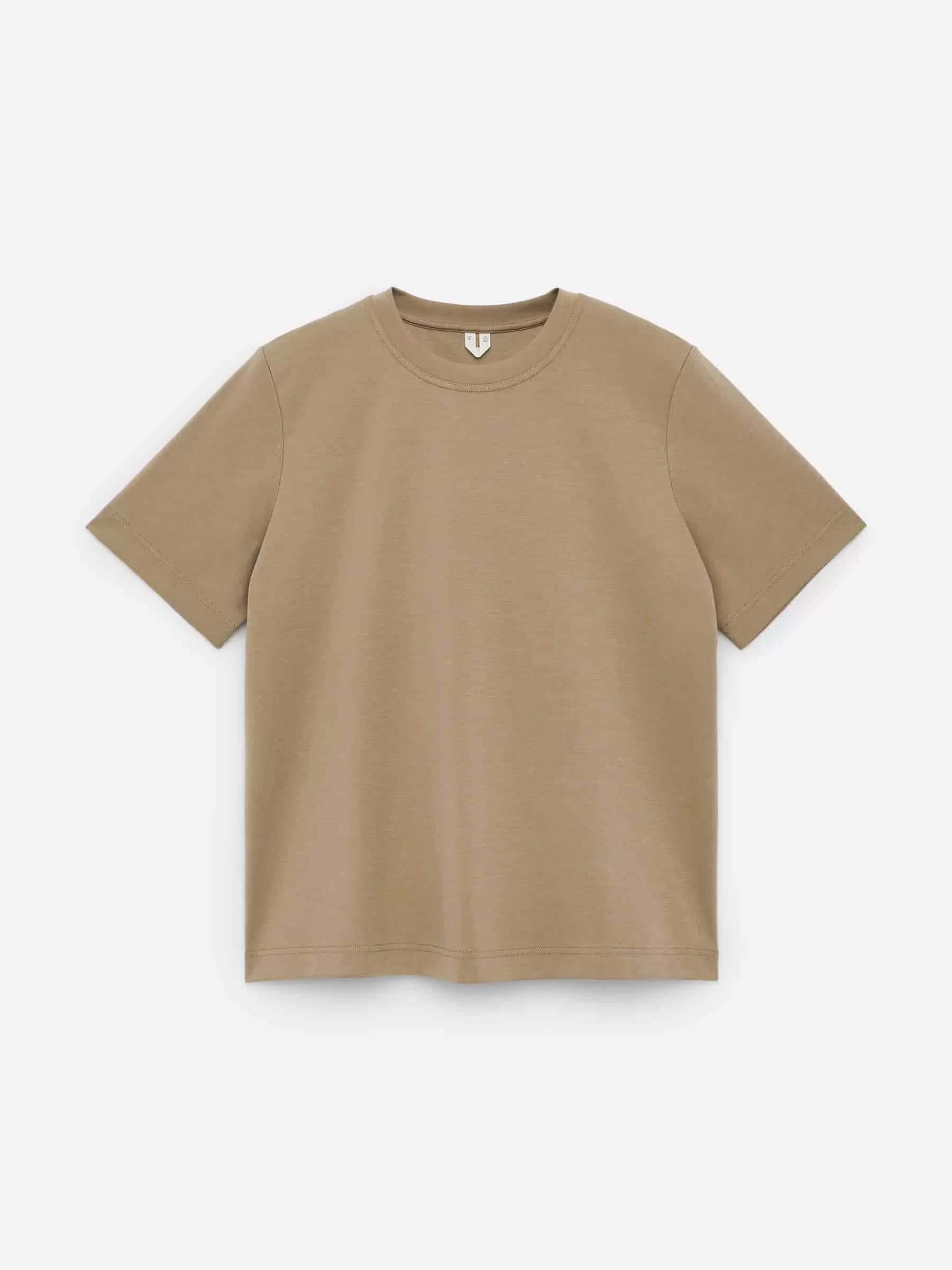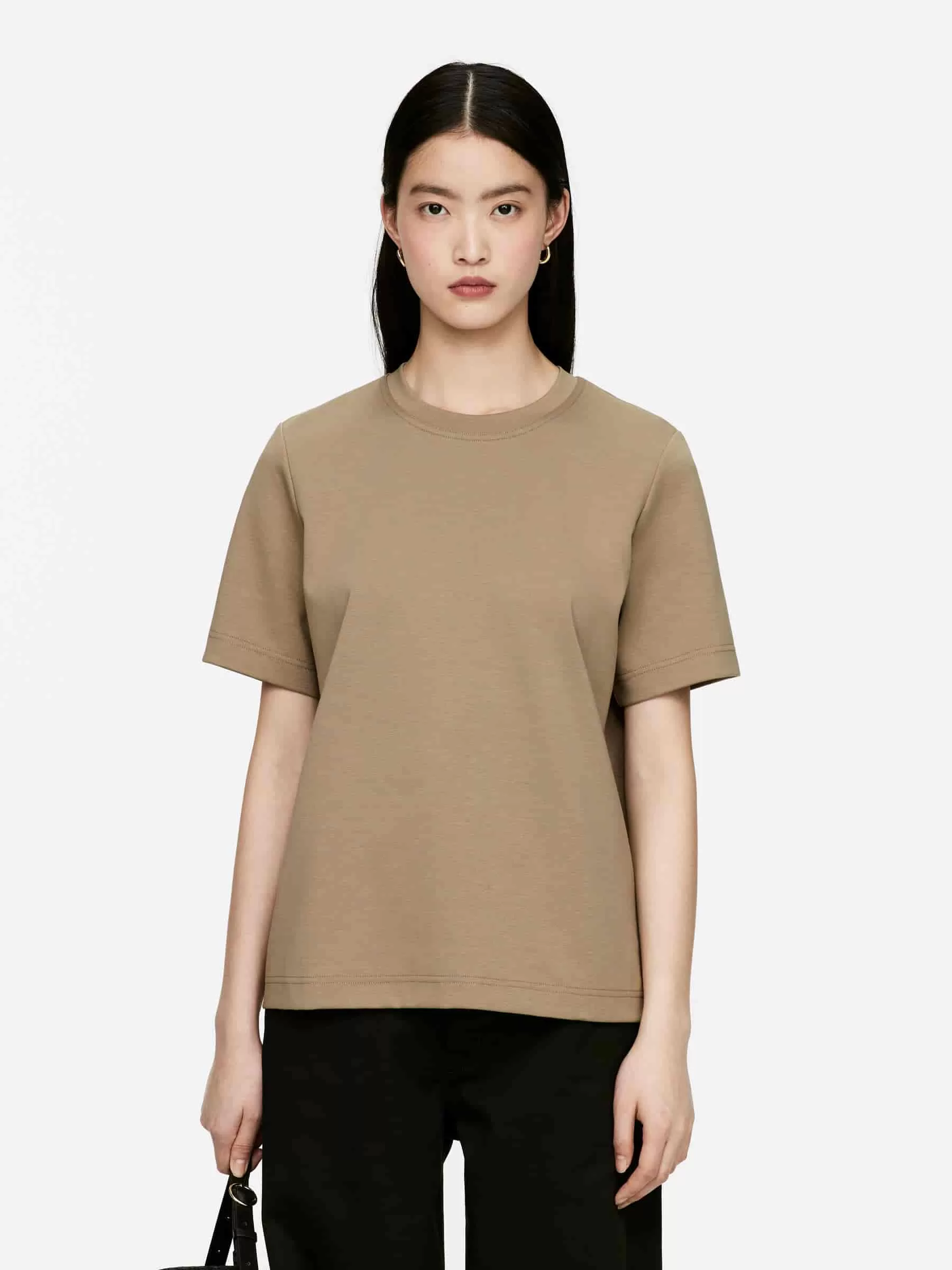 T-shirt skuren från en kraftig interlocktröja. Den robusta men mjuka känslan ger en smart look som håller formen. En kortärmad stil med rund halsringning och klassisk passform.