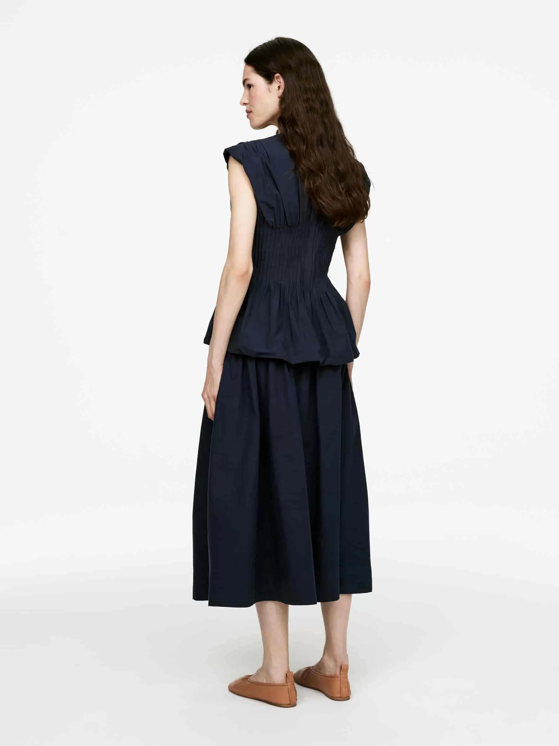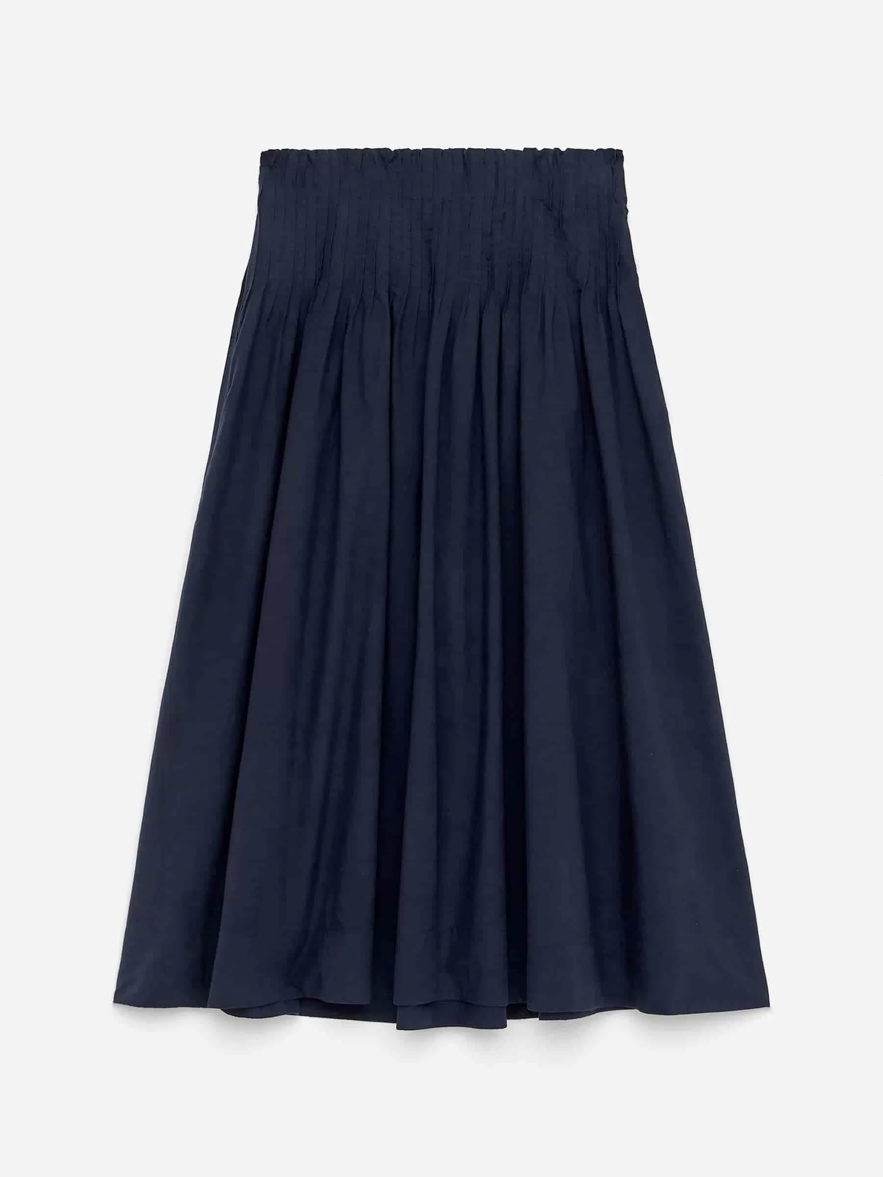 ARKE Dam Pintuck bomullskjol Mörkblå