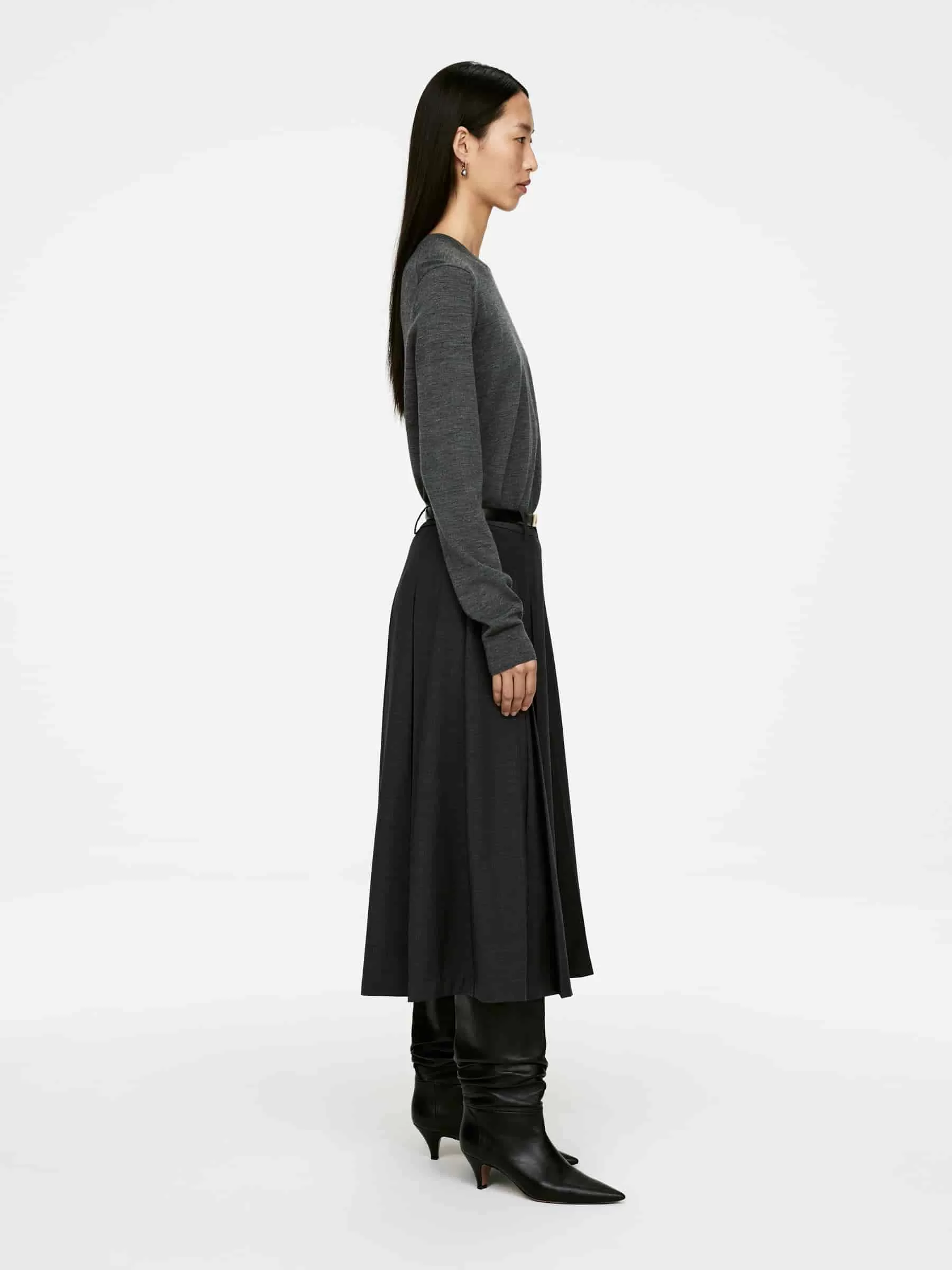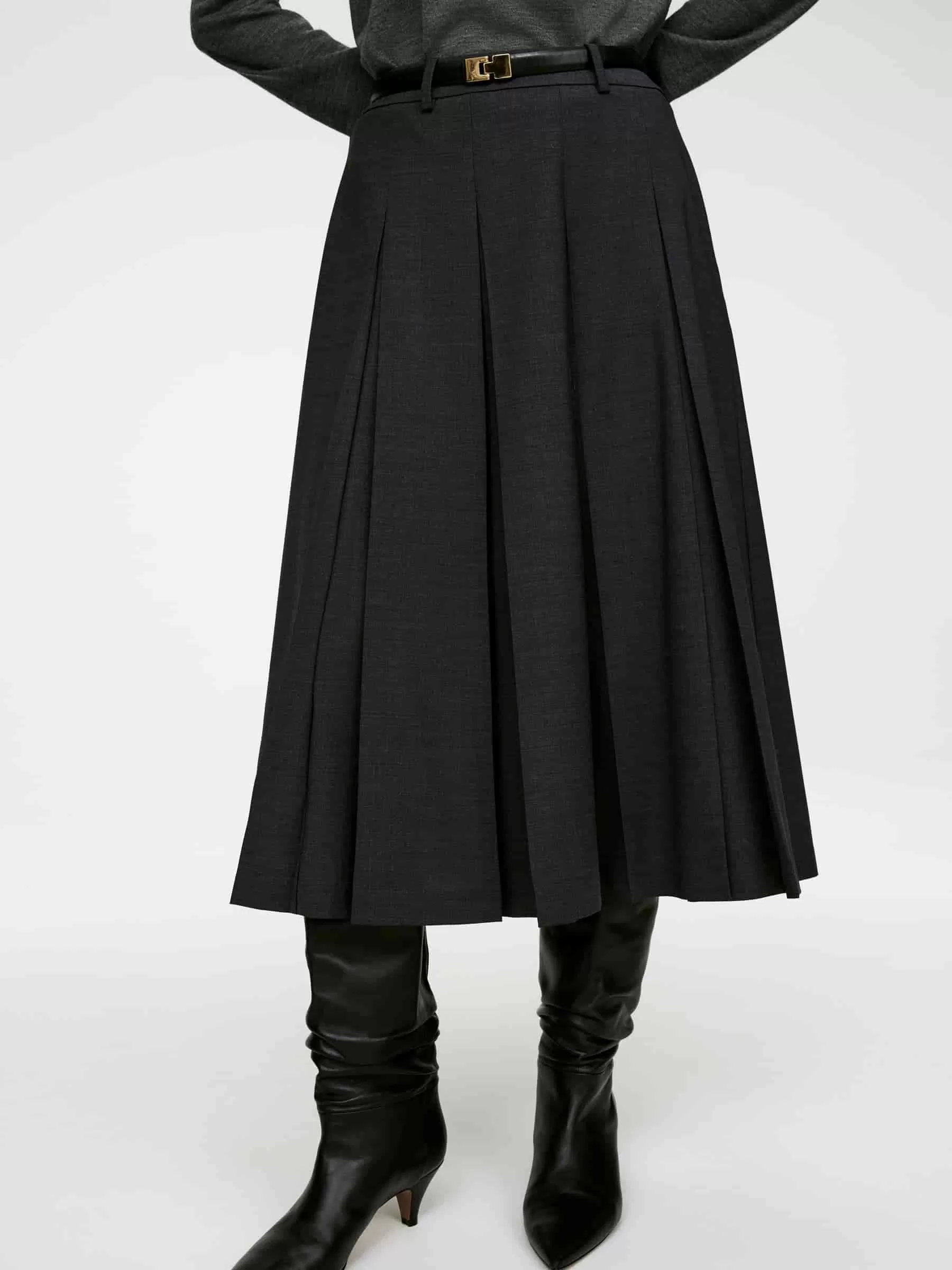 ARKE Dam Plisserad kjol i ullblandning Mörkgrå