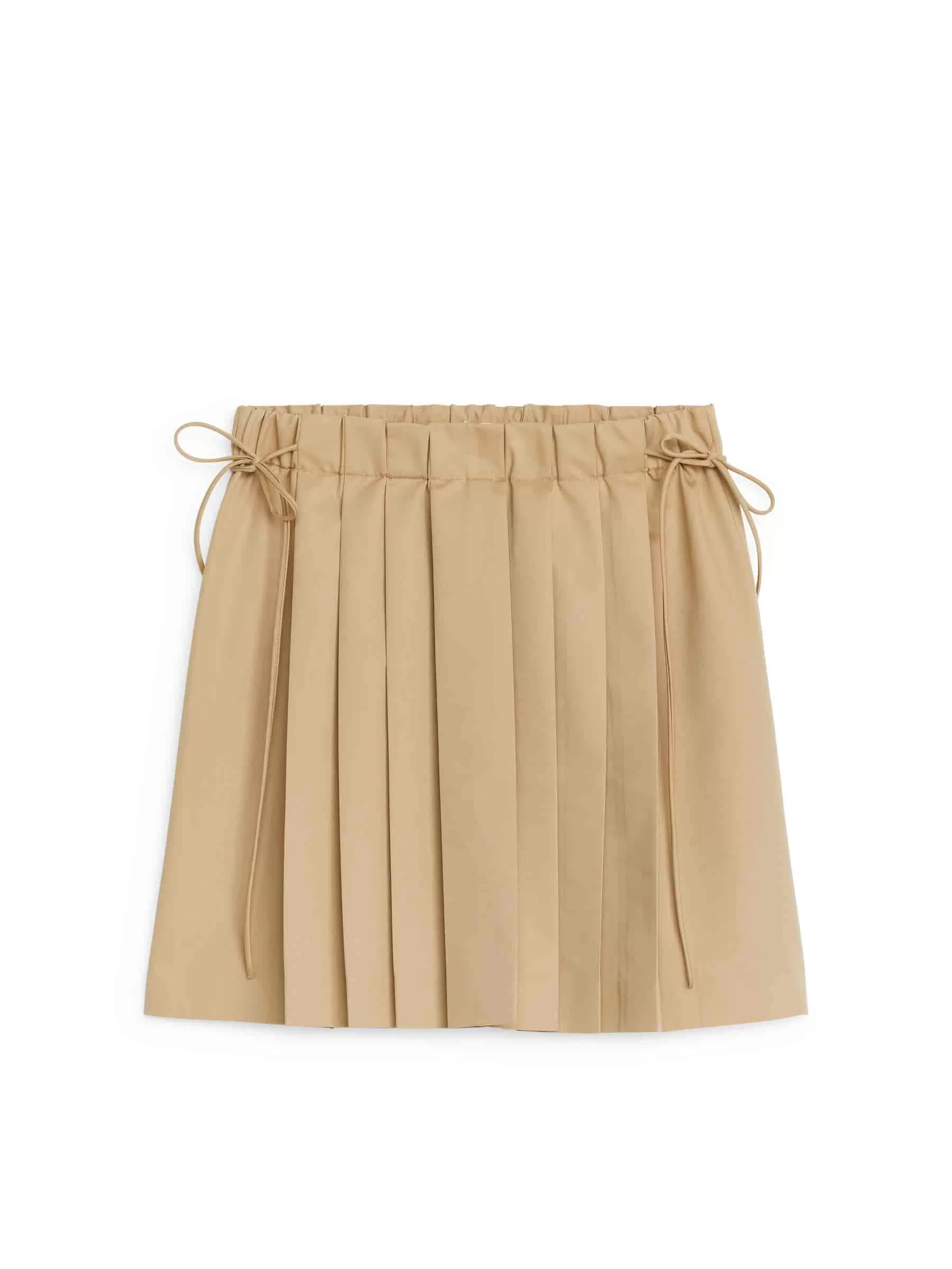 Veckad midikjol i bomullsblandning. Boxveck runt den resåriga midjan. Tunna självknytande remmar på sidorna.