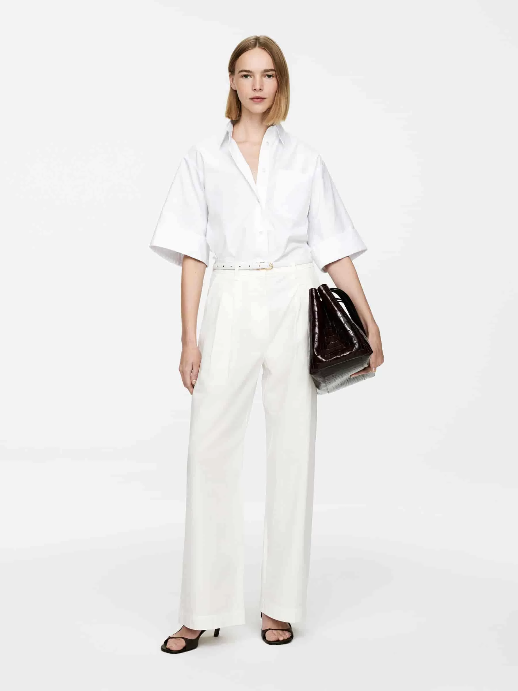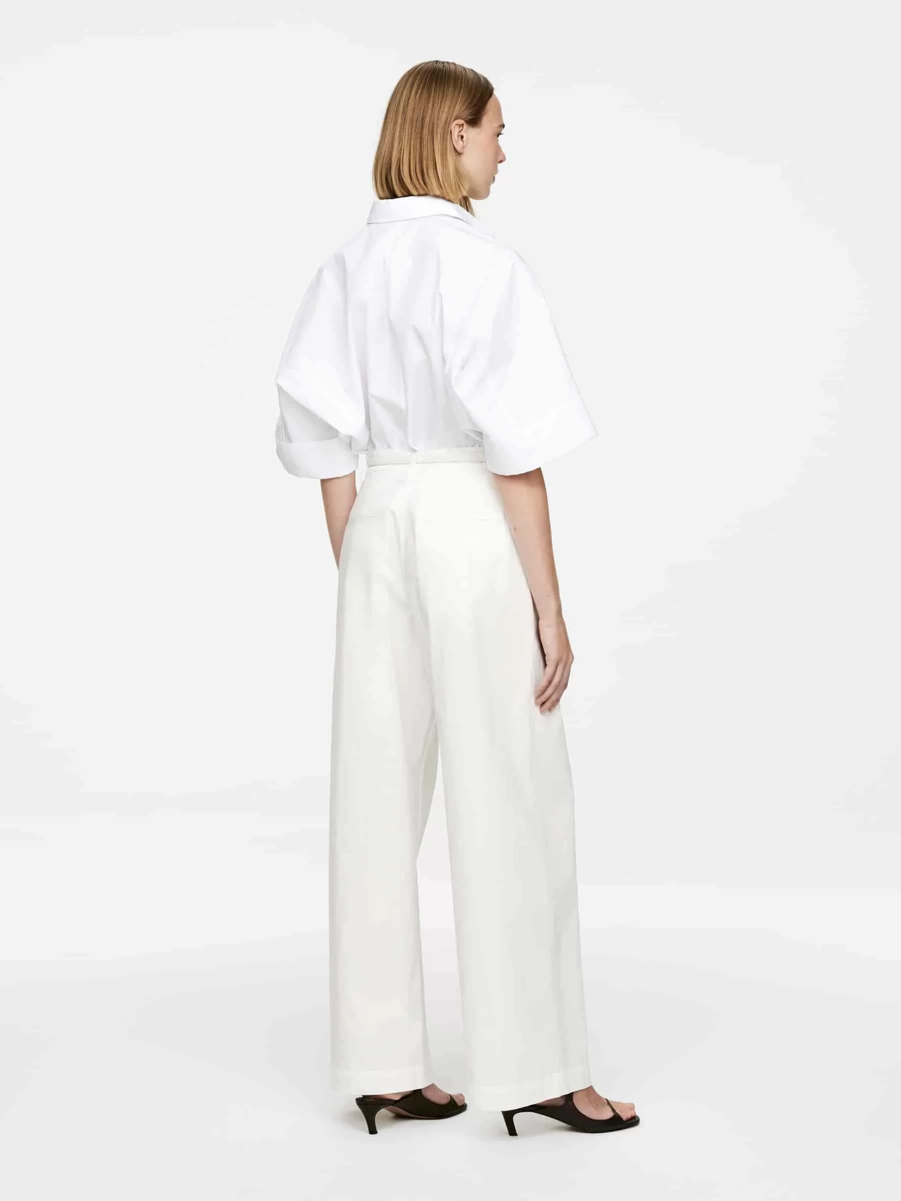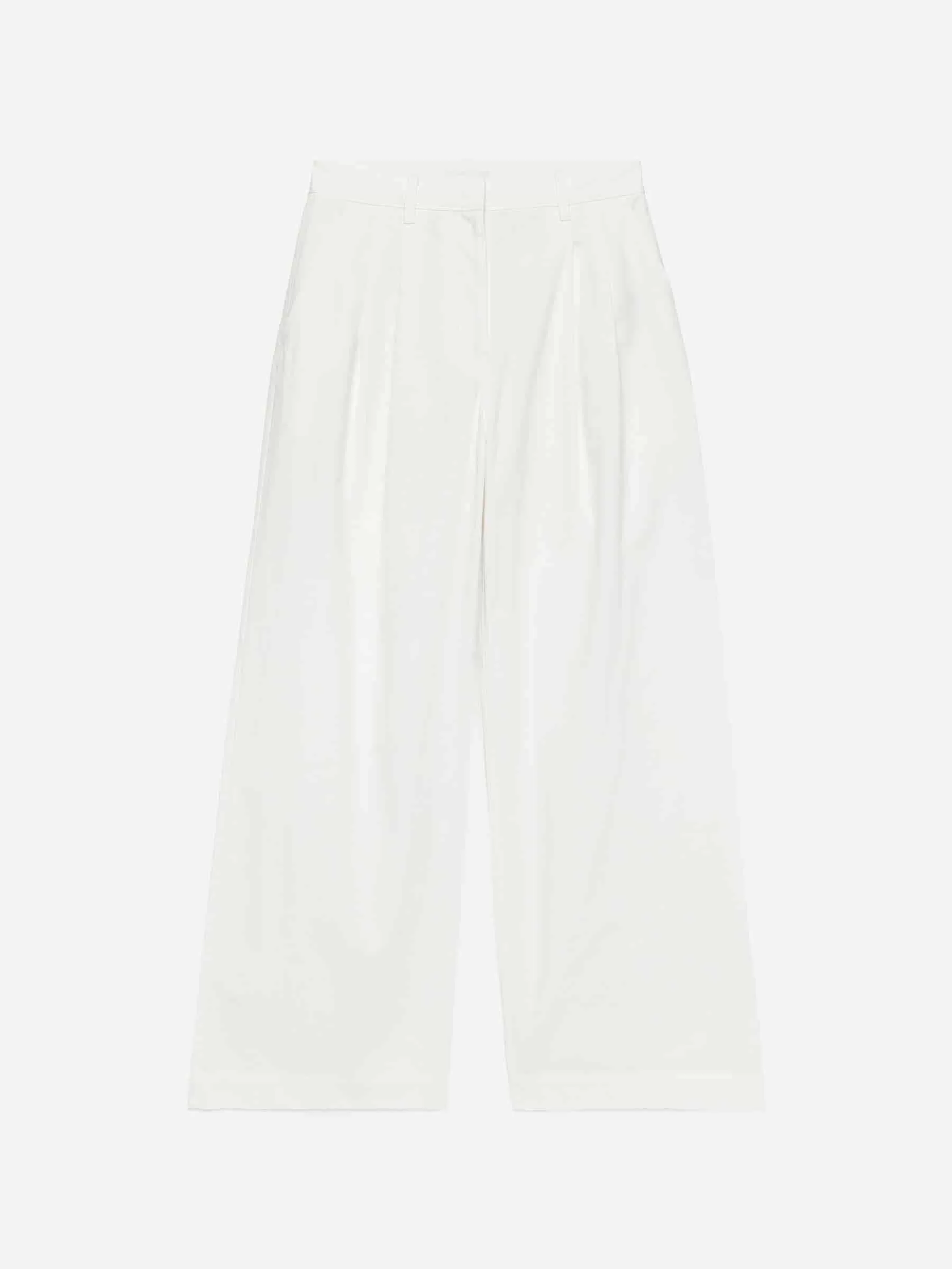 Byxor med avslappnad passform, veck fram och medelhög midja. Detaljerad med sidfickor, passpoalfickor bak och hak-och-ögon-stängning.