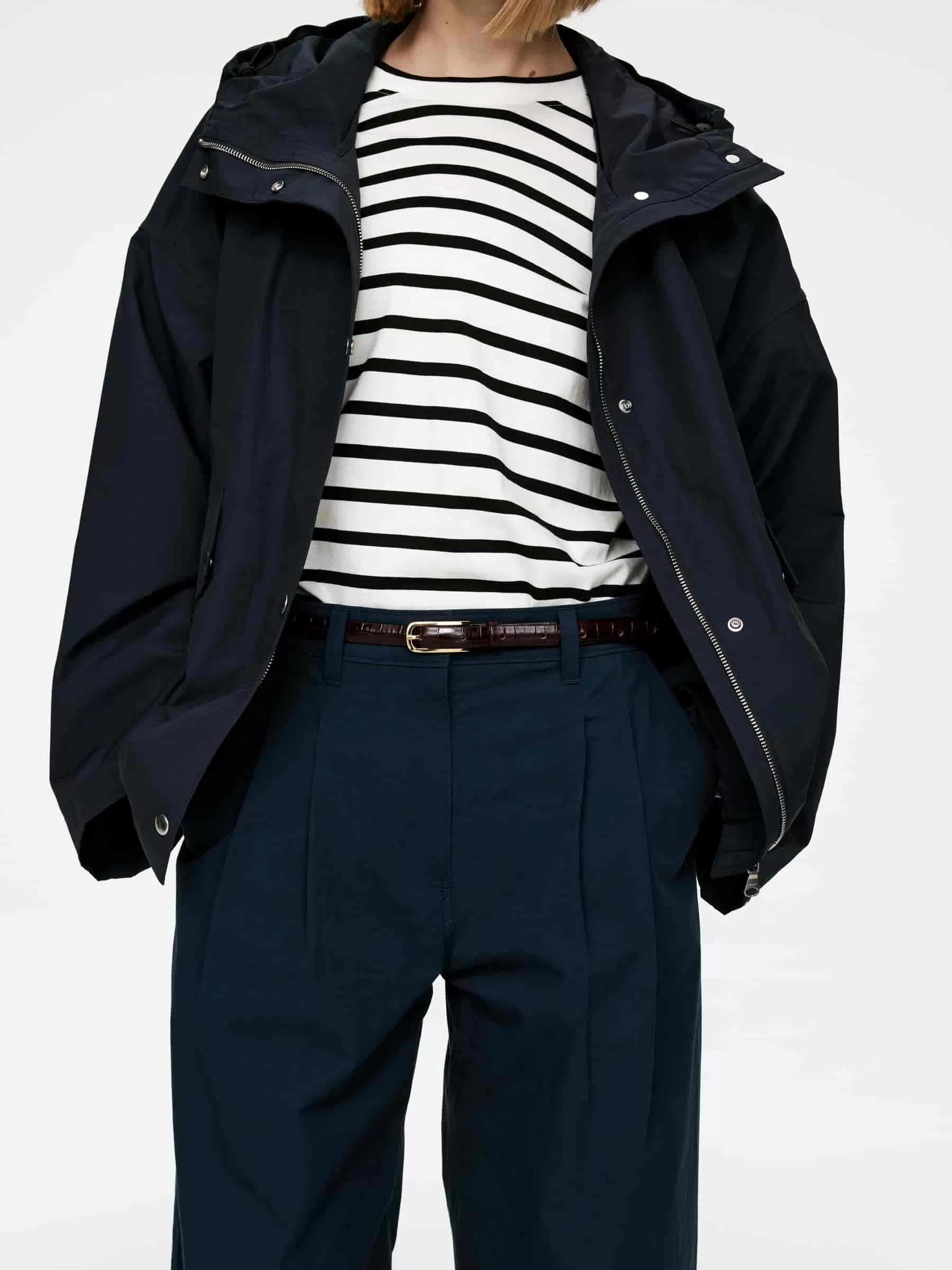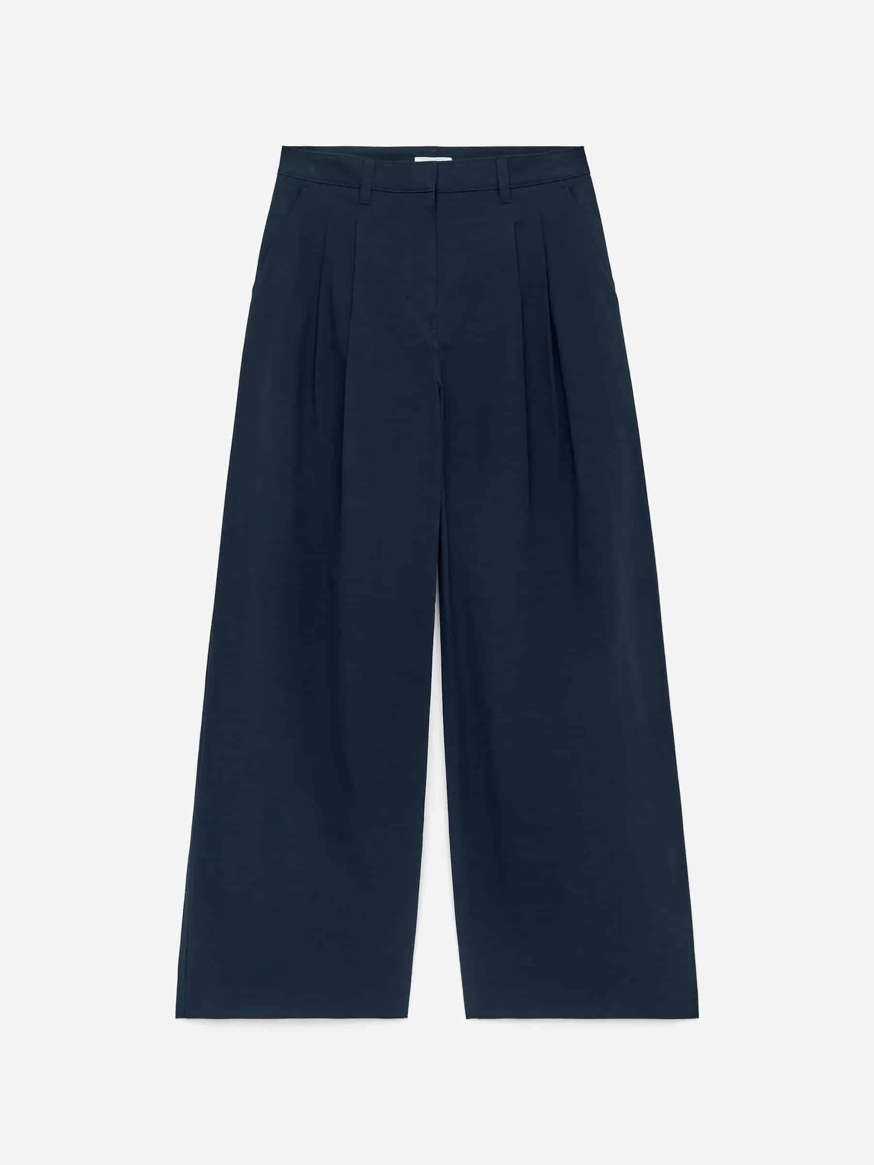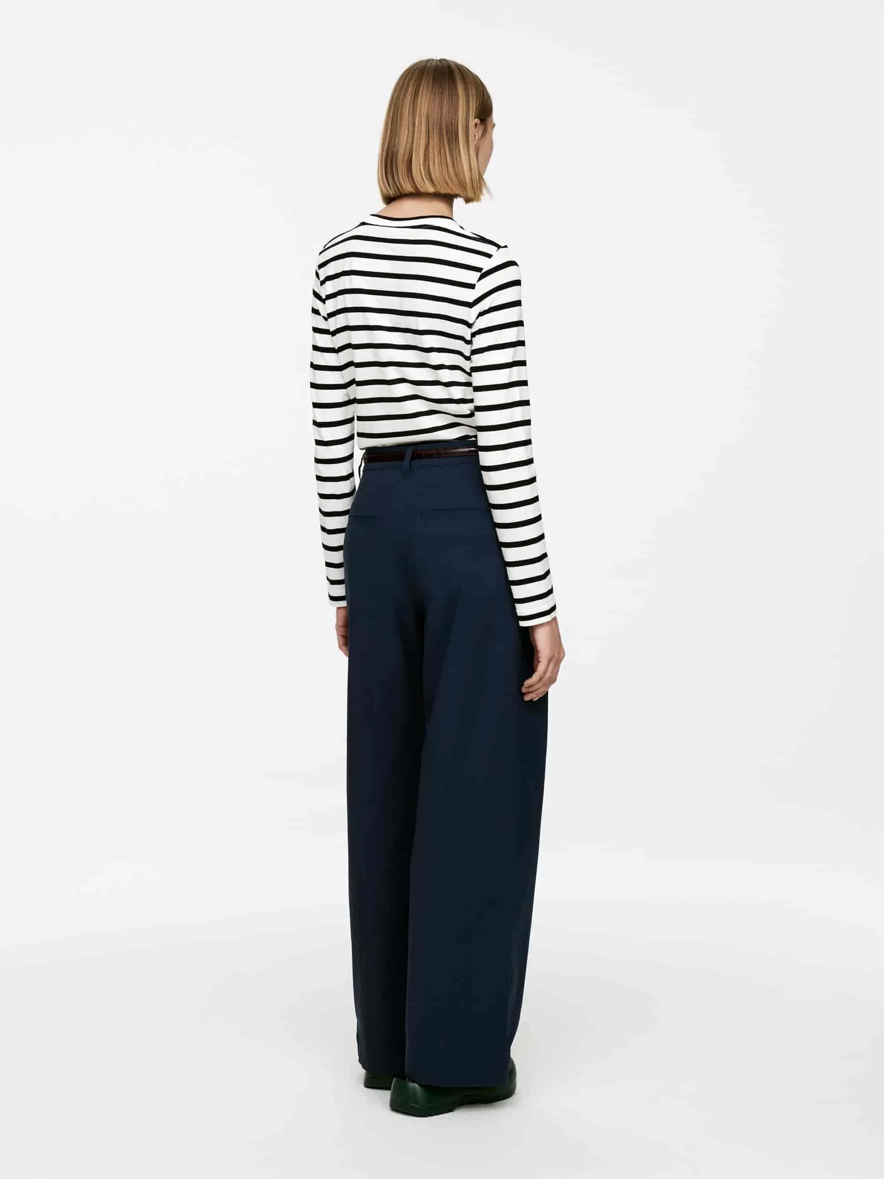 Byxor med avslappnad passform, veck fram och medelhög midja. Detaljerad med sidfickor, passpoalfickor bak och hak-och-ögon-stängning.