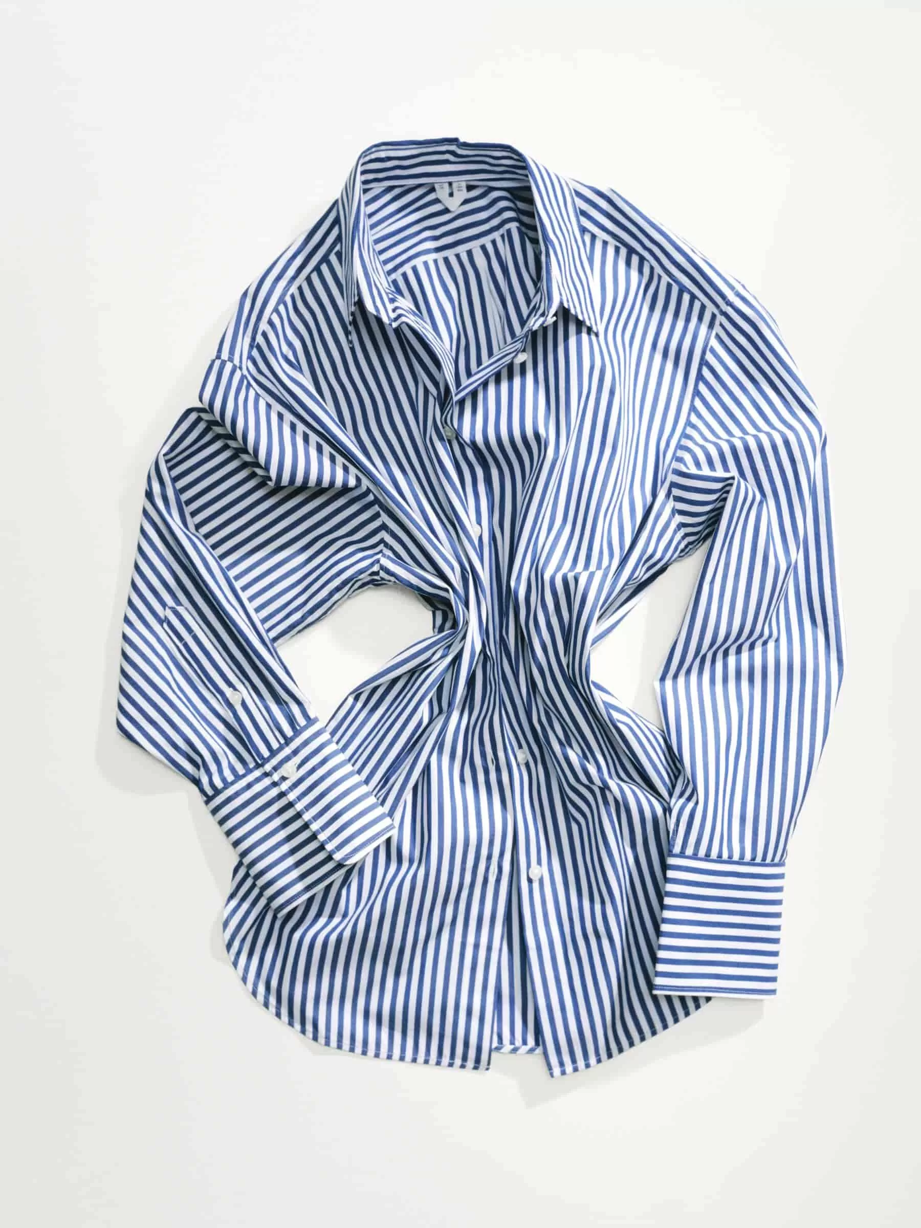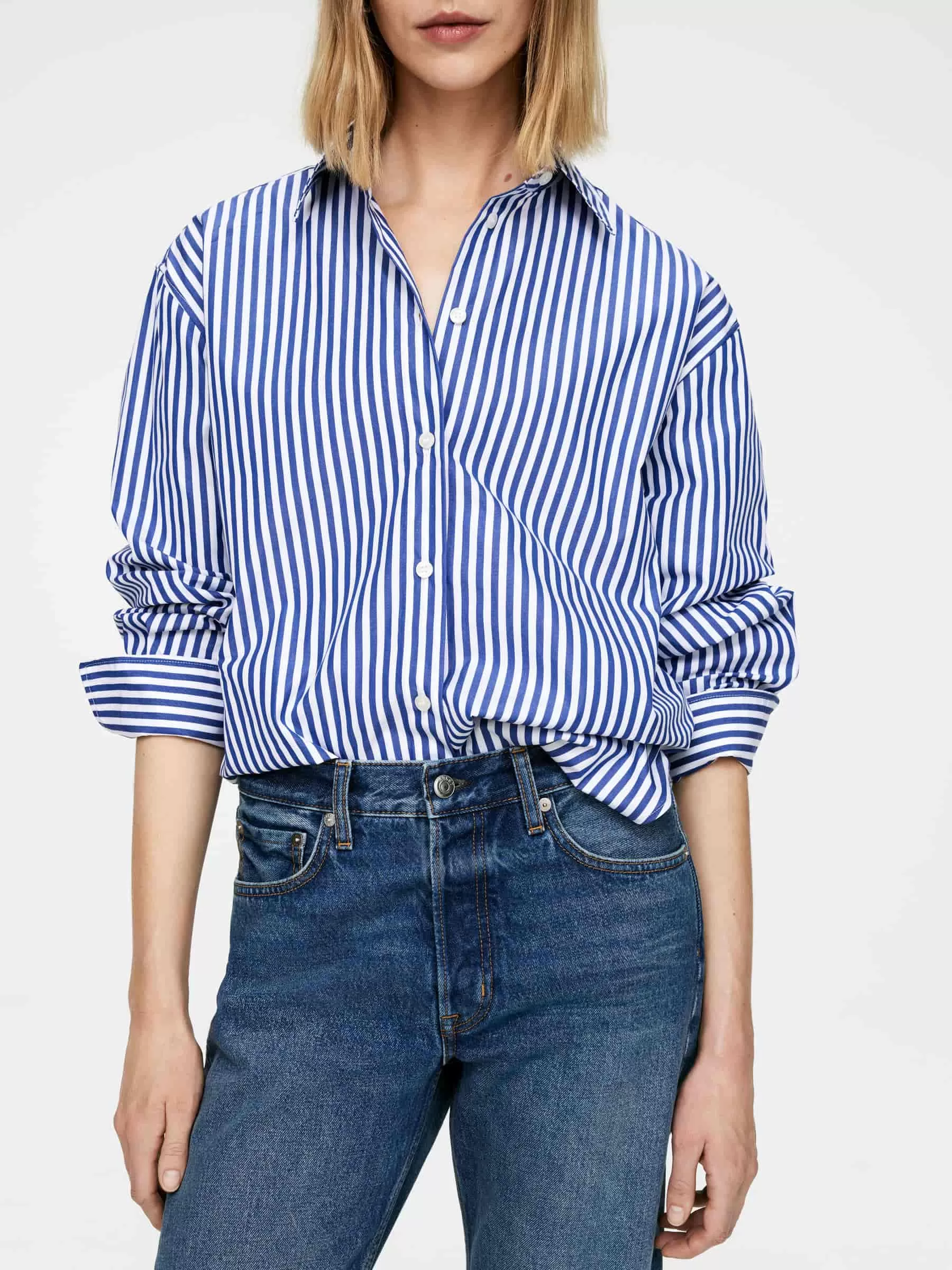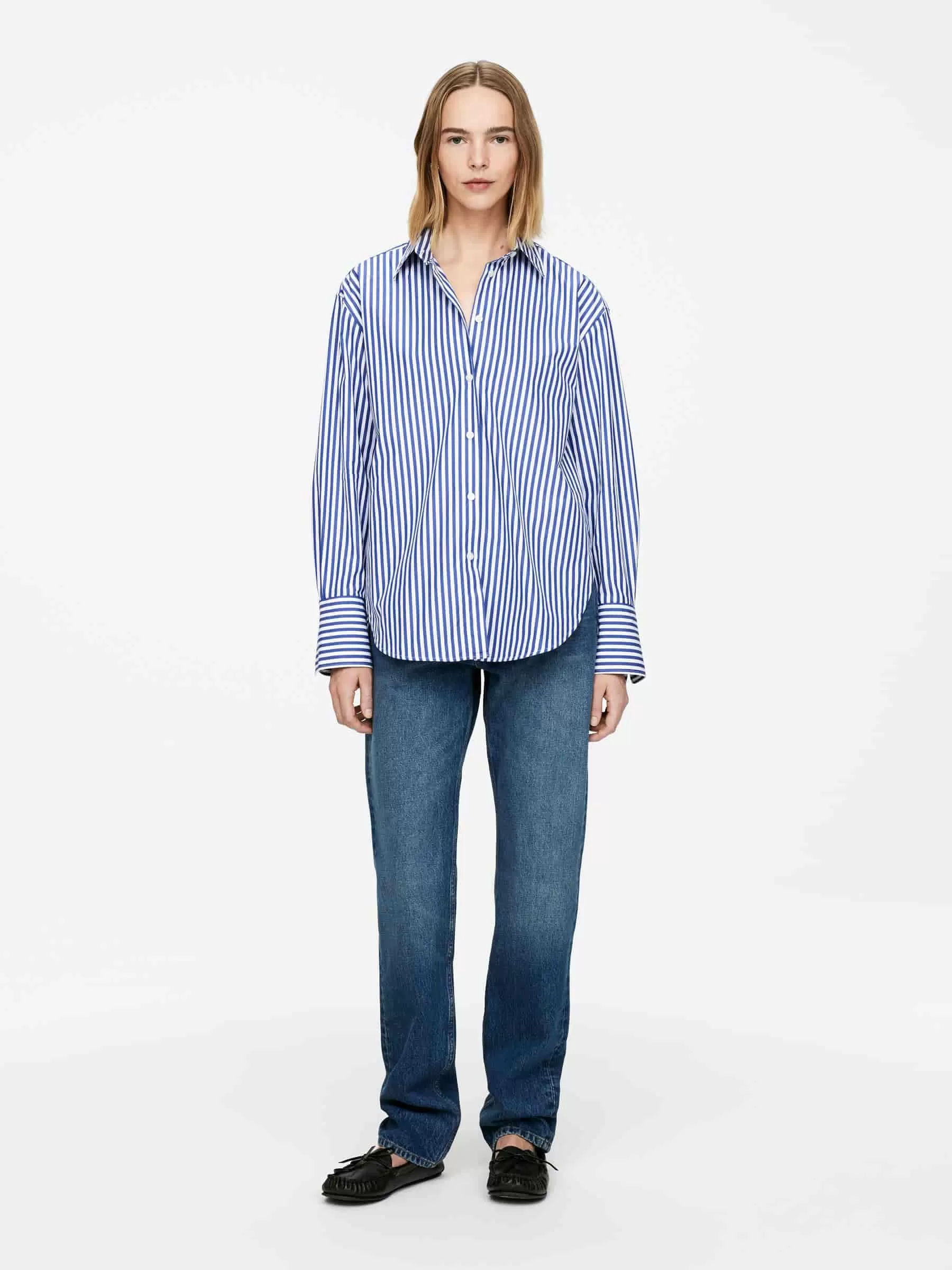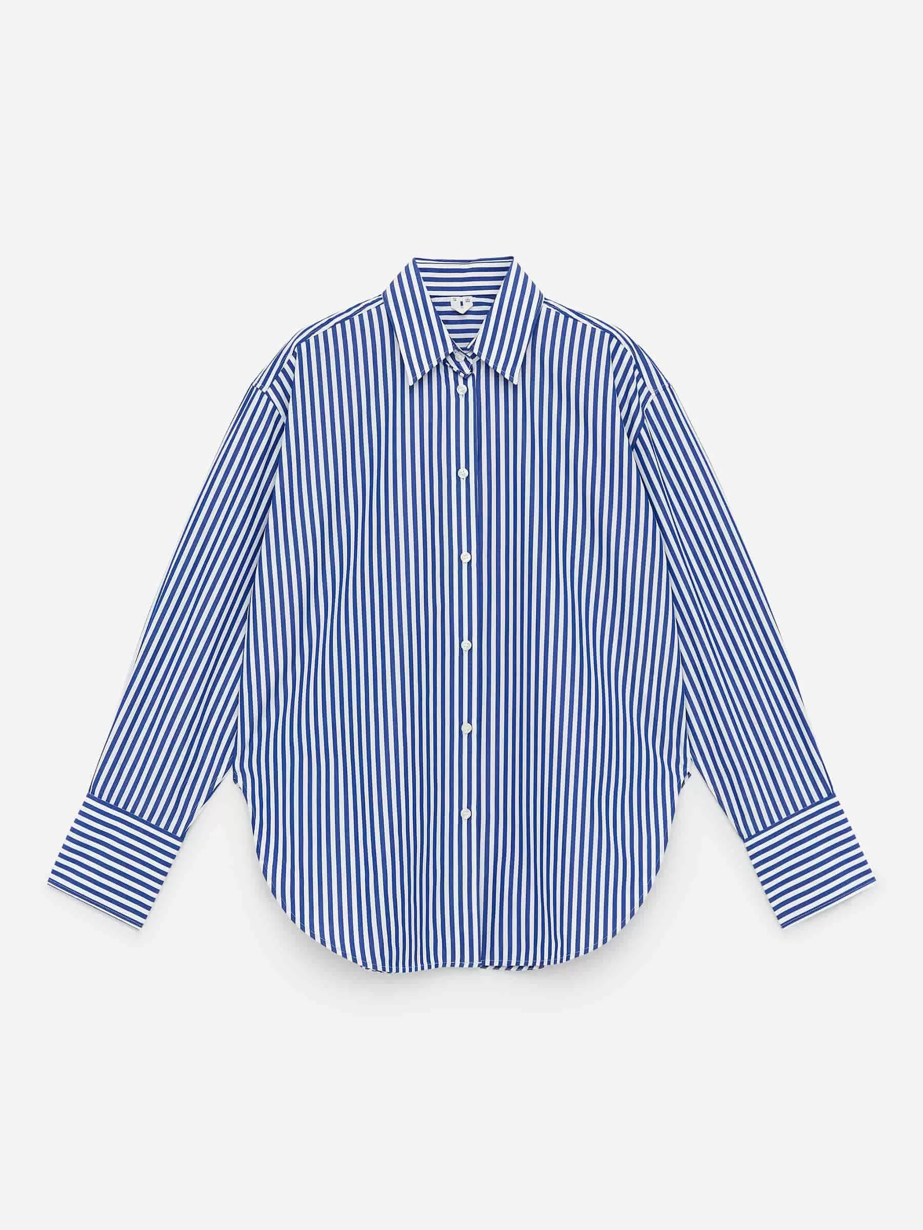 Långärmad skjorta sydd av en knaprig bomullspoplin. En knappstil med en avslappnad men ändå klädd siluett.