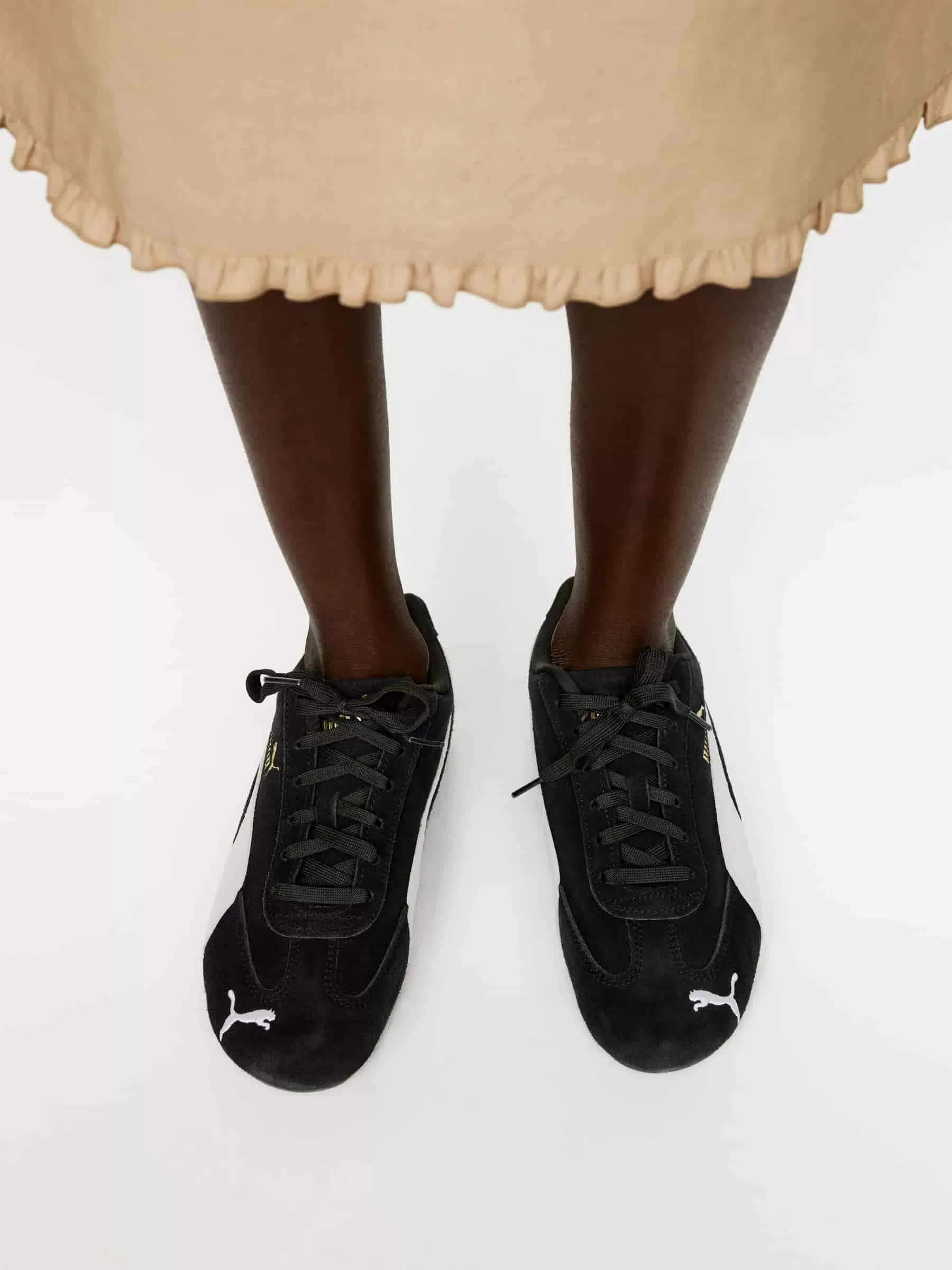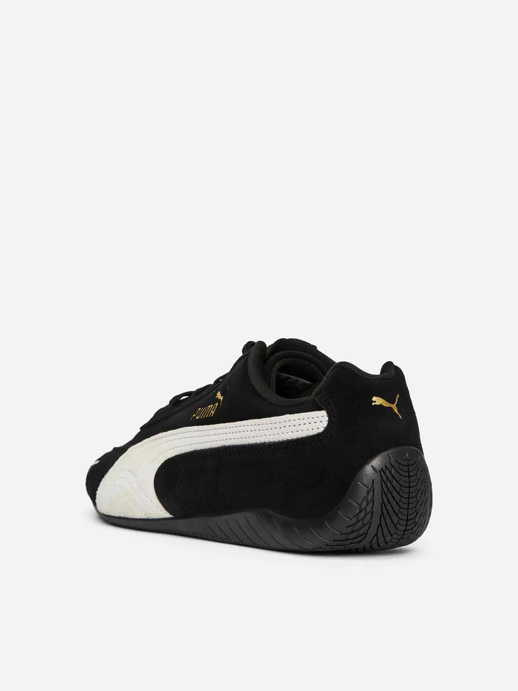 PUMA Speedcat designades ursprungligen för F1-förare 1999 och har en ovandel i mjuk mocka, detaljer i guldfoliestil och PUMA Cat-logotypen på tån.