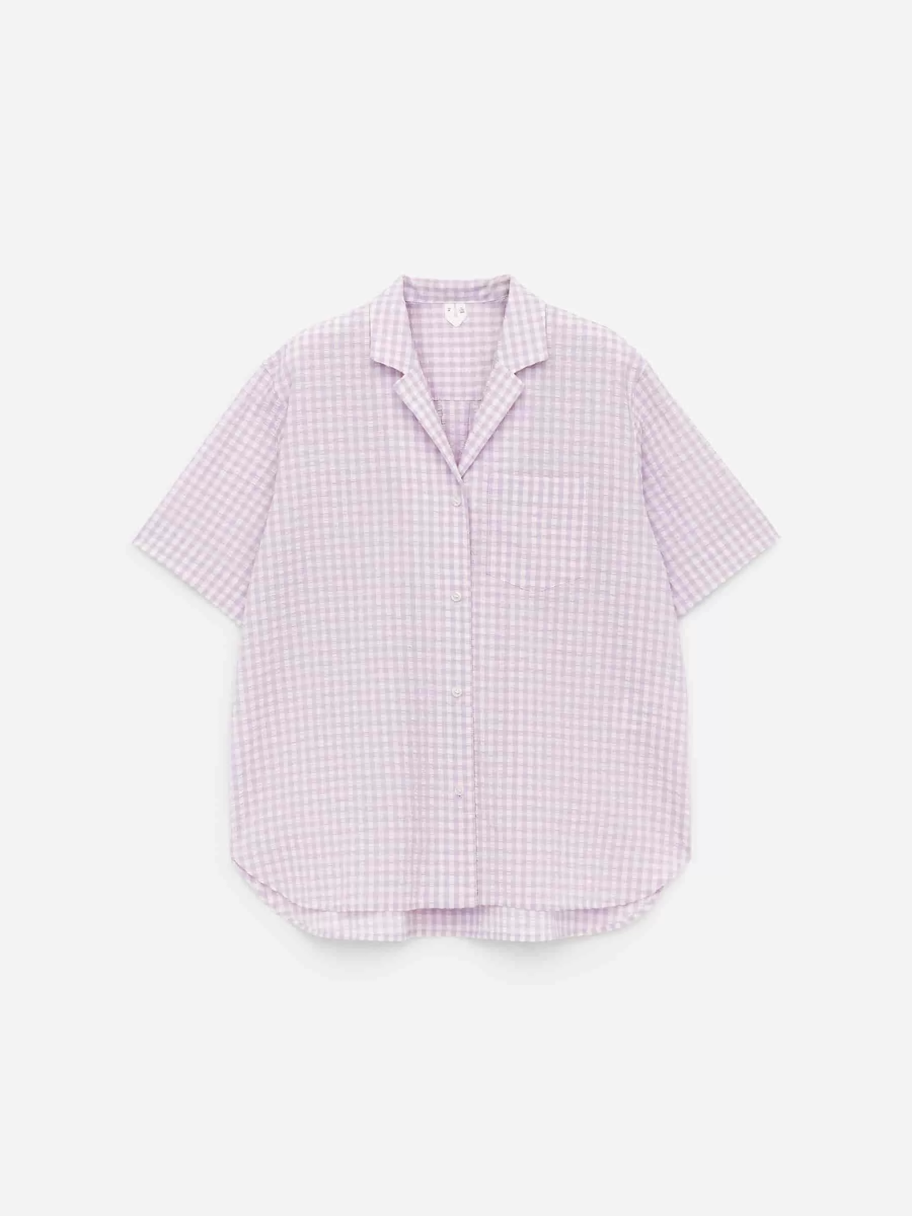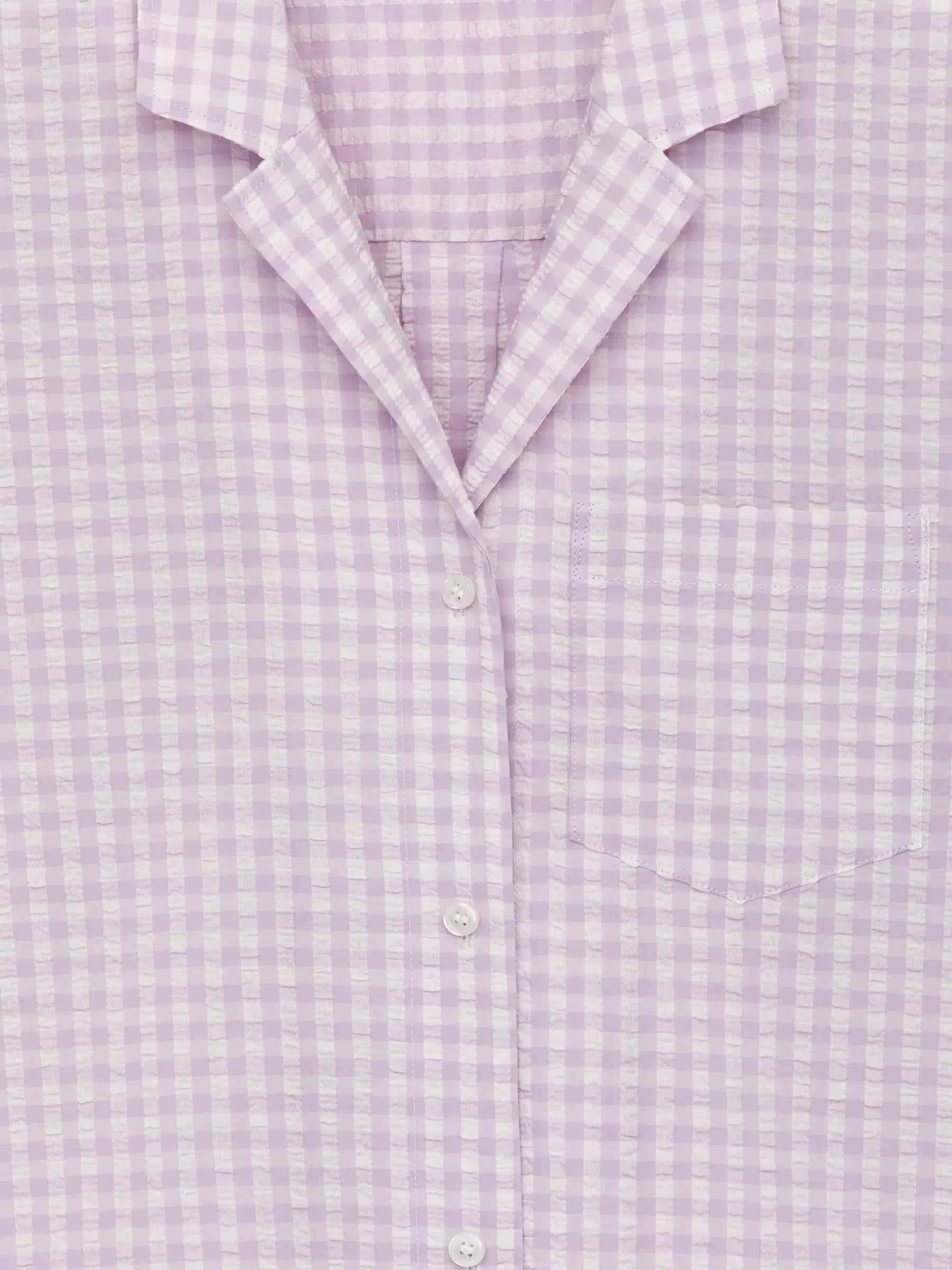 Loungeskjorta i mjuk seersucker-kvalitet. Designad med korta ärmar, resortkrage och en enda bröstficka.