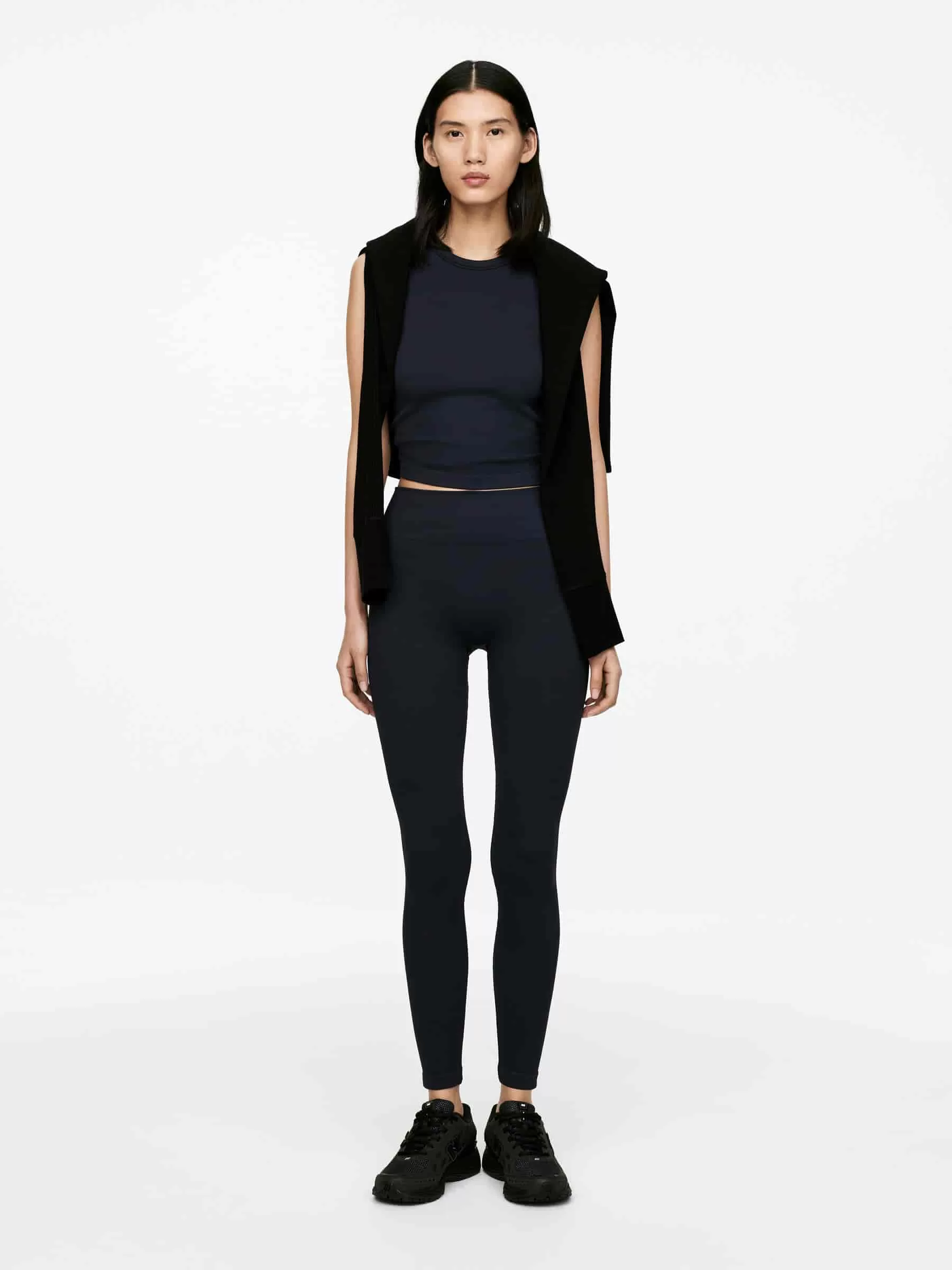 Sömlösa, ribbstickade tights av stretchig polyamid med tvättad finish. En midja, fullängdsstil med resår i midjan. Lätt stöd. Snabbtorkande.