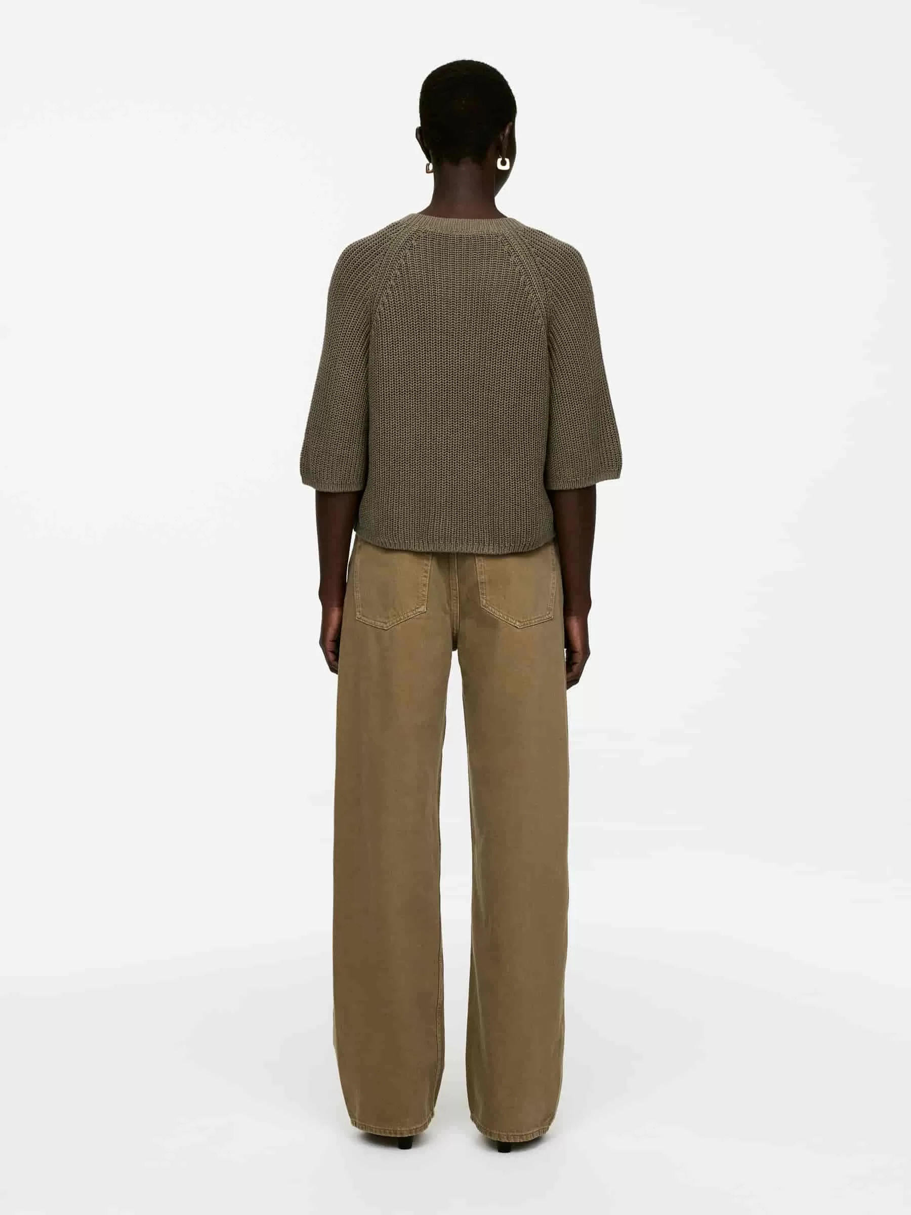 ARKE Dam Ribbstickad kortärmad topp Khaki Grön