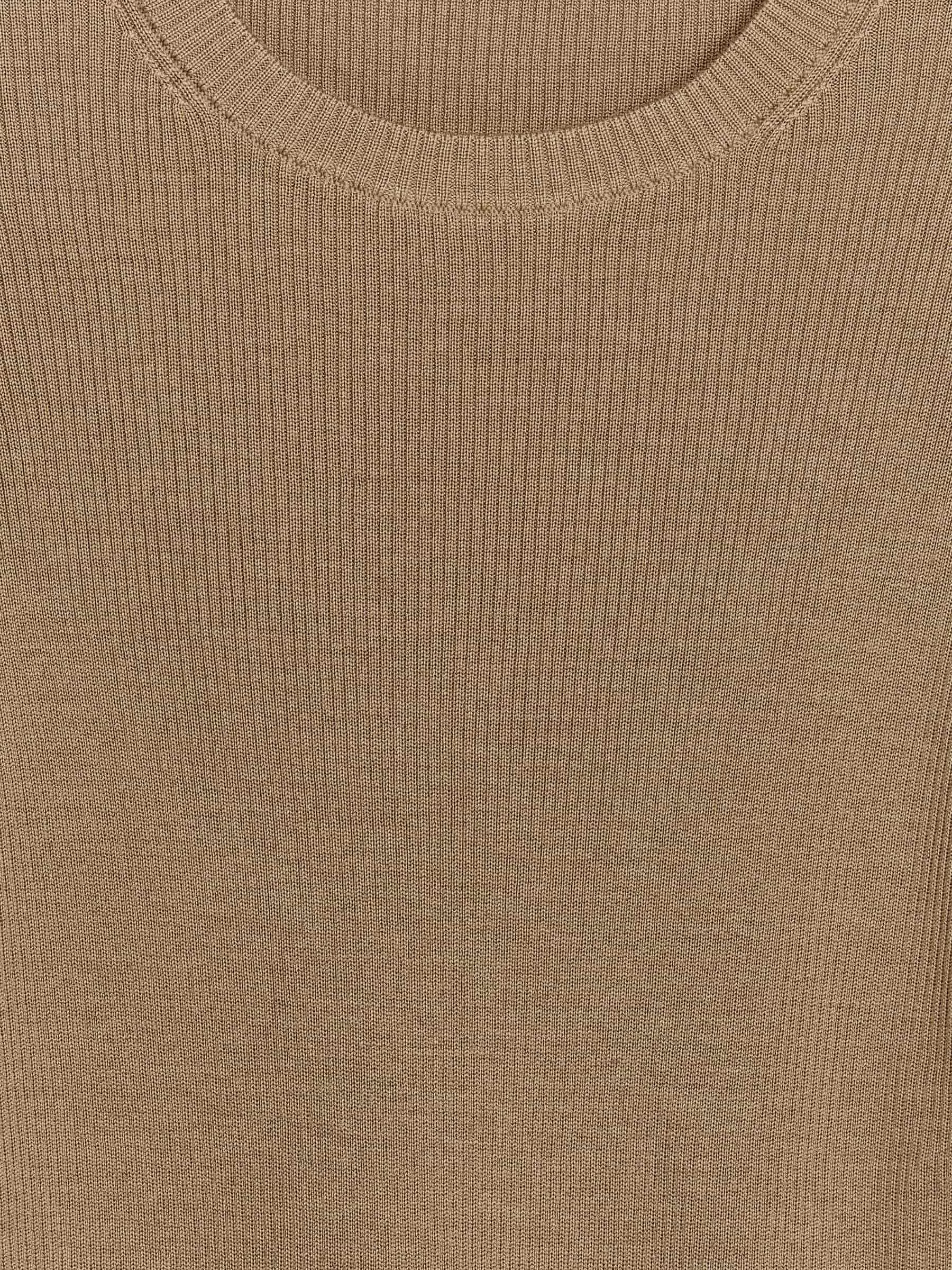 ARKE Dam Ribbstickad Merinotopp Mörk beige