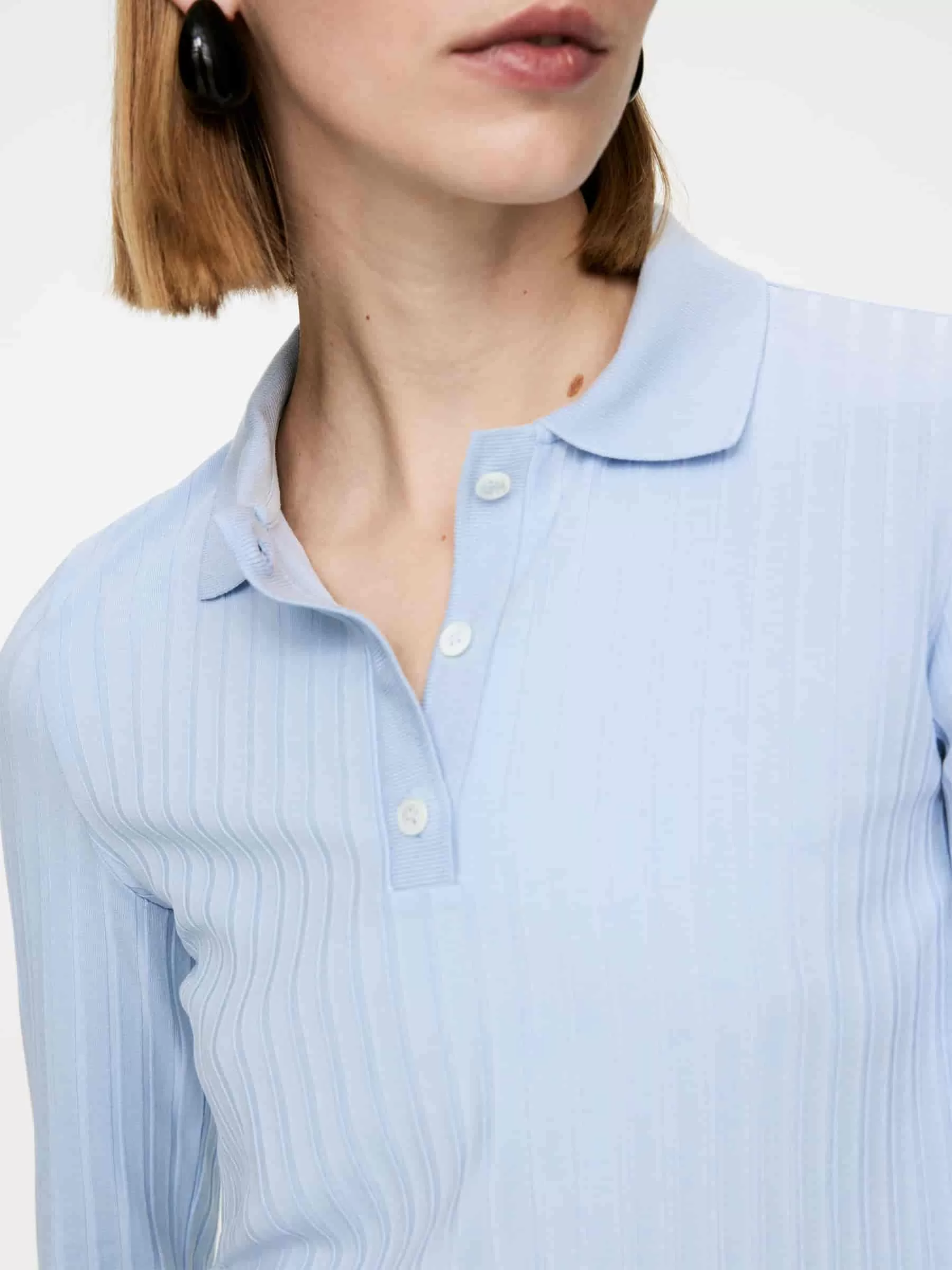 ARKE Dam Ribbstickad pikétröja Ljusblå