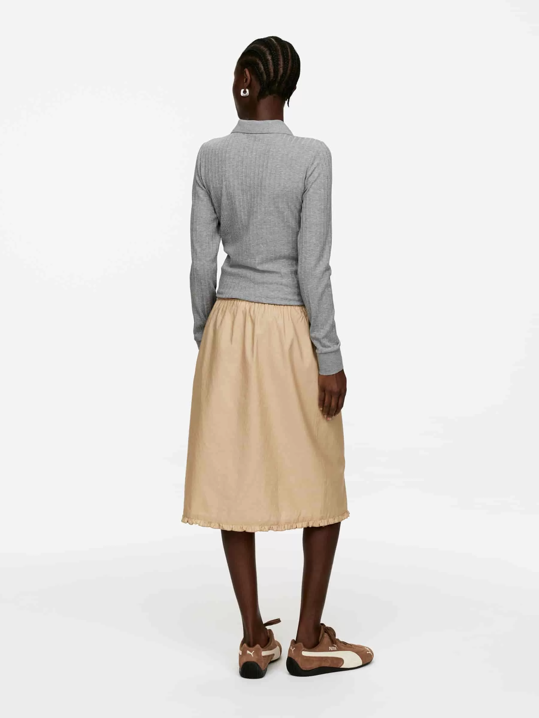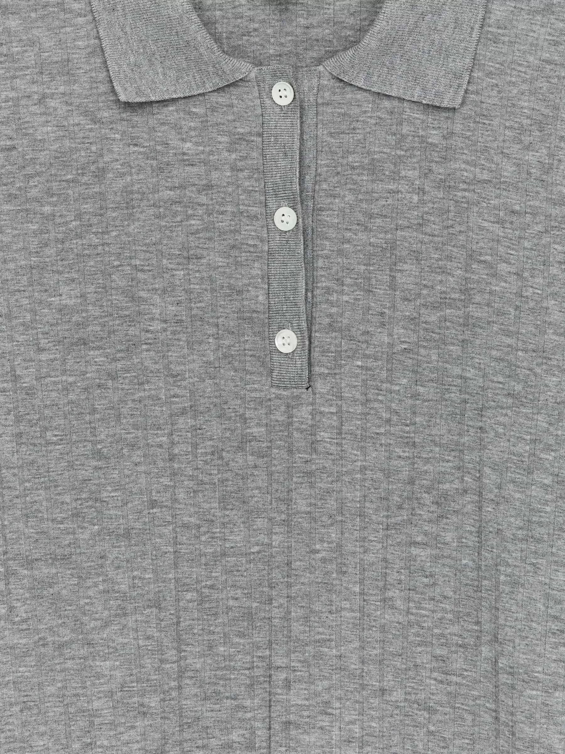 ARKE Dam Ribbstickad pikétröja Grå Melange