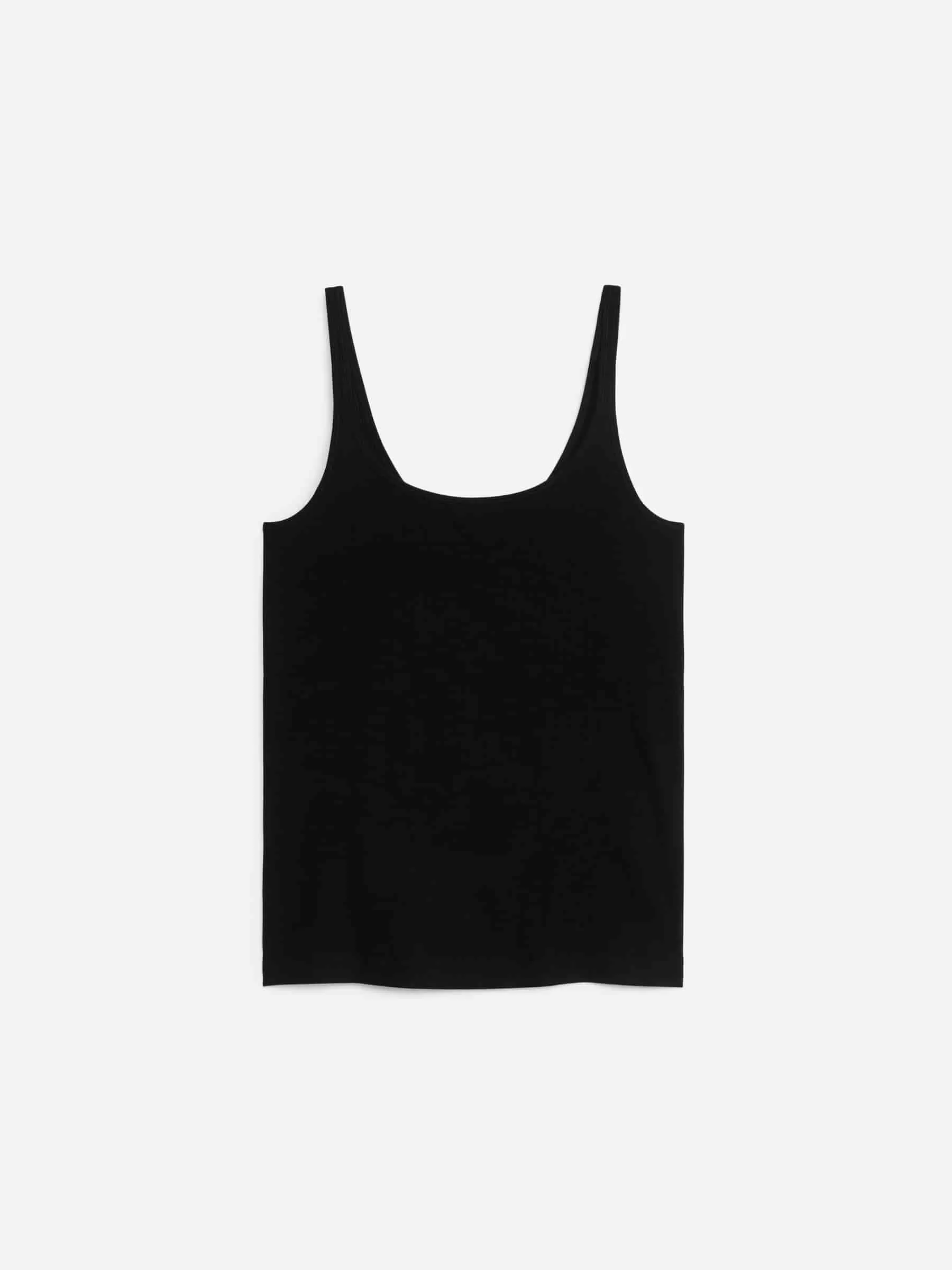 Tröja i ribbstickad bomullsjersey. Stylad med en djupt skuren halsringning och smala remmar.