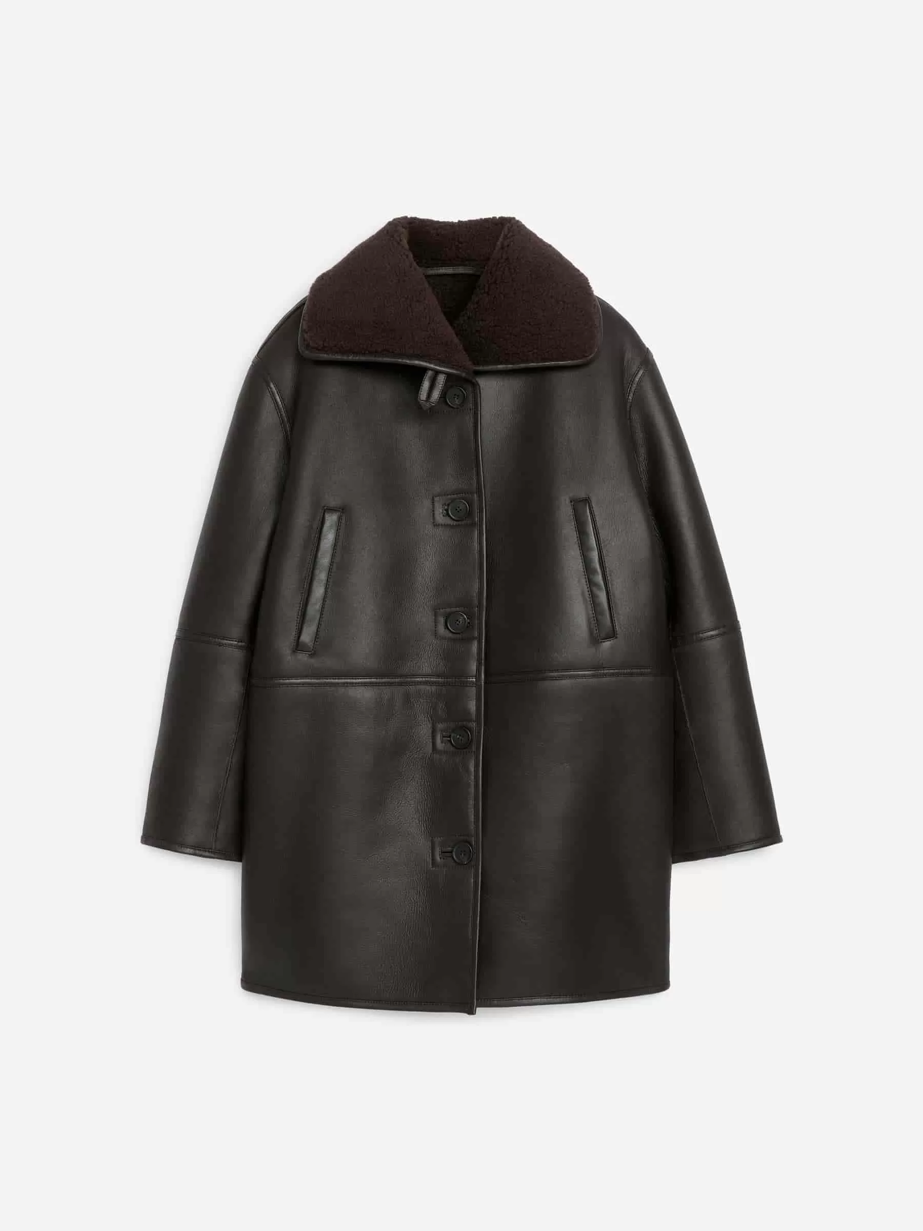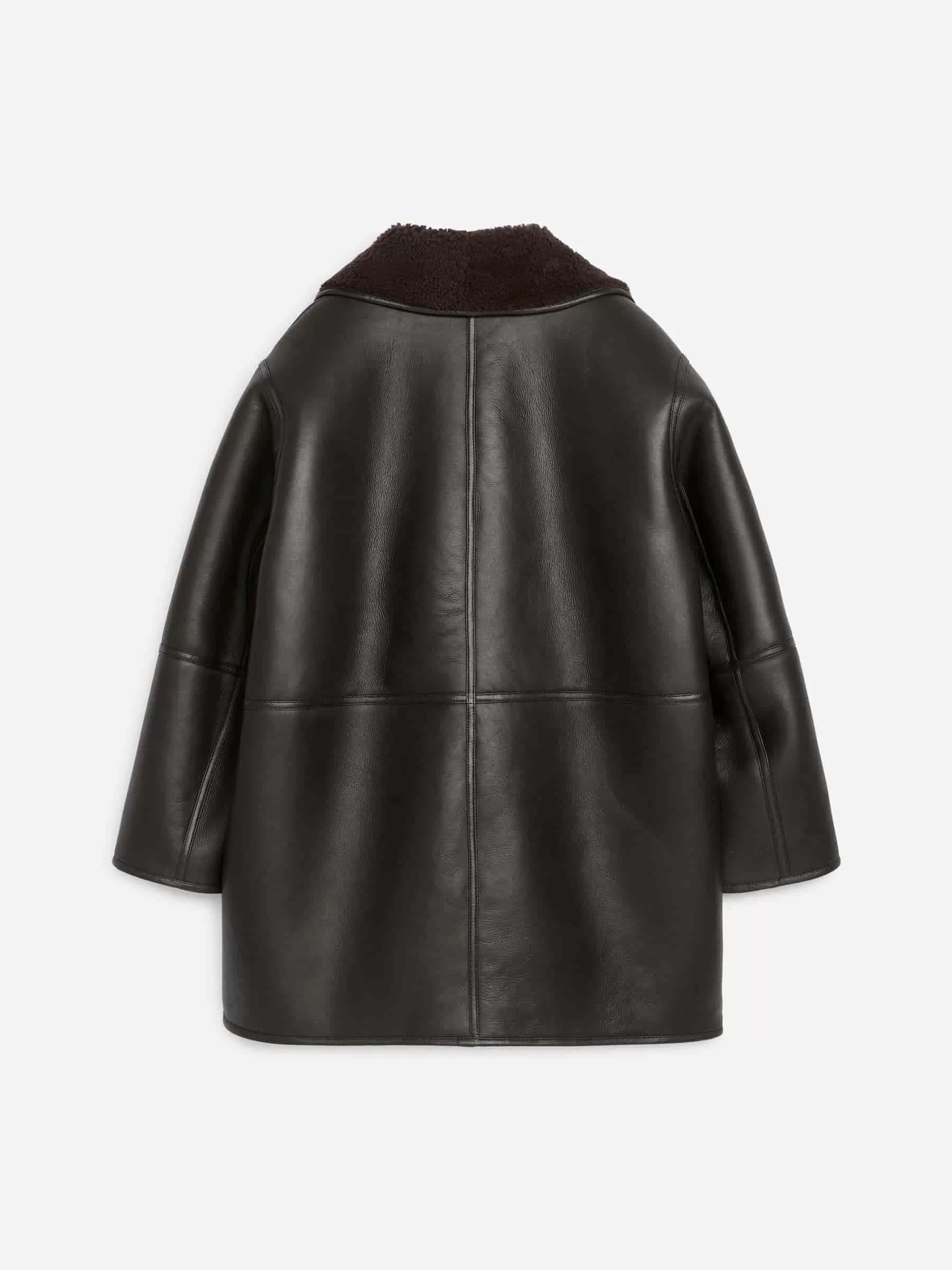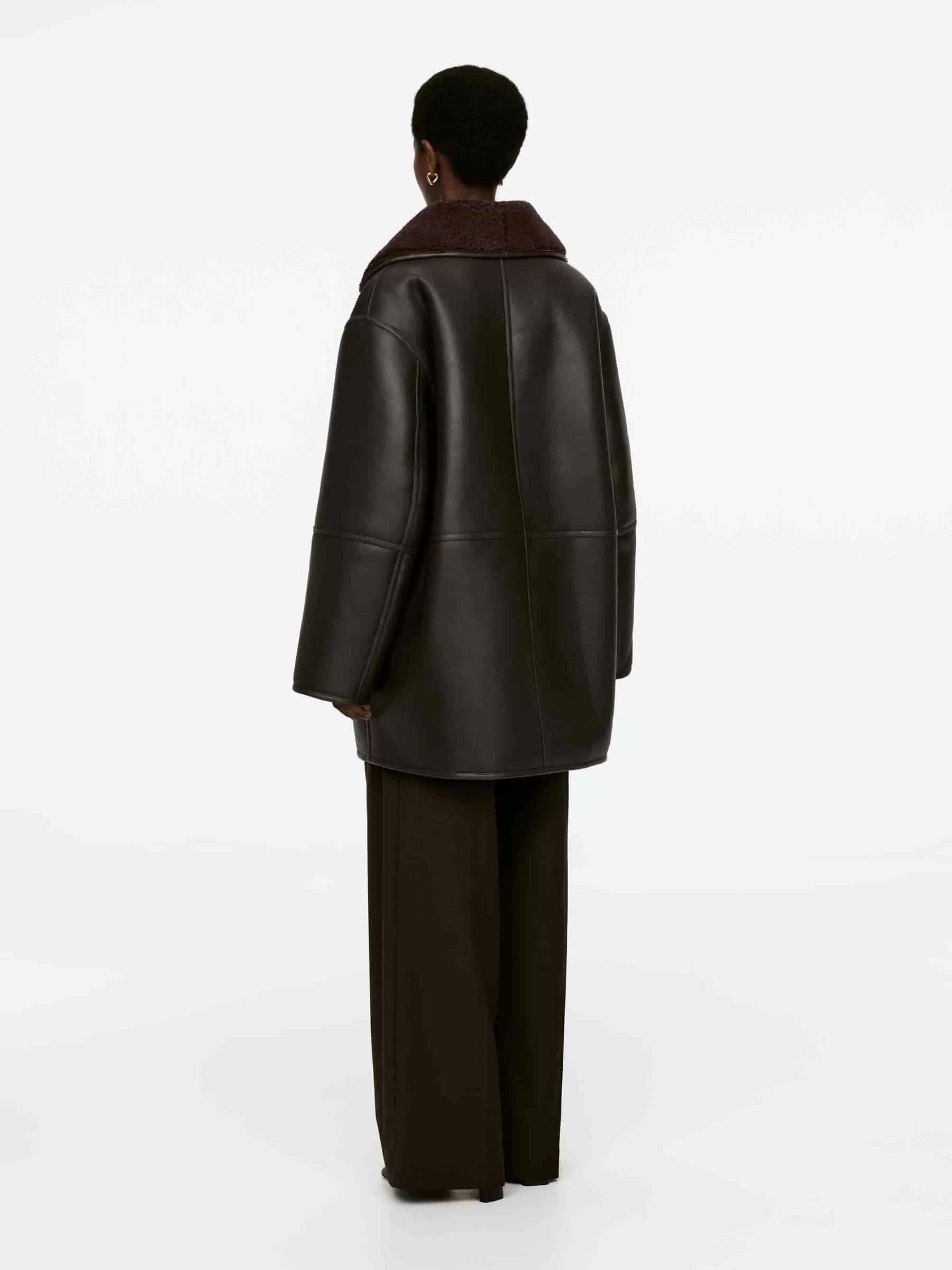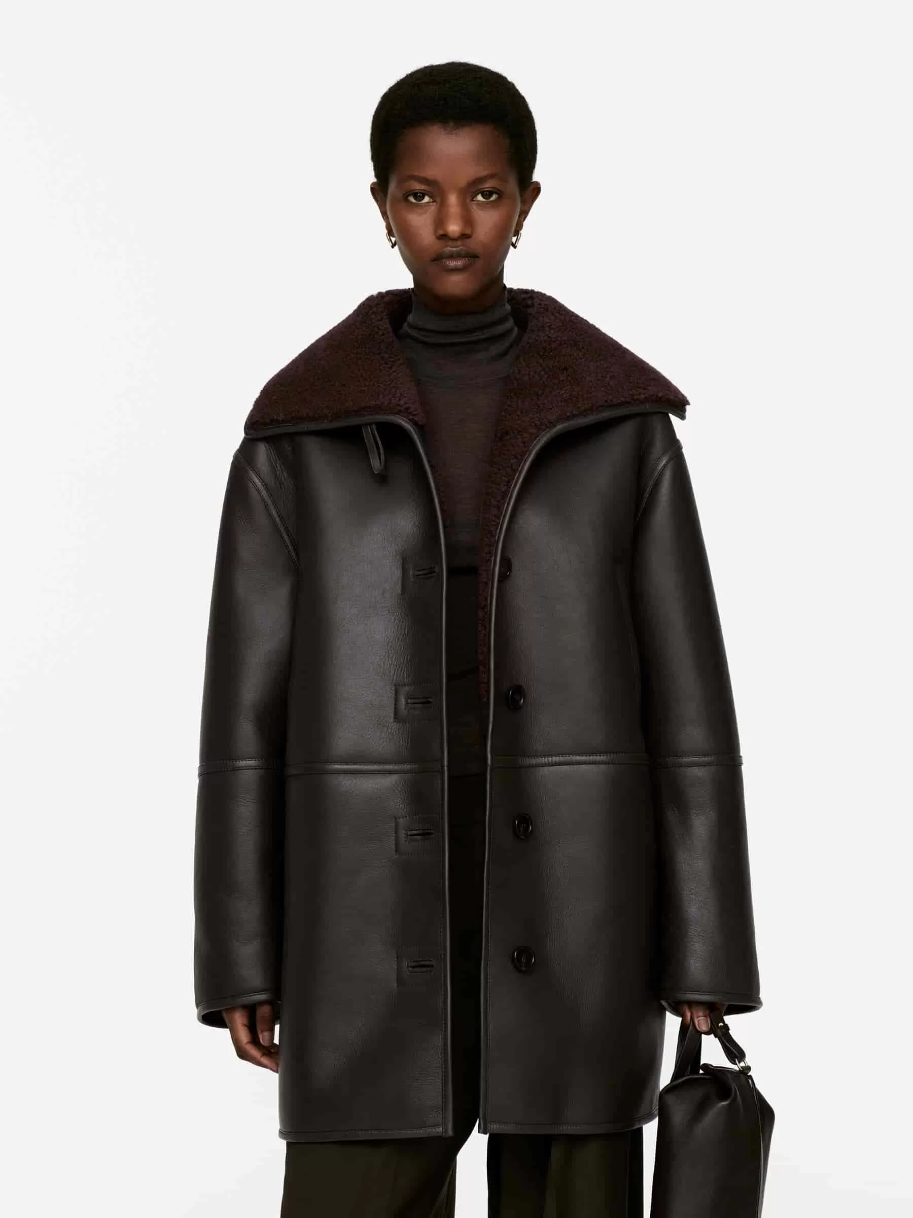 Enknäppt skinnjacka med mjuk insida. Designad med smala passpoalfickor, krage som kan vikas upp eller ner och knappstängning.