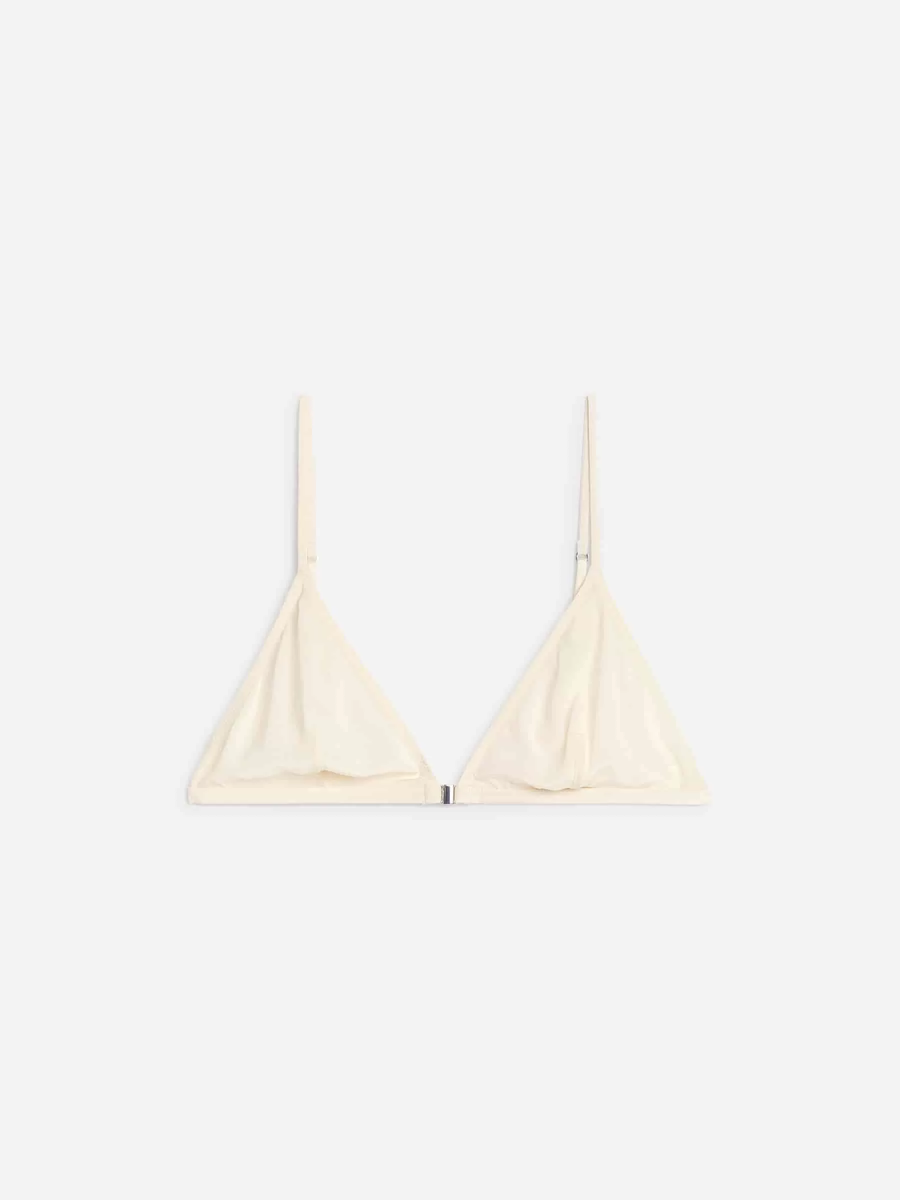 Mjuk bh i crêpe-tyg i siden med en touch av stretch för komfort. Designad med triangulära kupor, justerbara axelband, ett spänne fram och en rynkad rem bak för mer flexibel justering.
