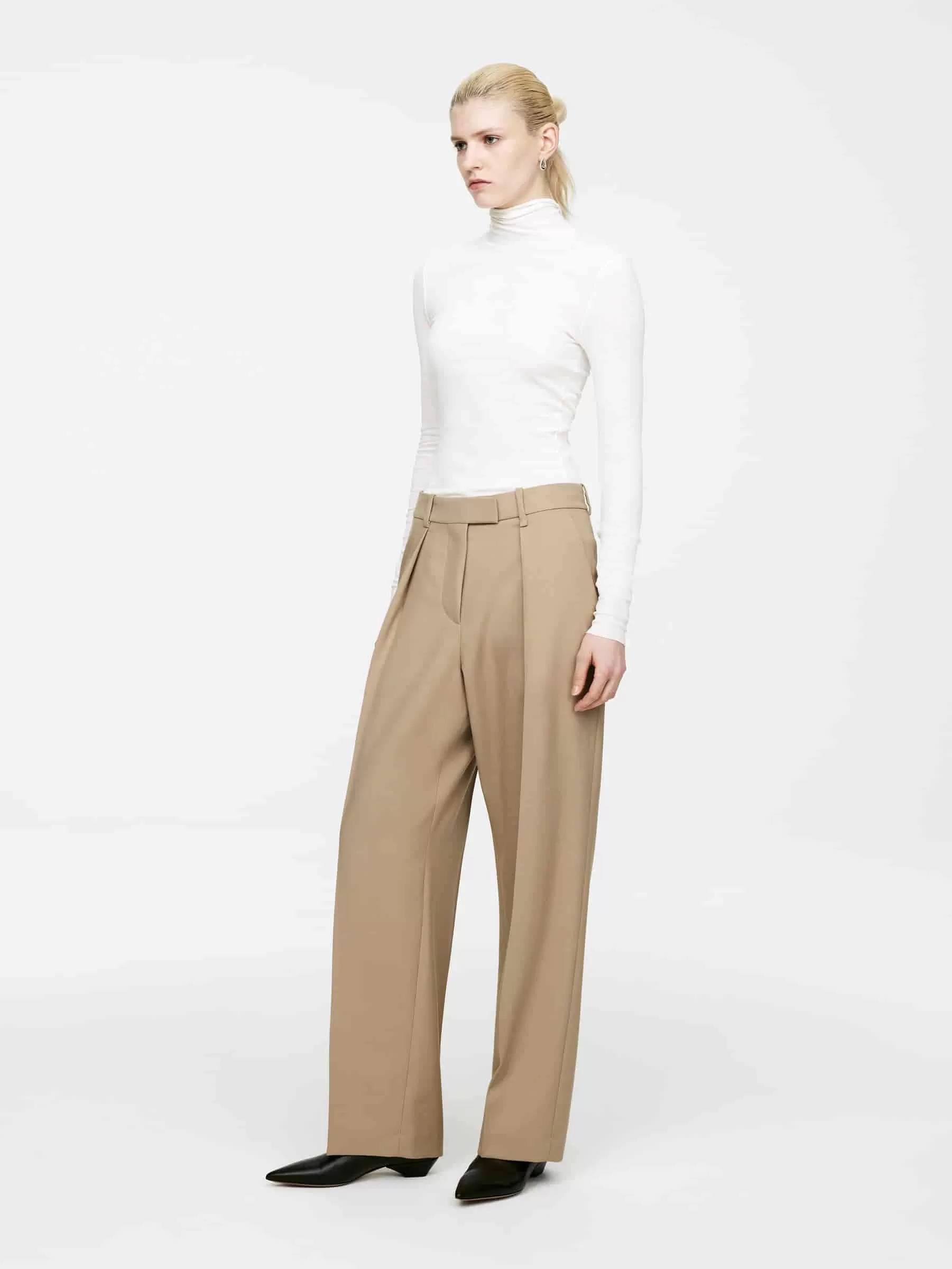 Skräddade byxor gjorda av ull. En hög midja stil med veckade, raka ben. Sidofickor och en enda bakficka med lock. Del av set. Byxorna innehåller 100% RWS-ull (TE-00047206). Produkter certifierade enligt Responsible Wool Standard (RWS) innehåller ullfibrer från gårdar som är oberoende certifierade enligt kraven på djurskydd och markförvaltning.