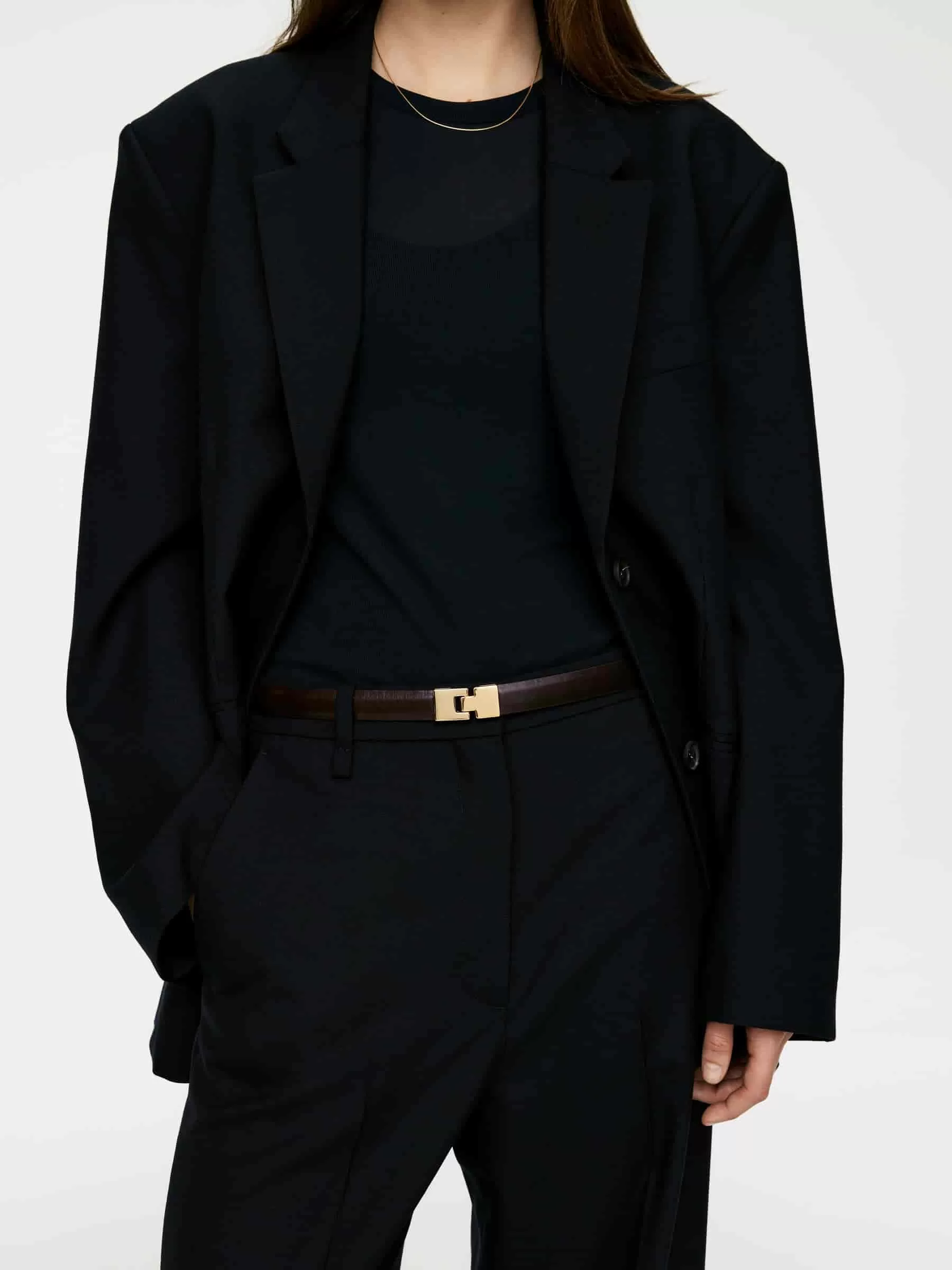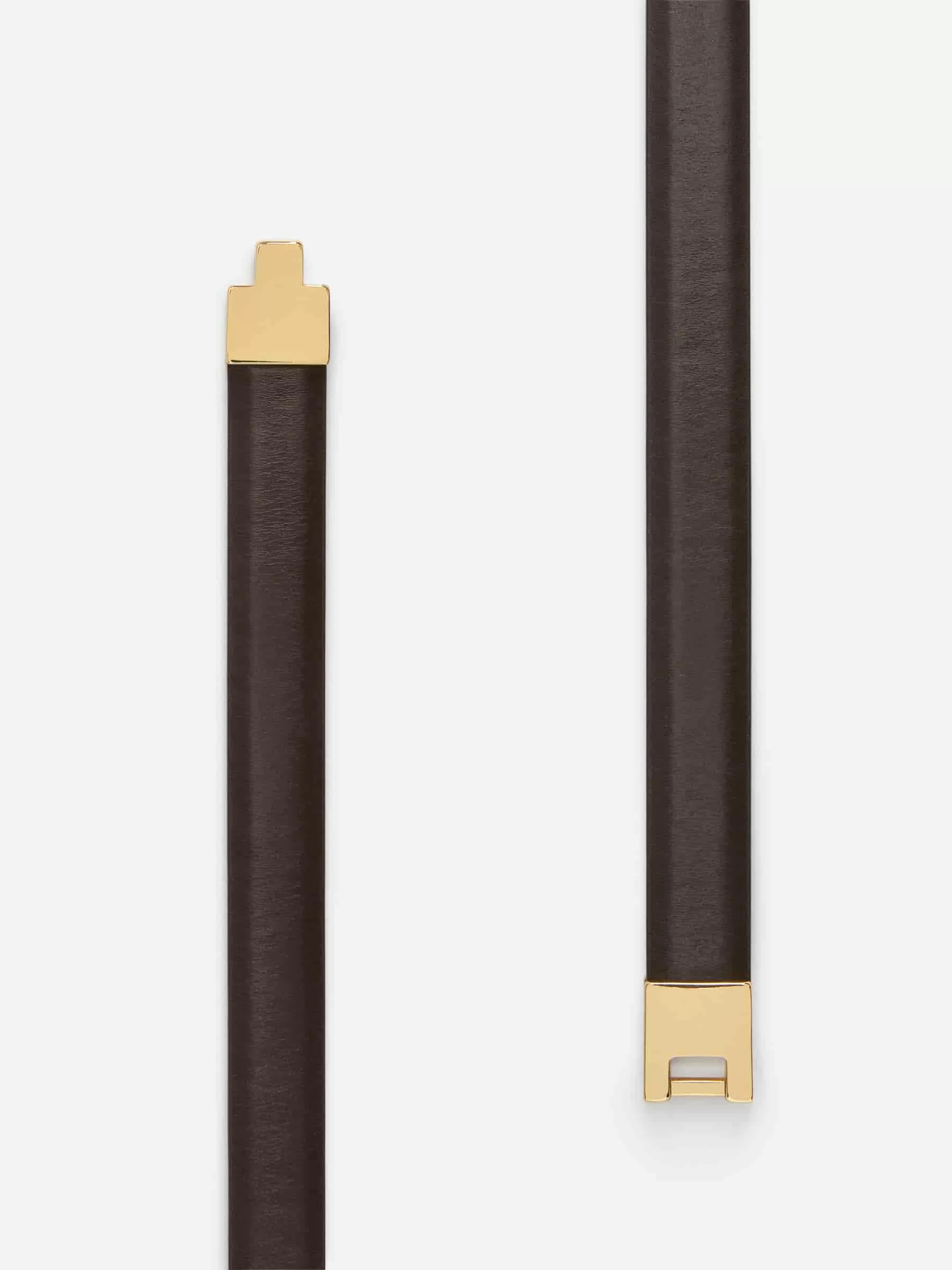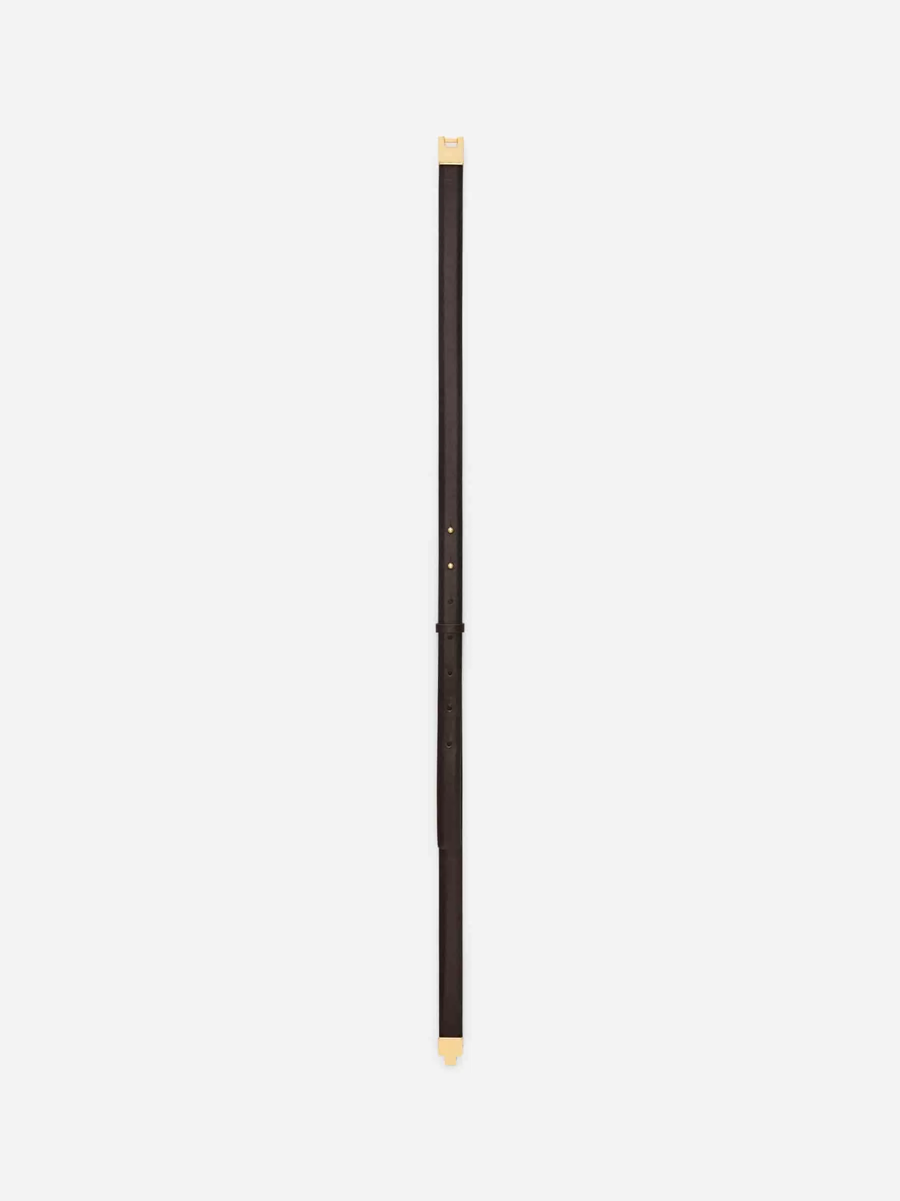 Tunnt höftbälte med dekorativt guldpläterat fyrkantsspänne framtill. Justerbara dubbförslutningar bak. XS/S 105,5 cm, M/L 116,5 cm.