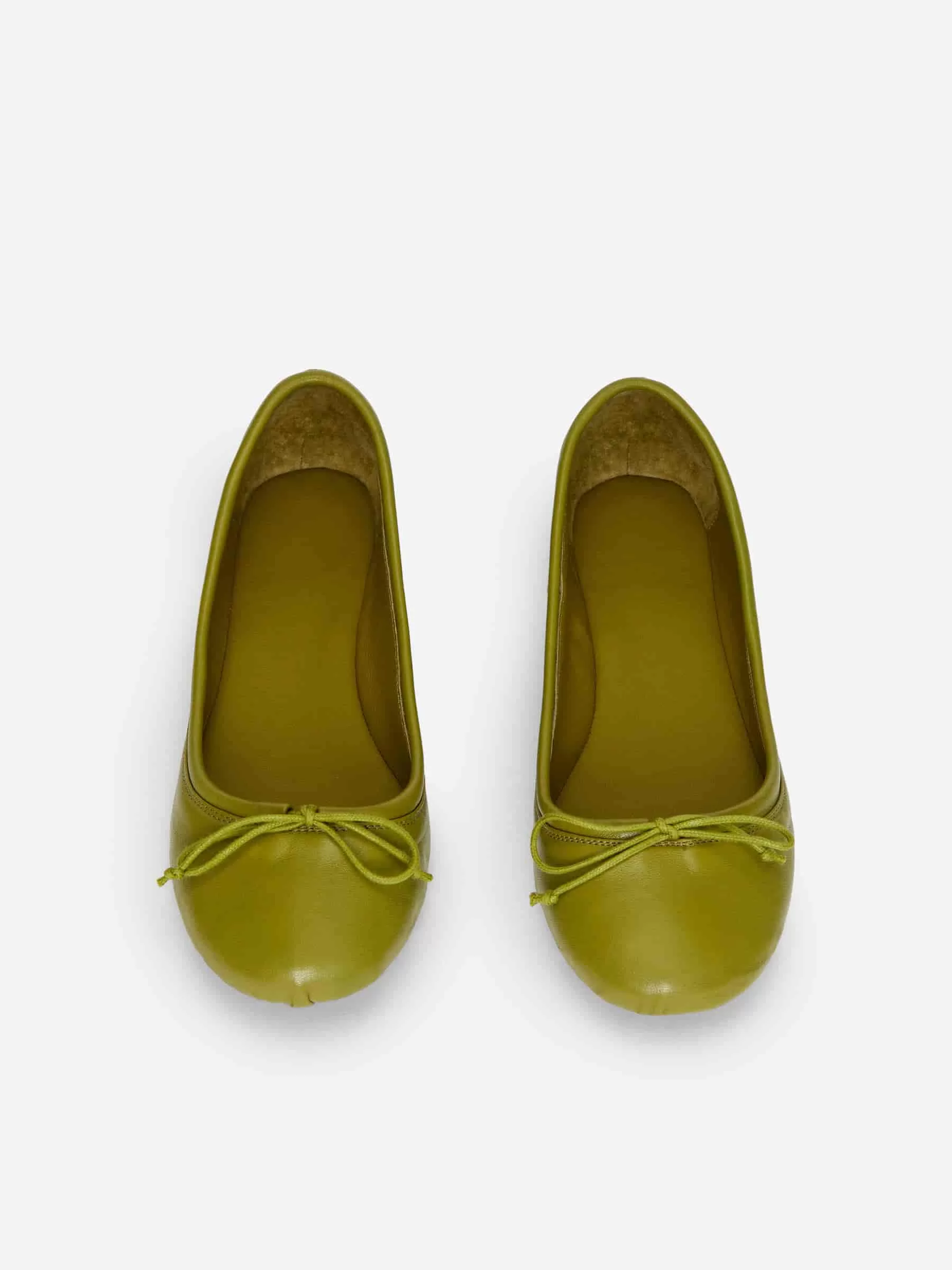 Balettlägenheter tillverkade av kromfritt läder. Stylad med satinsnören och en gummisula.