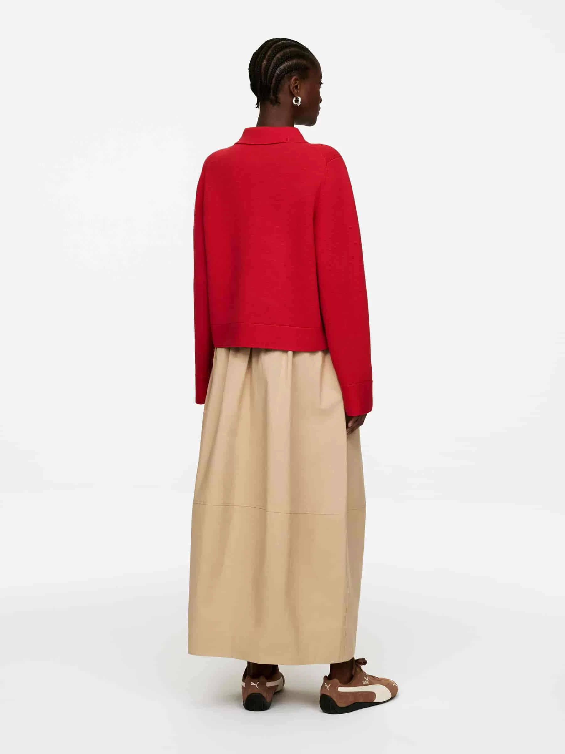 ARKE Dam Stickad bomullsjacka Röd