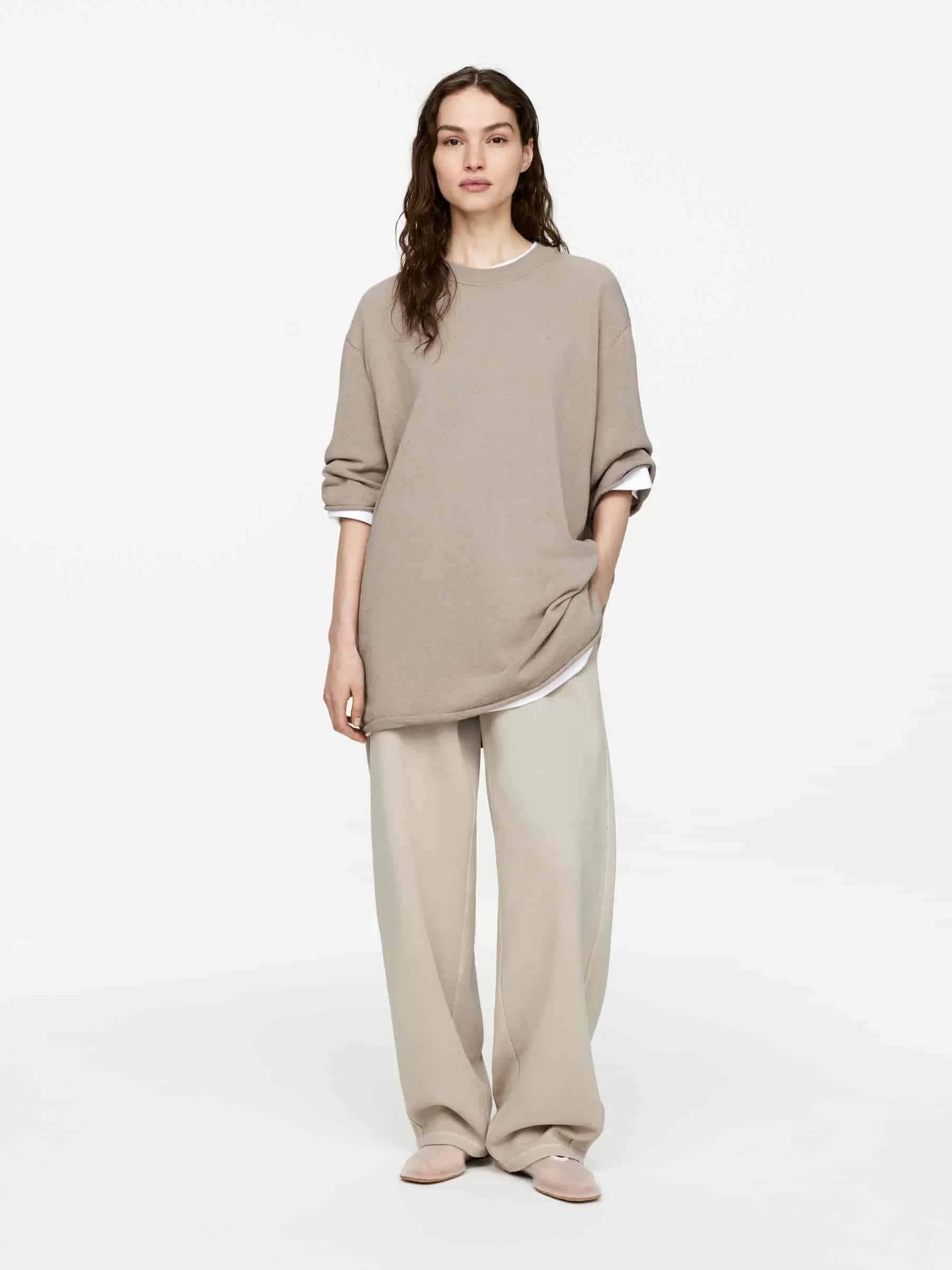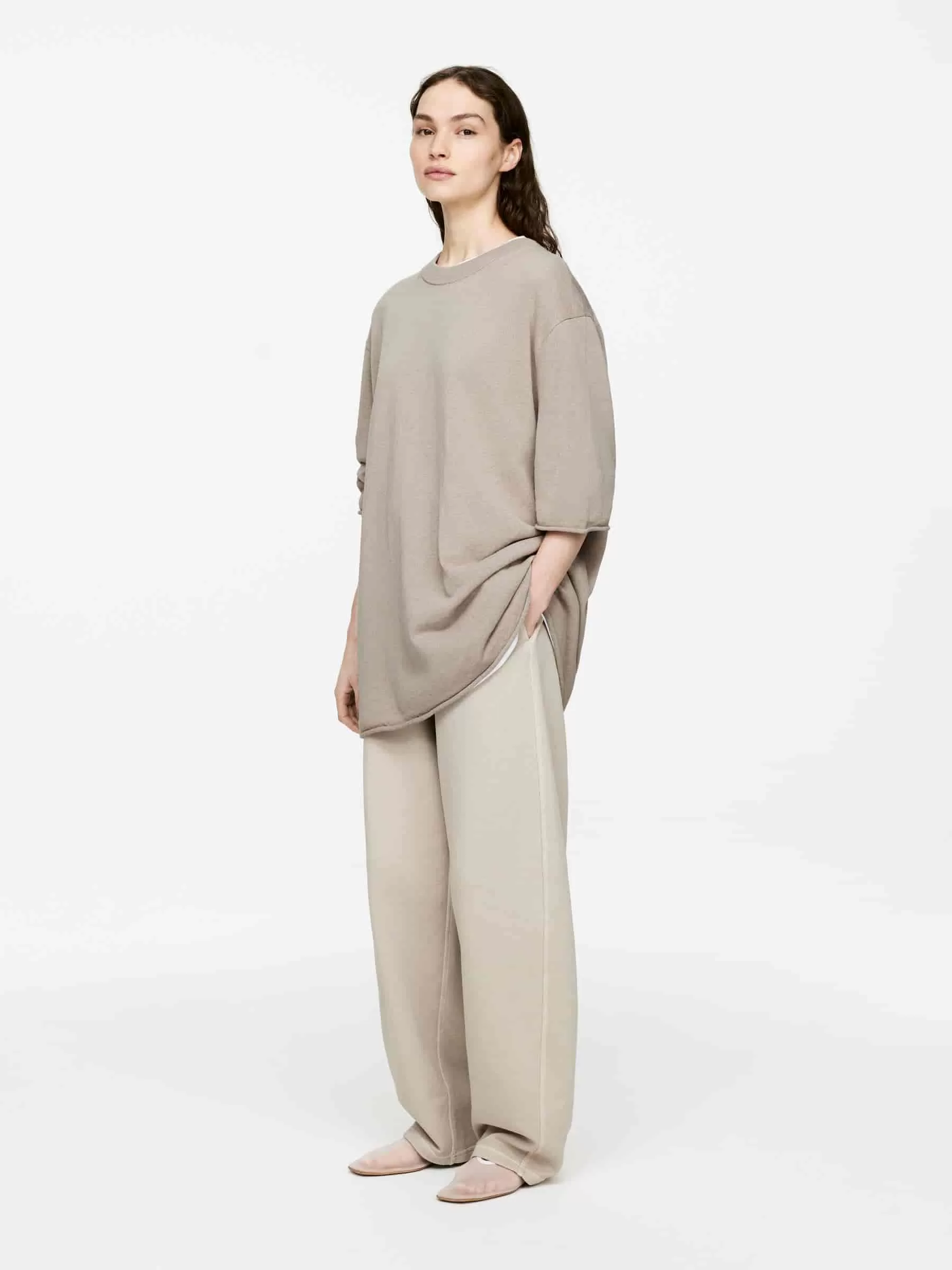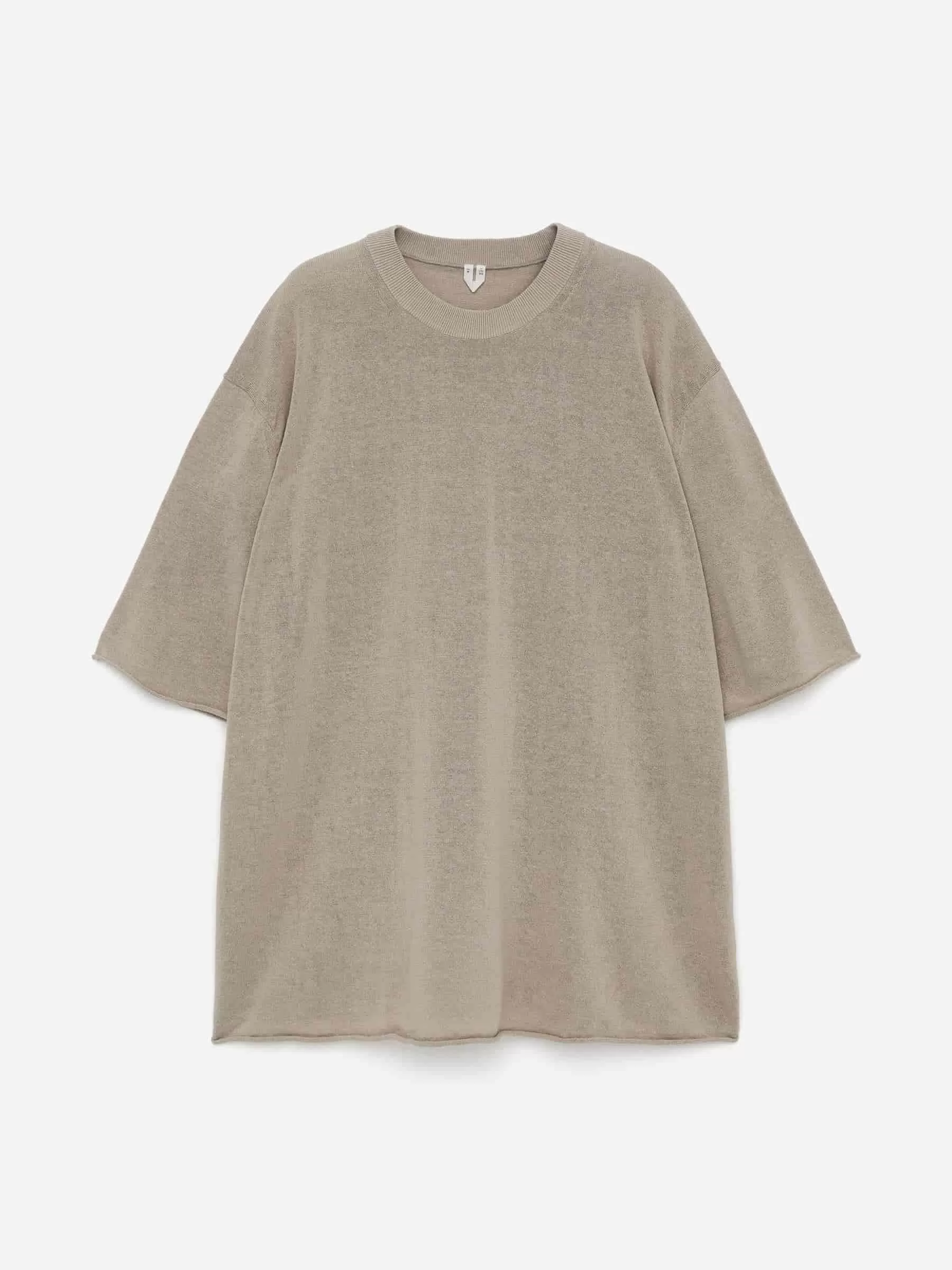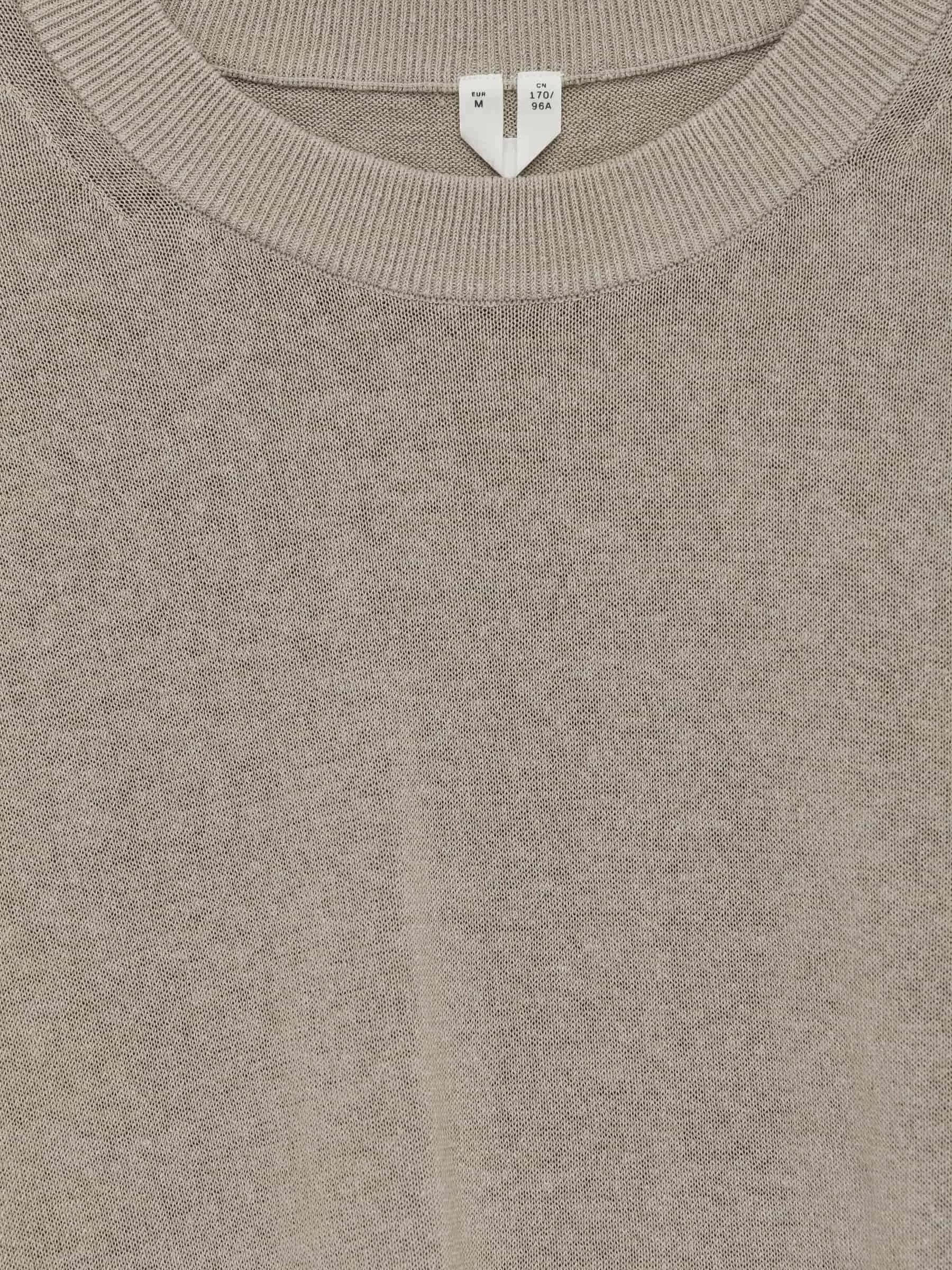 T-shirt i en blandning av linne-bomull-viskos. Stylad med ribbstickad hals och rullade kanter vid ärmslut och nederkant. Lös passform.