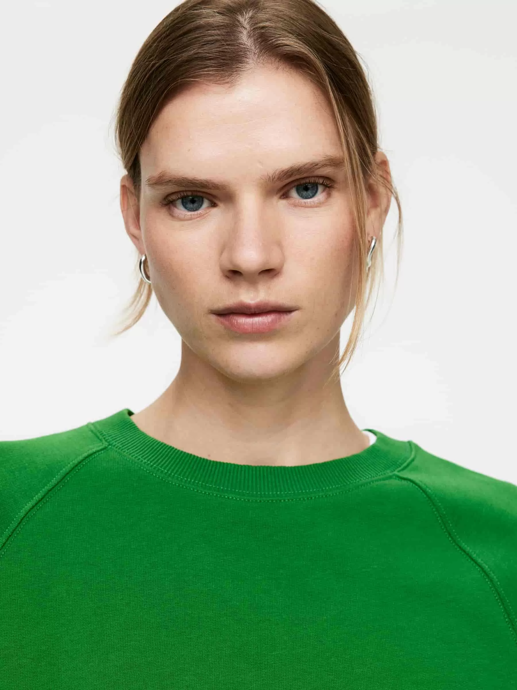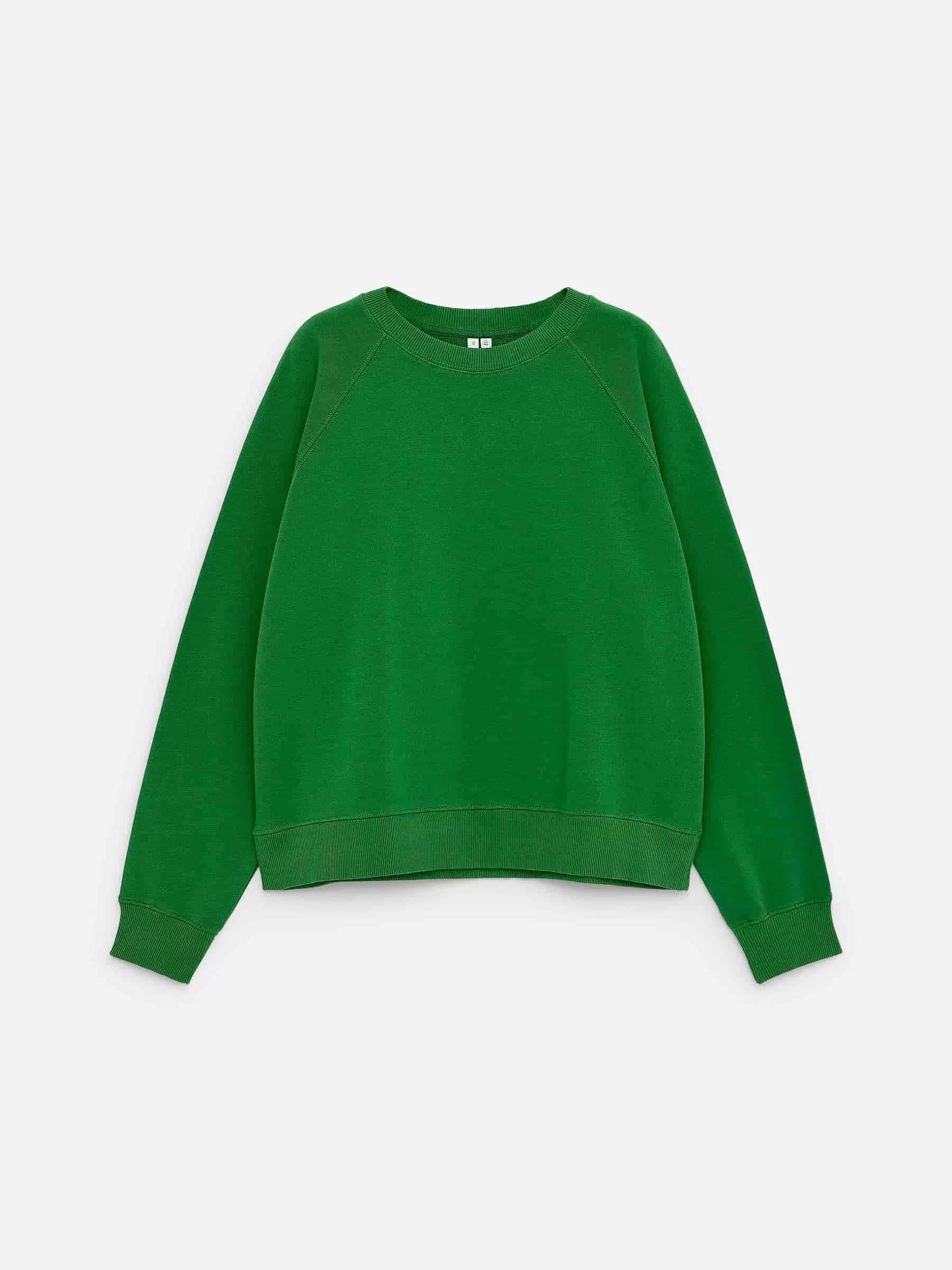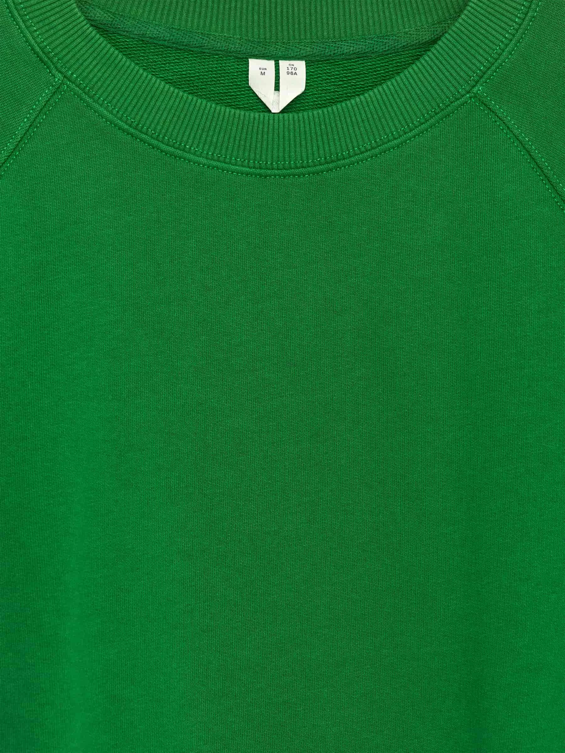 Tröja med rund hals gjord av ett mjukt fransk frottétyg av bomull. Stylad med raglanärmar och ribbad kant. Normal passform.