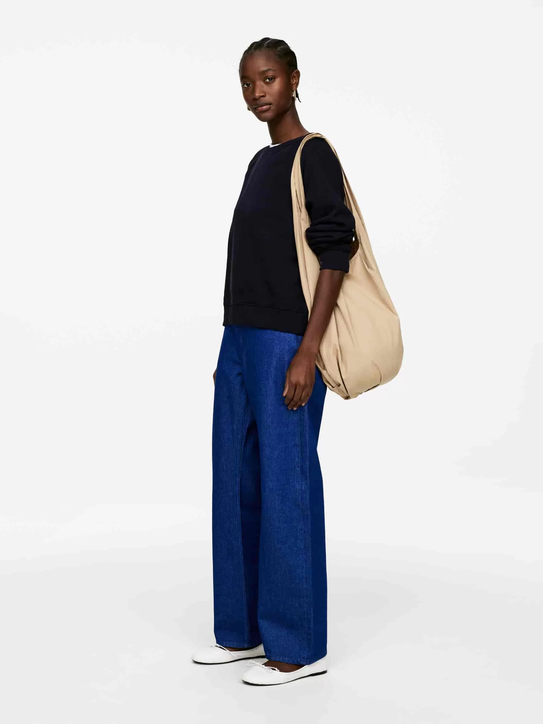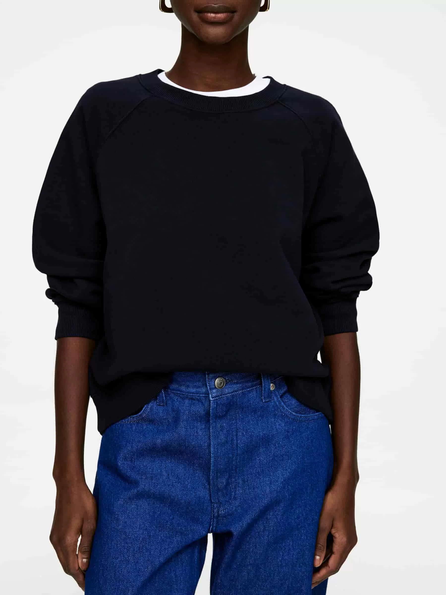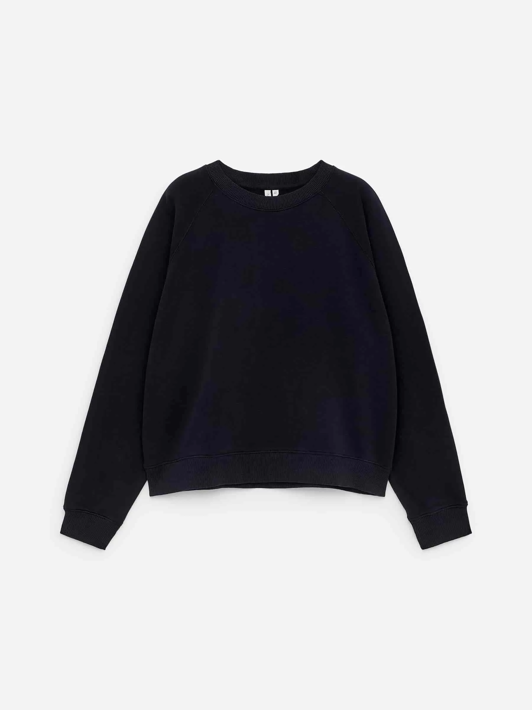 Tröja med rund hals gjord av ett mjukt fransk frottétyg av bomull. Stylad med raglanärmar och ribbad kant. Normal passform.