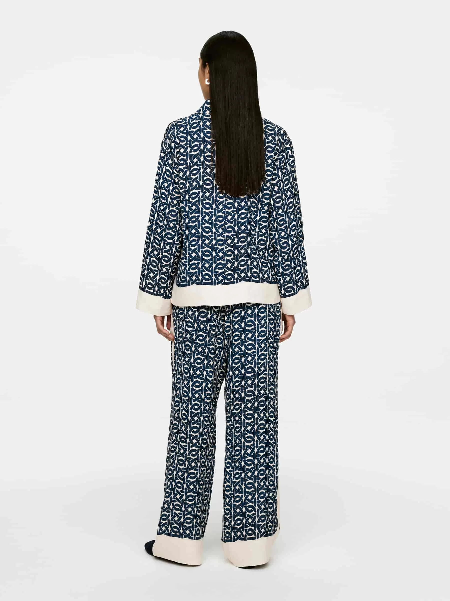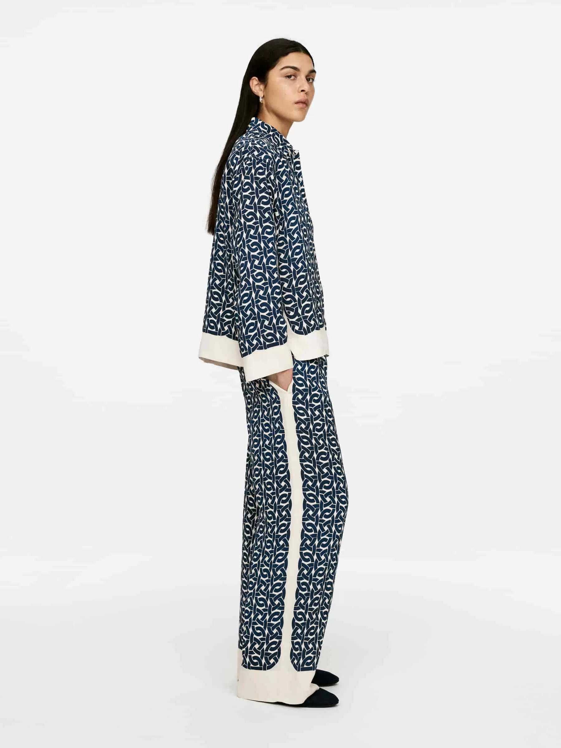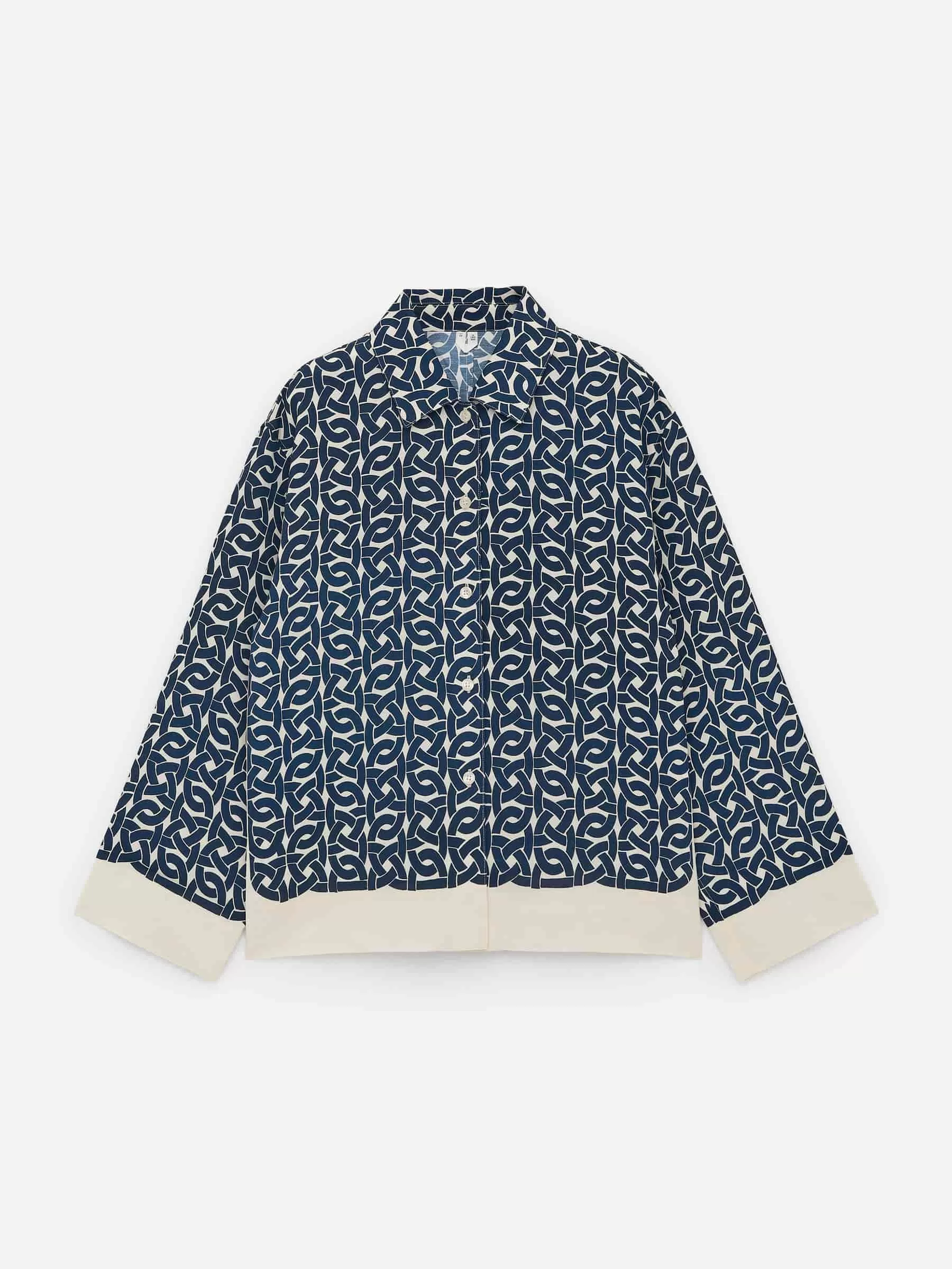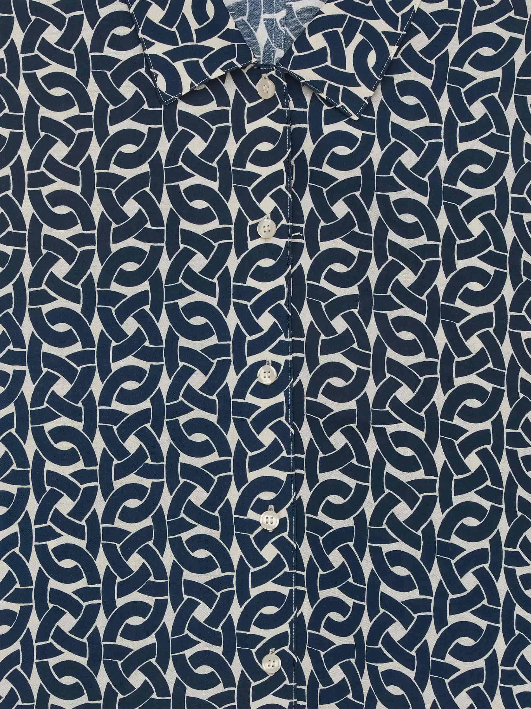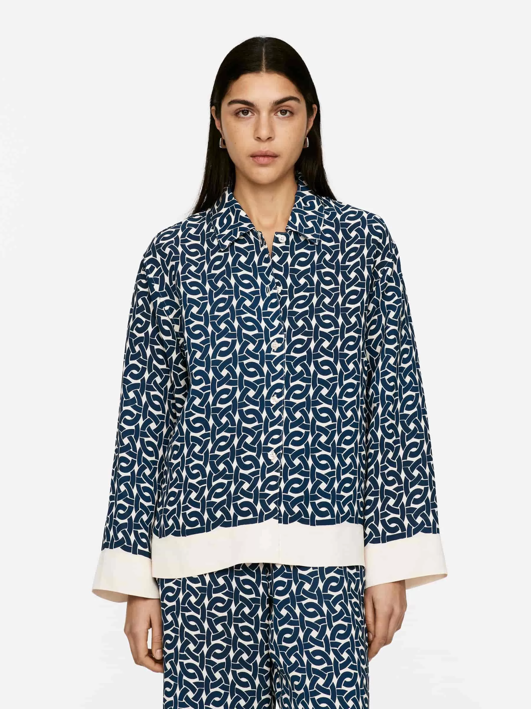 Tryckad blus med knappstängning och skjortkrage. Lös passform.