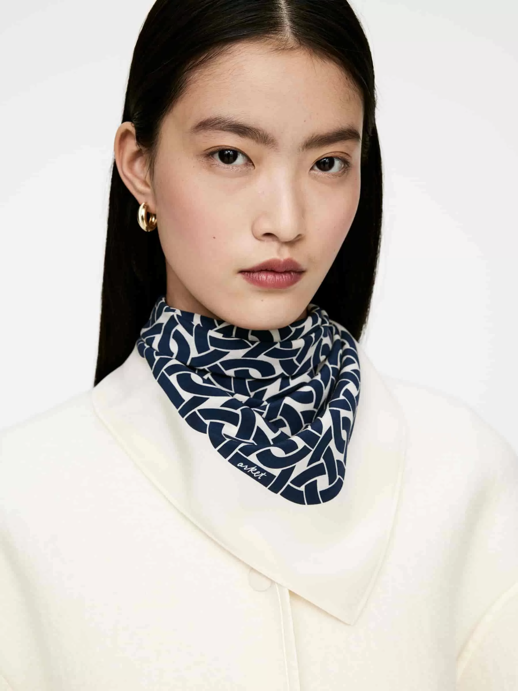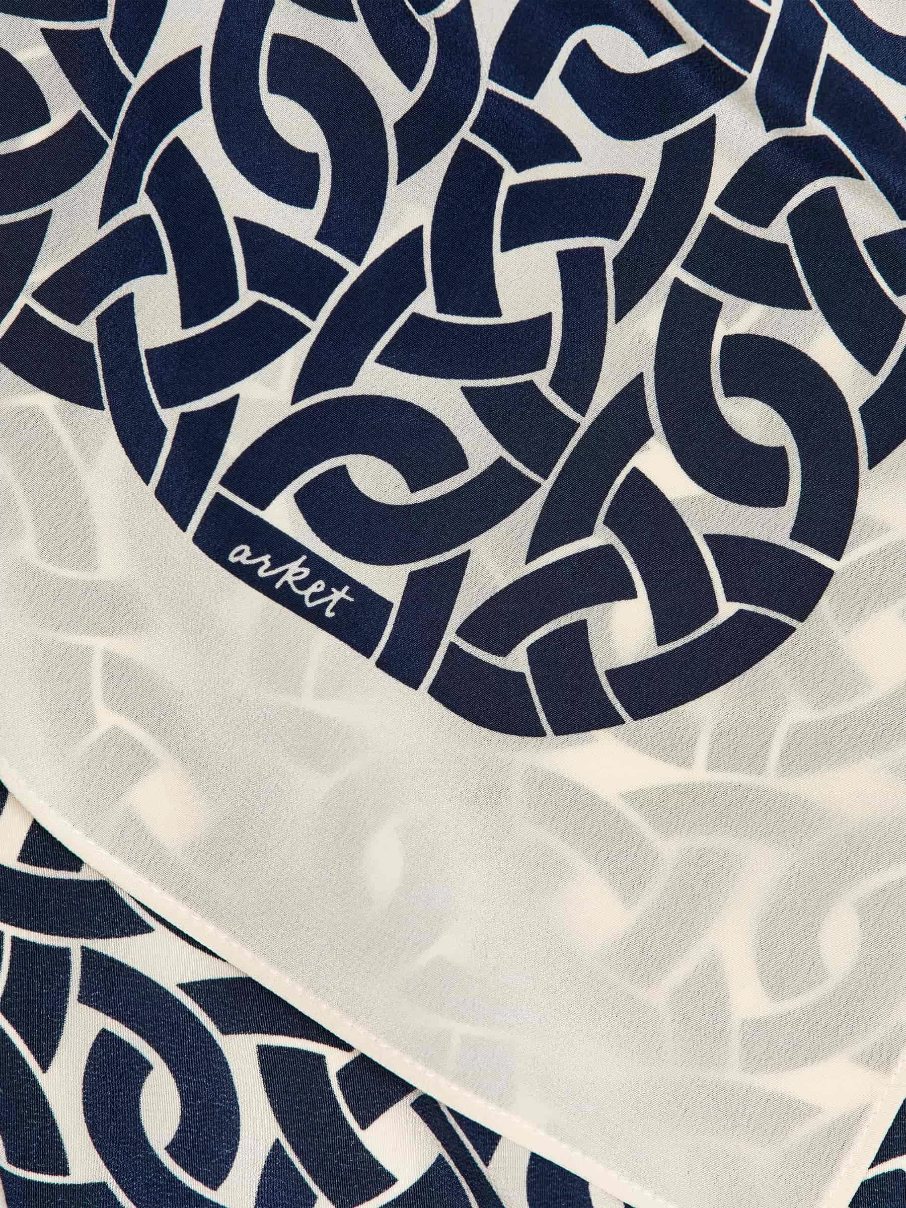 Tryckt halsduk gjord av delikat mullbärssilke. Mått 80 x 80 cm.