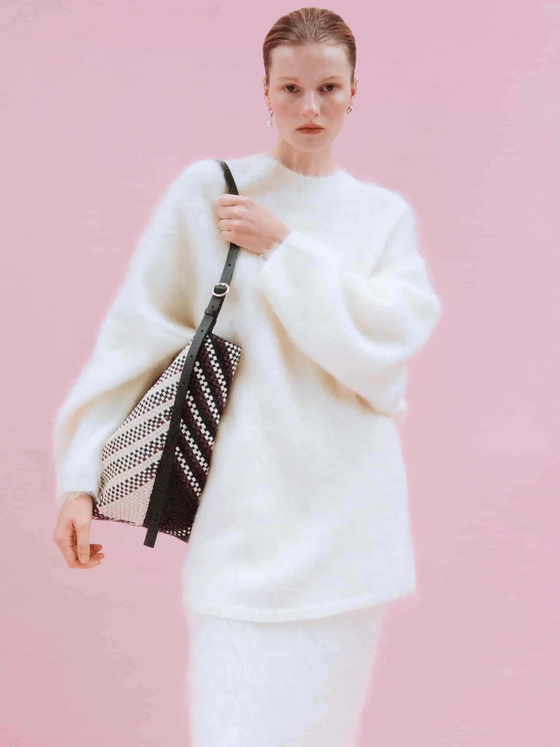 ARKE Dam Tygväska i vävt läder Vit/svart/mörkröd