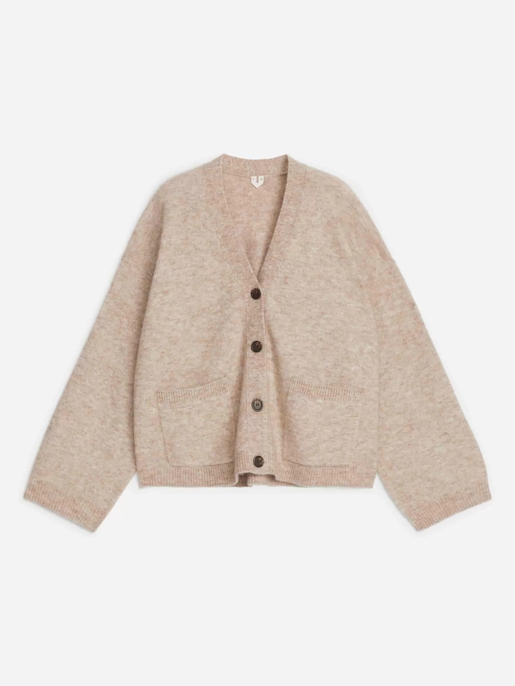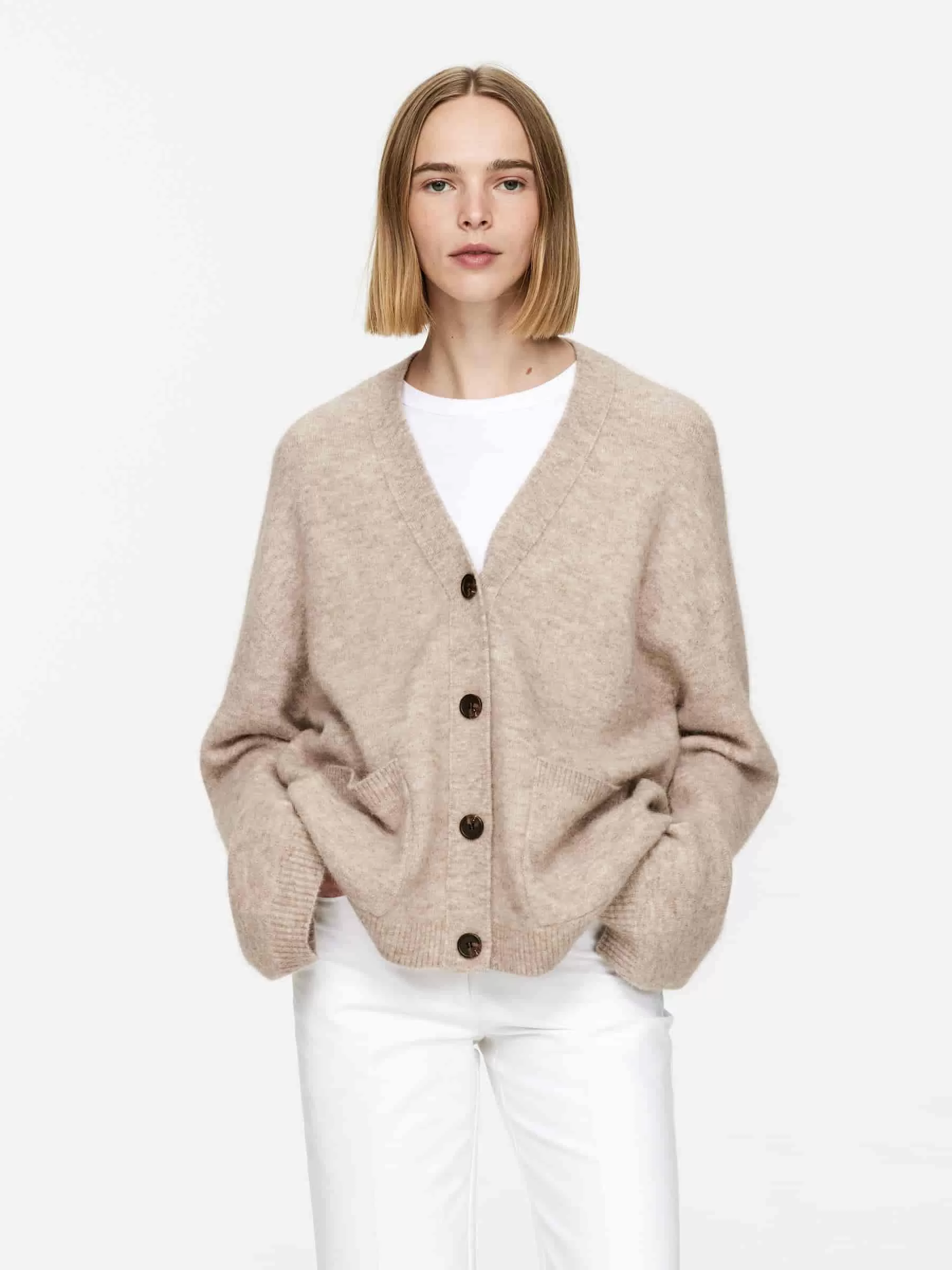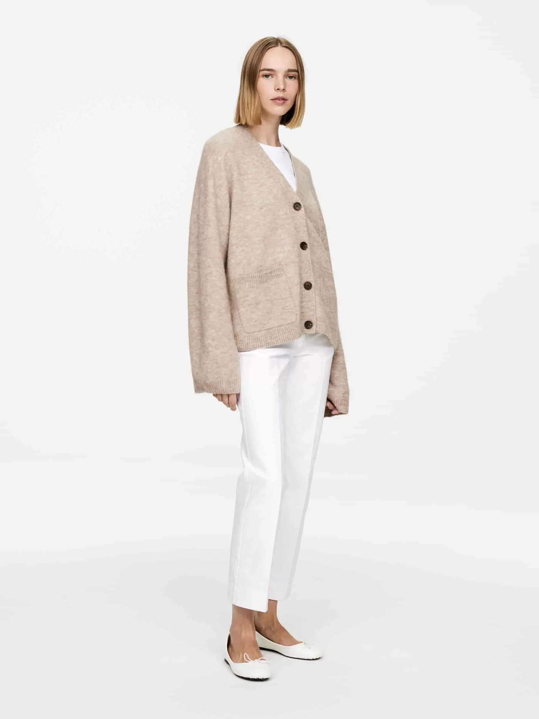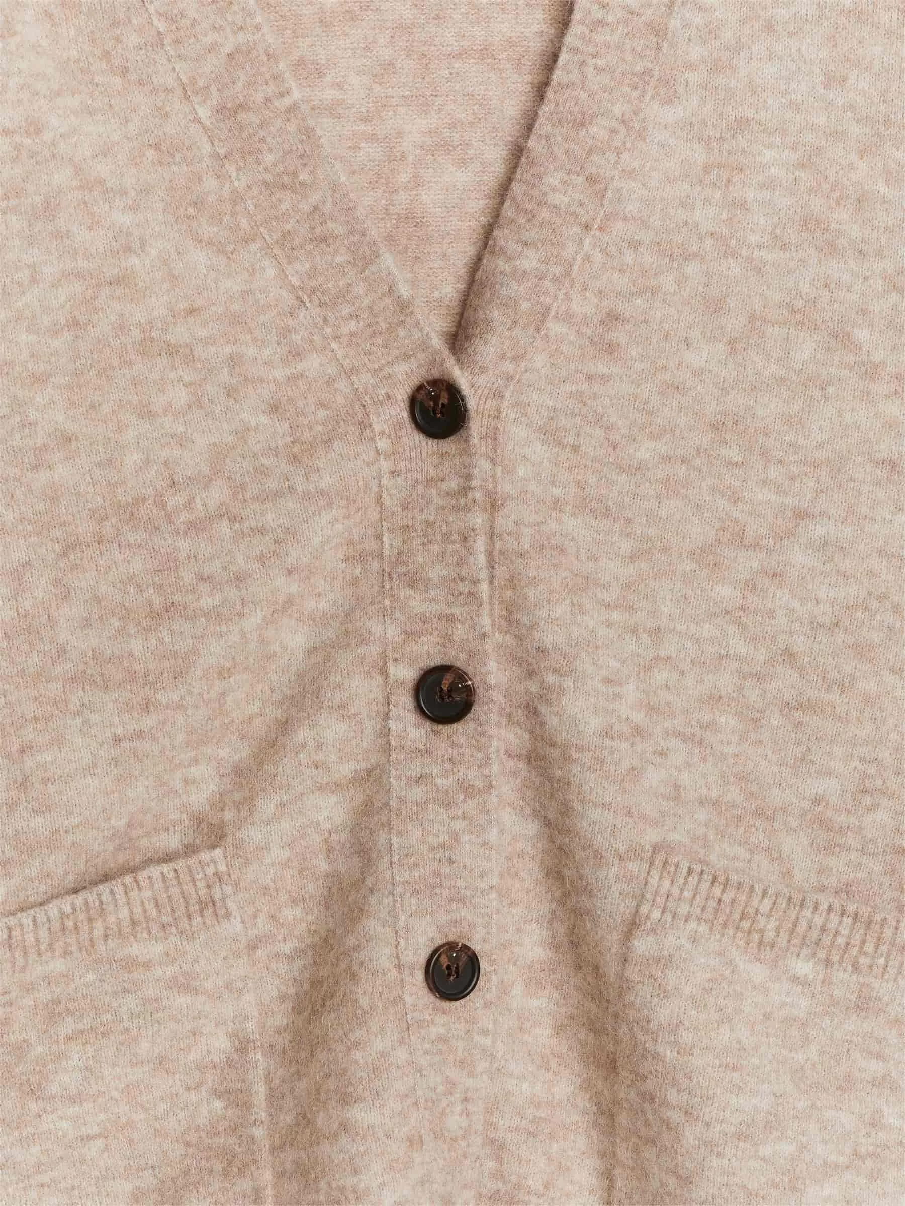Kofta tillverkad av en alpacka-ullblandning. Stylad med V-ringning, knappstängning och en avslappnad passform. Denna stil innehåller 31% RAS Alpaca och 31% RWS ull (TE-00047206). Produkter certifierade enligt Responsible Wool Standard (RWS) och Responsible Alpaca Standard (RAS) innehåller ull och alpackafiber från gårdar som är oberoende certifierade enligt kraven på djurskydd och markförvaltning.