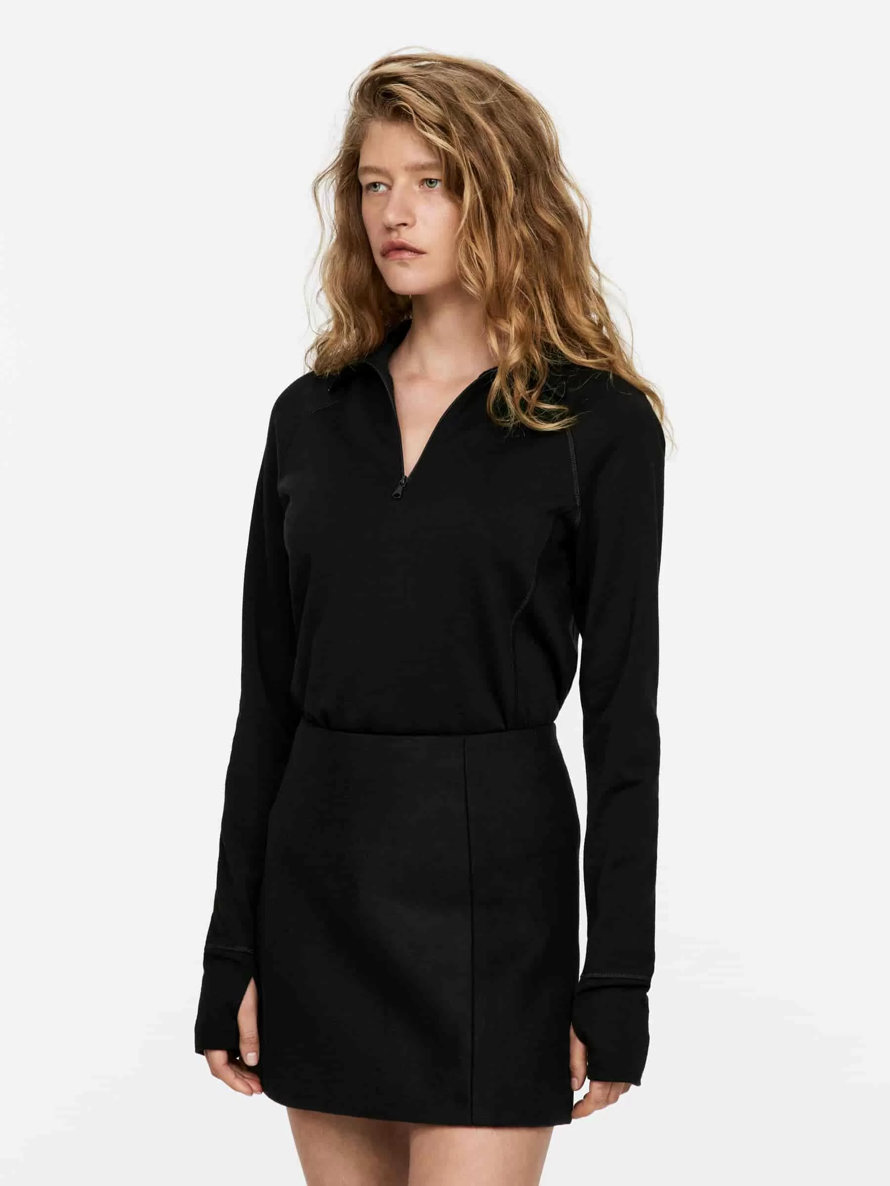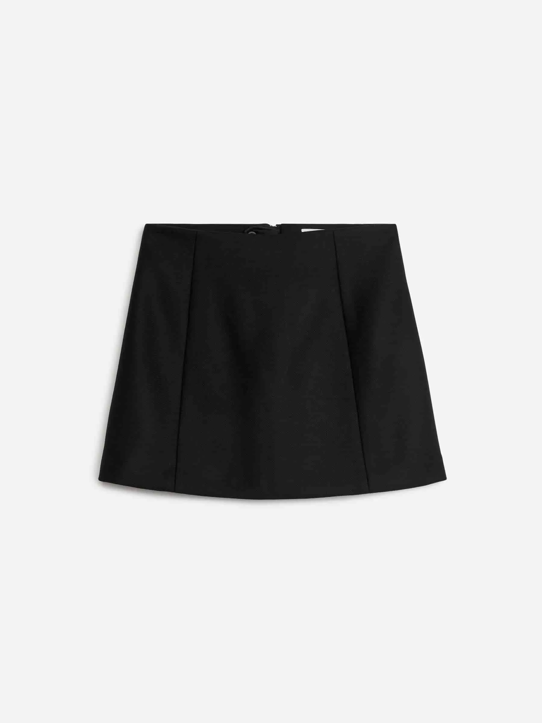 Minikjol i en tovad ullblandning. A-linje med vertikala sömsdetaljer fram och dragkedja mitt bak. Kjolen är designad med normal passform och hög midja. Fodrad.