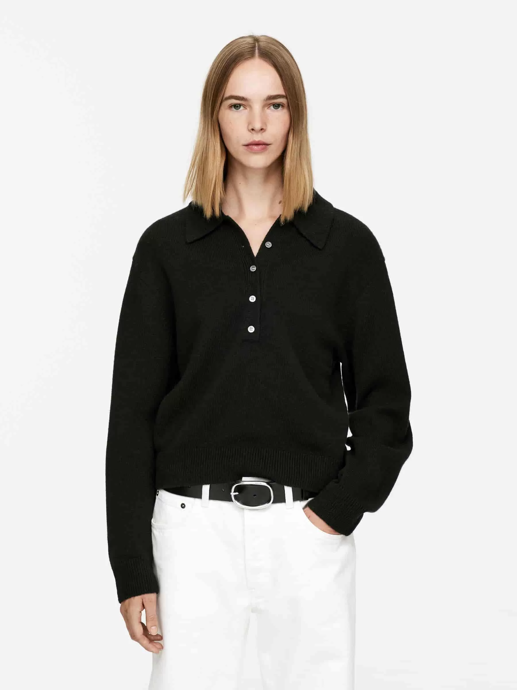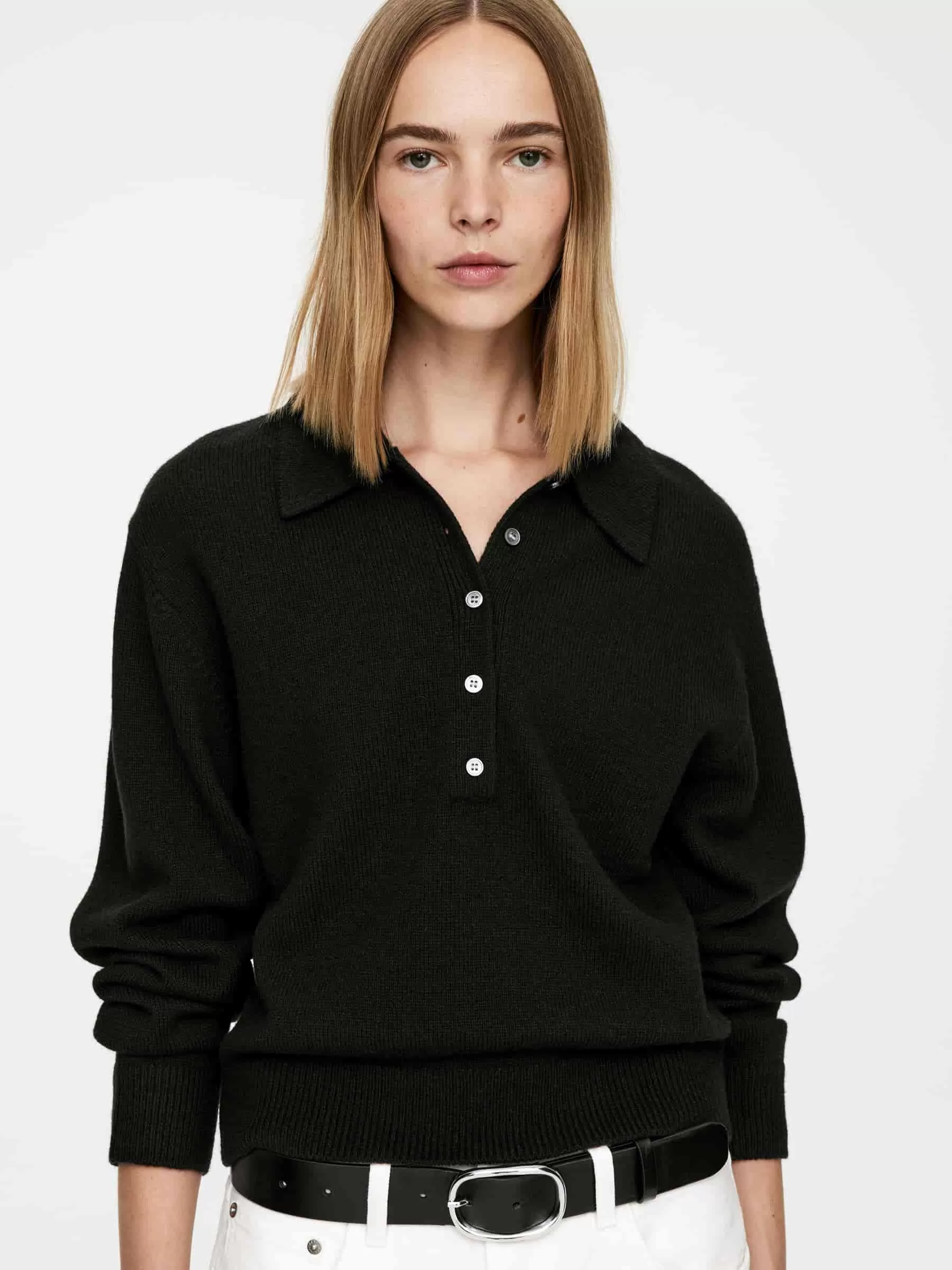 Stickad pikétröja i ull. Detaljerad med klassisk krage och knappslå med fem knappar. Ribb i nederkant och ärmslut. Lös passform. Tröjan innehåller 100 % RWS-ull (TE-00047206). Produkter certifierade enligt Responsible Wool Standard (RWS) innehåller ullfibrer från gårdar som är oberoende certifierade enligt kraven på djurskydd och markförvaltning.