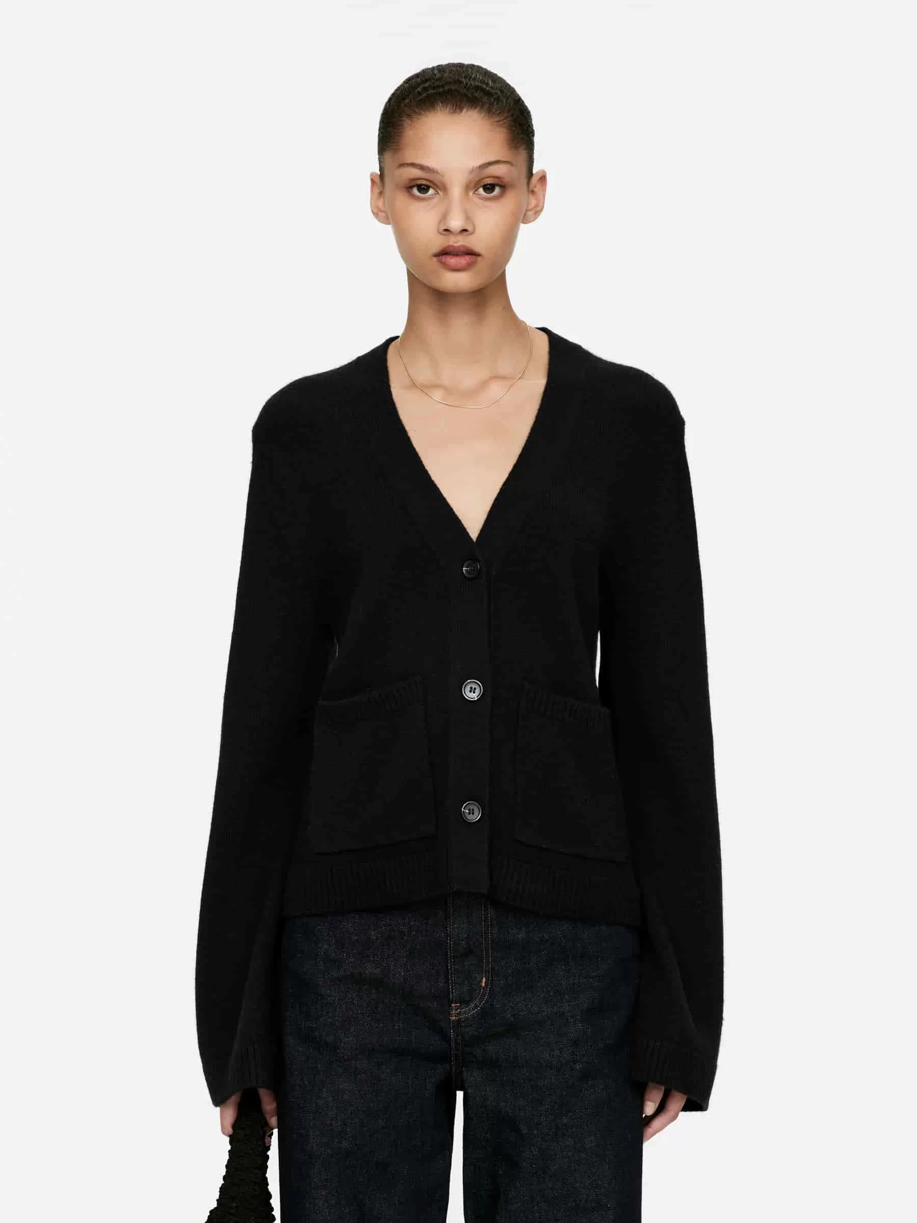 Långärmad kofta med V-ringning och stängning med tre knappar. Designad med framfickor. Slimmad passform. Koftan innehåller 100 % RWS-ull (TE-00047206). Produkter certifierade enligt Responsible Wool Standard (RWS) innehåller ullfibrer från gårdar som är oberoende certifierade enligt kraven på djurskydd och markförvaltning.