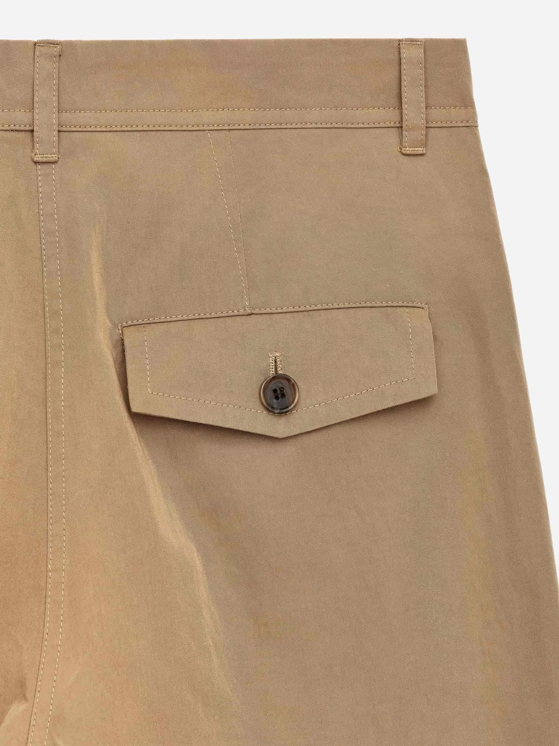 Avslappnad byxa med pressveck fram och bak och uppvikbar detalj i nederkant. Dragkedja med knappstängning, snedställda sidfickor och fickor med lock baktill.
