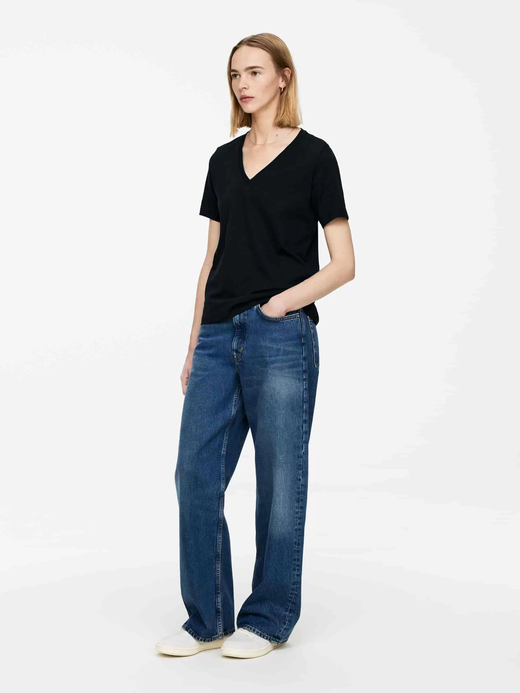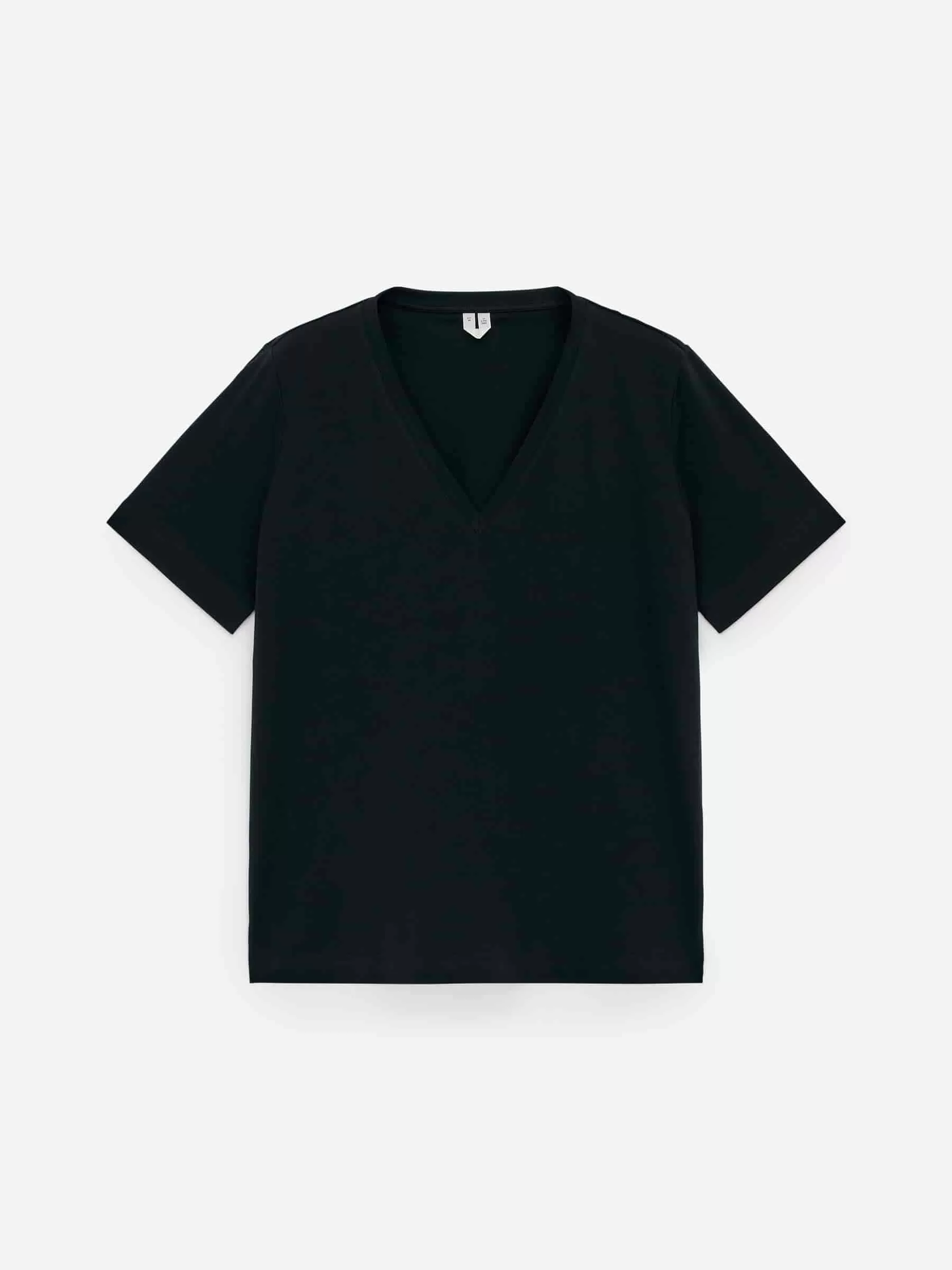 T-shirt med V-ringning tillverkad av mjuk bomullsjersey. Normal passform.