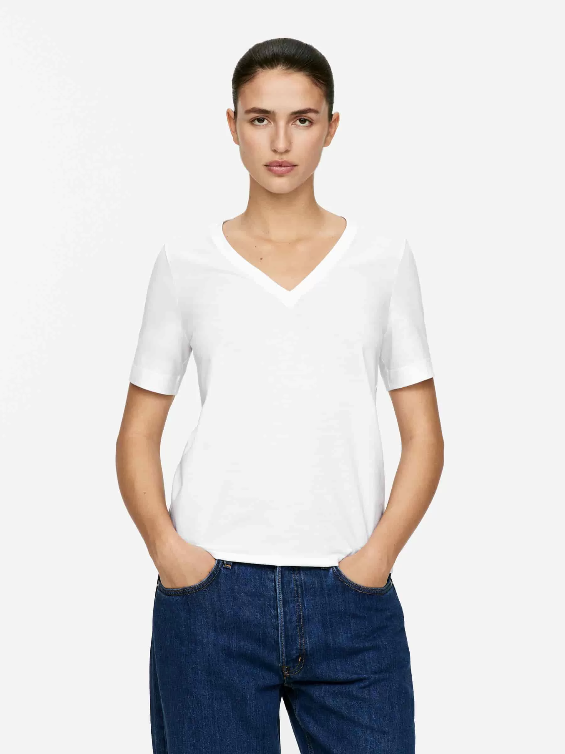 T-shirt med V-ringning tillverkad av mjuk bomullsjersey. Normal passform.
