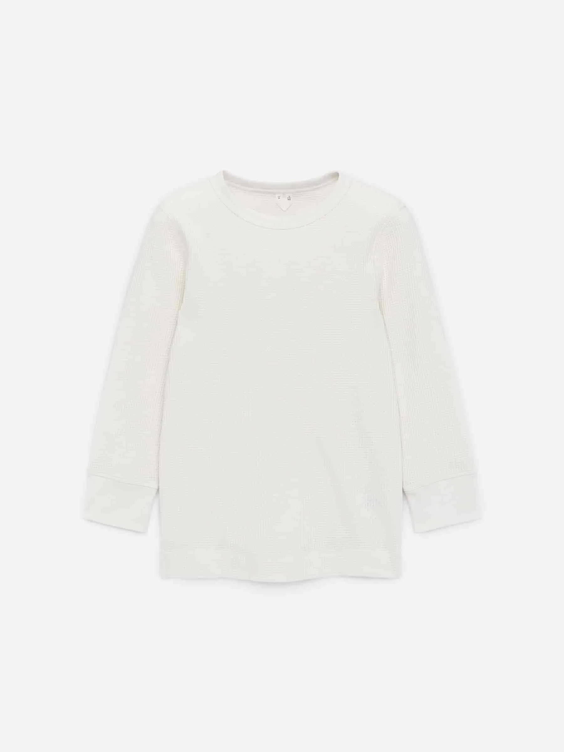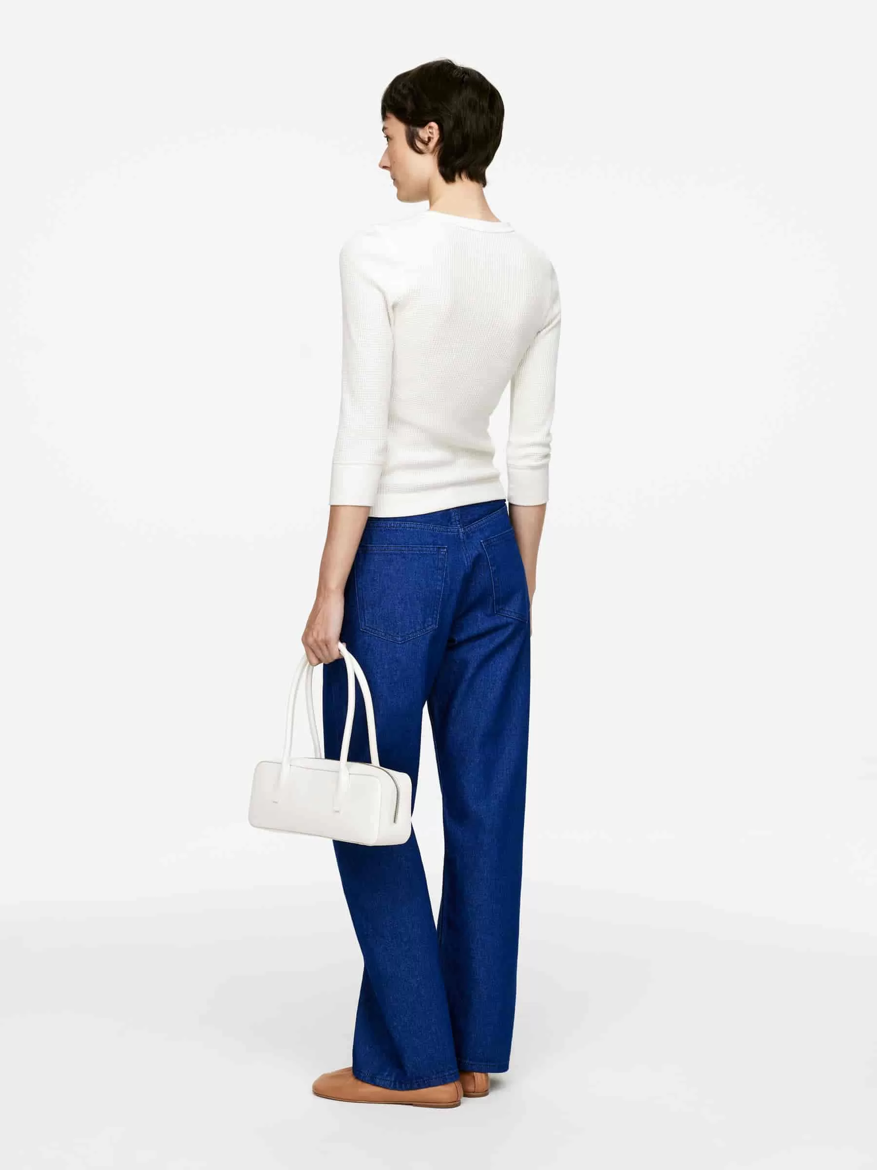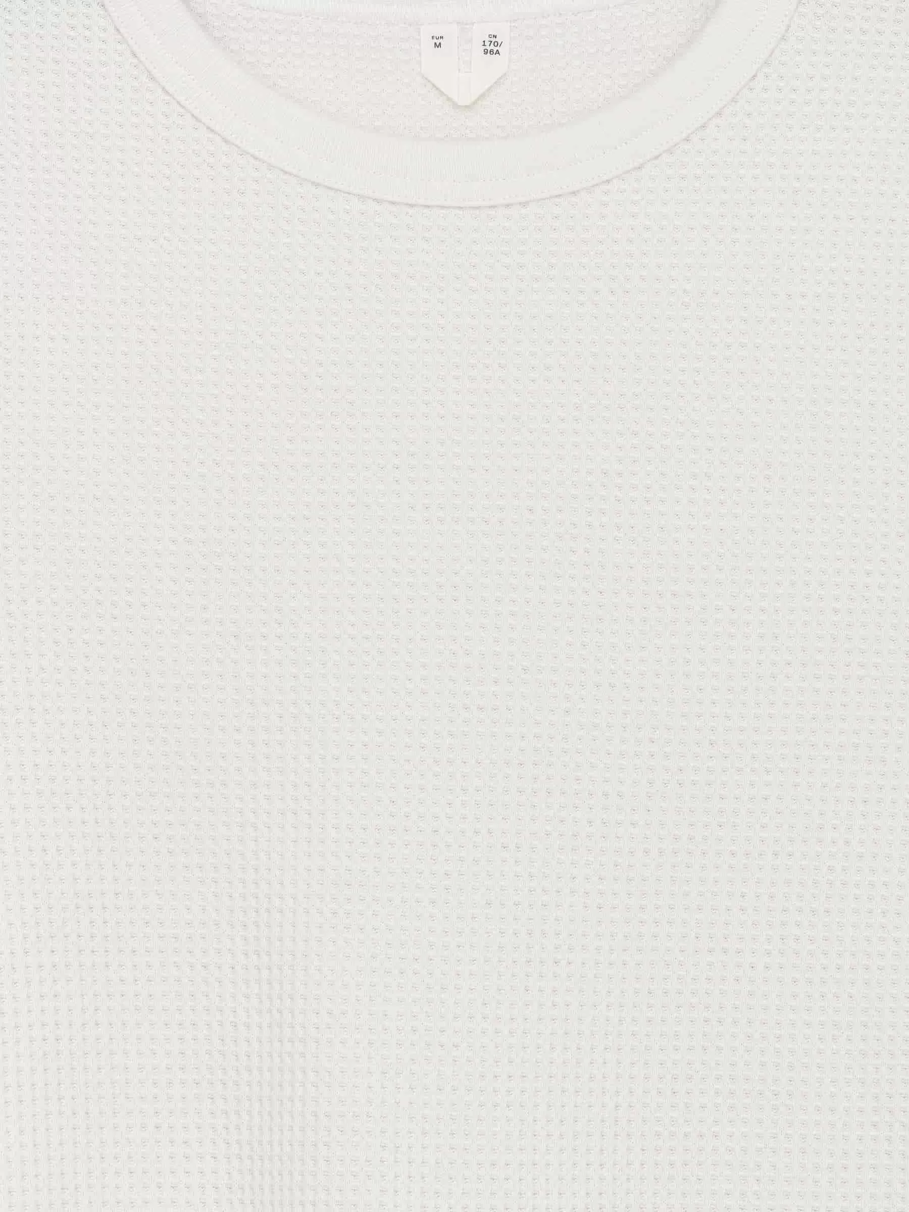 Slim-fit topp gjord av en bomullsjersey med våffelstruktur. En rund halsad stil med 3/4-ärmar och breda, ribbstickade muddar. Kort slits i sidsömmarna.