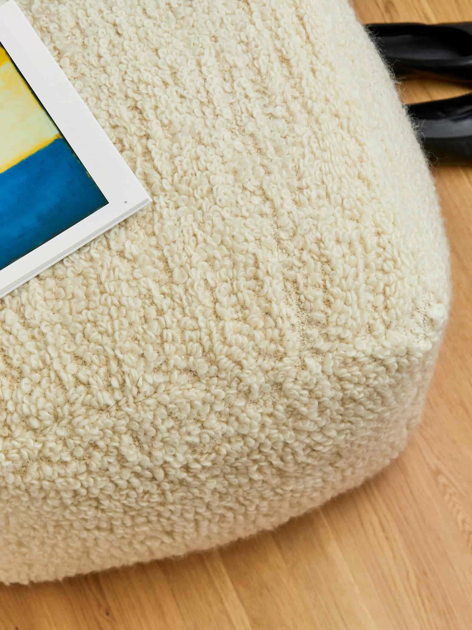 Puff med en strukturerad yta gjord av en ull- och bomullsblandning. Mått 52 cm x 52 cm x 35 cm.