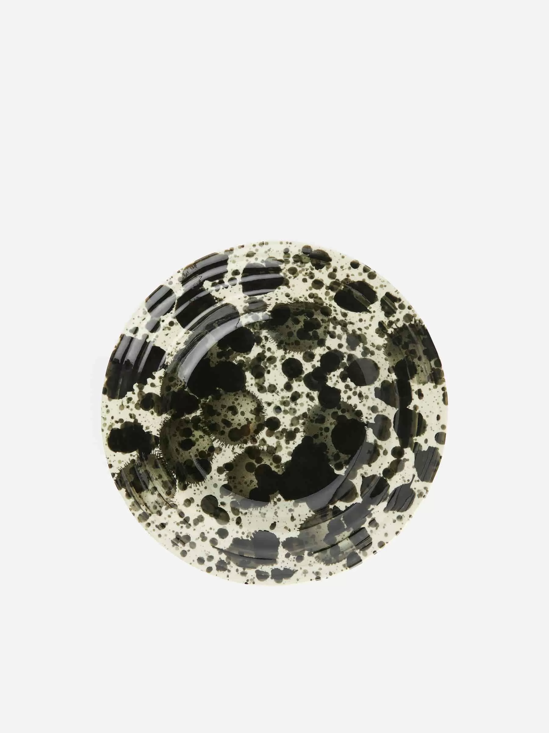 Djup tallrik för middag och servering. Tallriken är gjord av stengods, har en något oregelbunden form och ett handmålat stänkmönster. Varje del har en unik finish. Diameter 21,5 cm, höjd 3 cm.