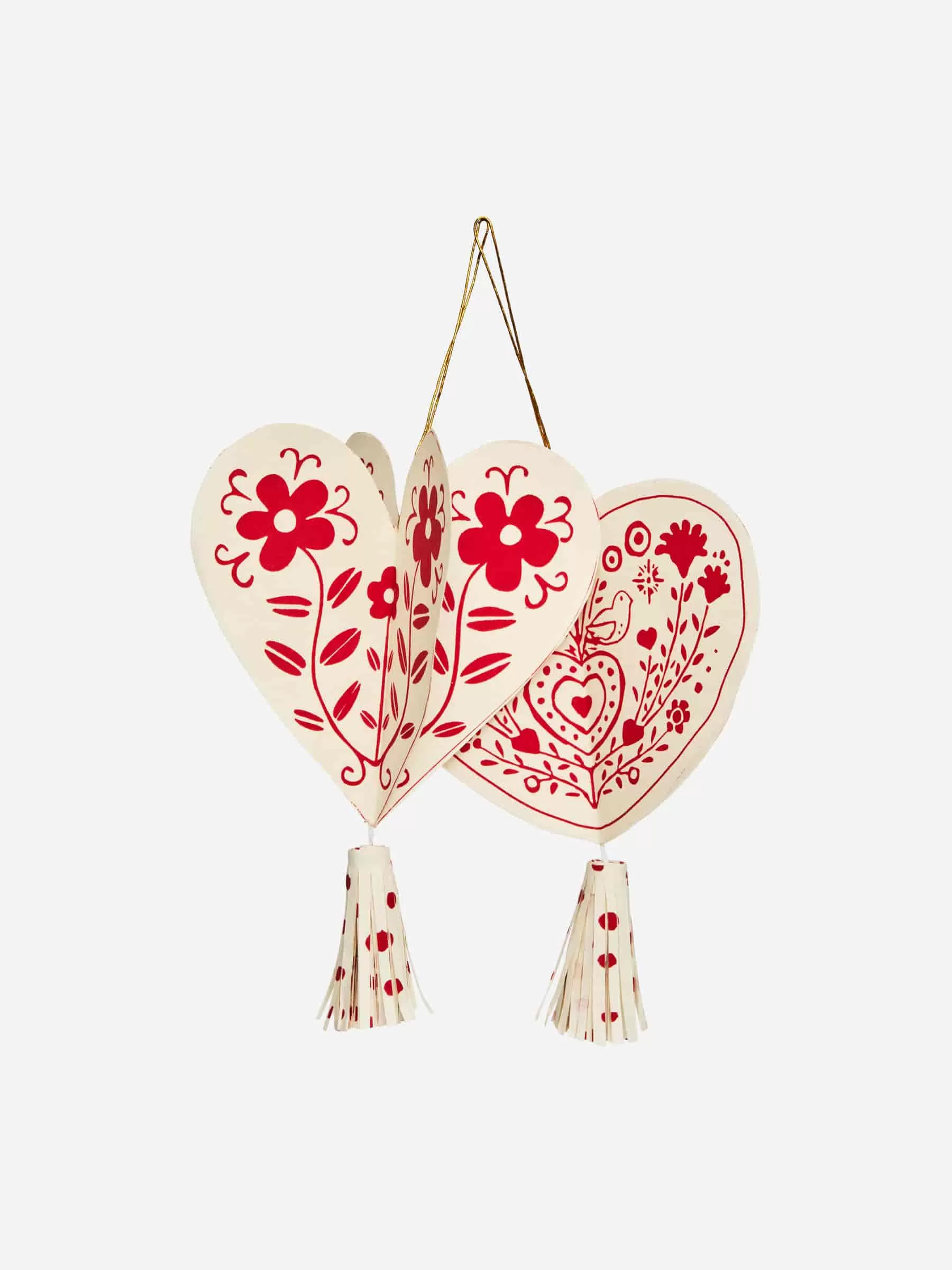 Hängande pappersprydnader handgjorda i Bangladesh. Design av det svenska Fairtrade-märket A World of Craft. Säljes i set om två. 13 cm x 9 cm.