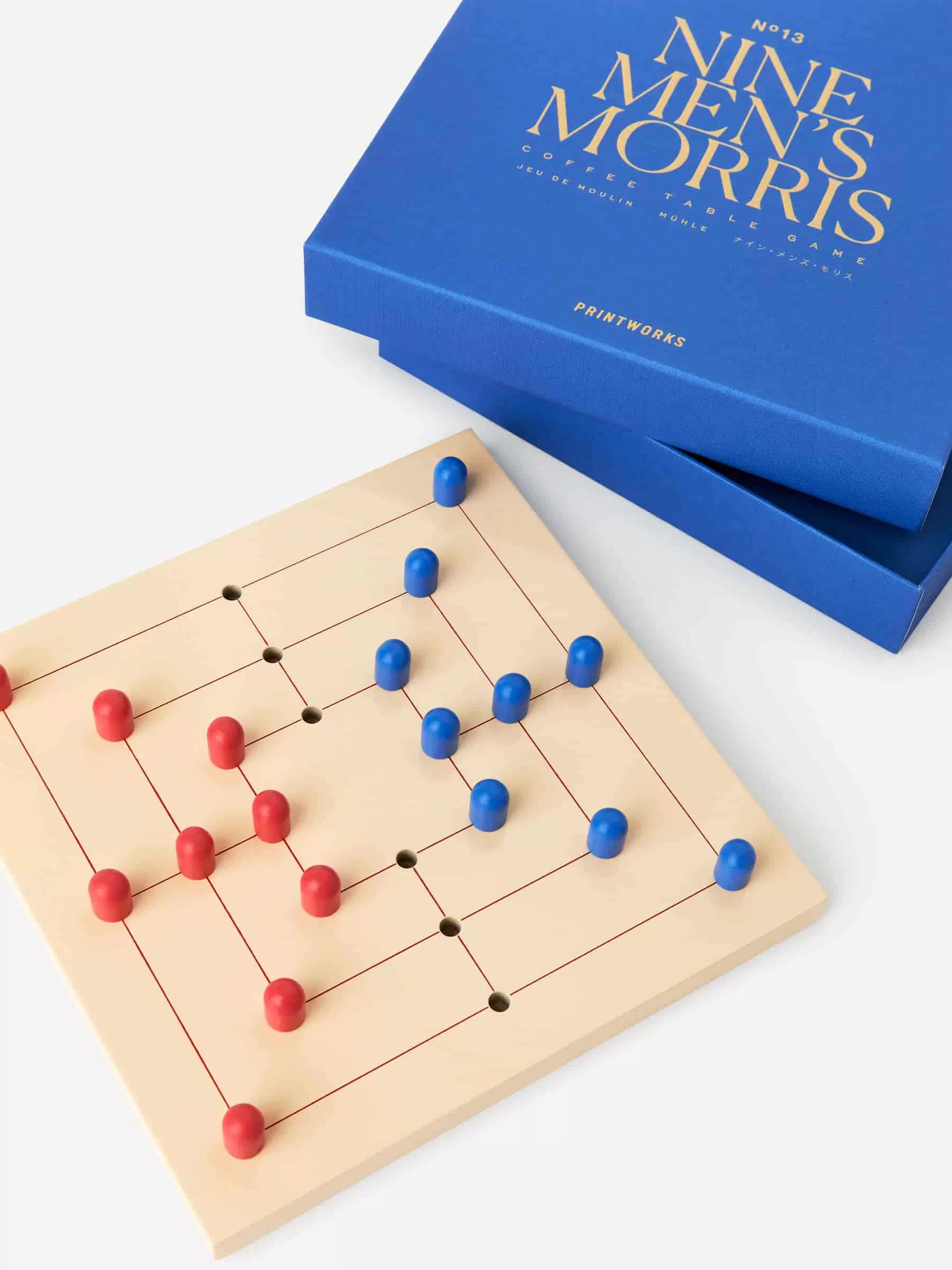 Det här omarbetade Nine Men’s Morris-spelet är tillverkat av det svenska livsstilsmärket PRINTWORKS. Spelsetet har en träskiva och nio spelpjäser för varje spelare. Lämplig för två spelare i åldrarna 5+.
