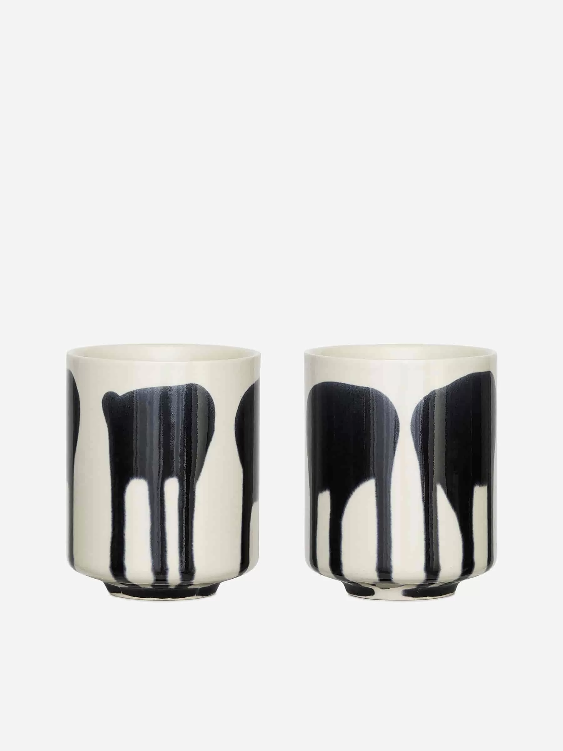 Koppar gjorda av helglaserat stengods. Varje produkt har en unik finish då tillverkningsprocessen delvis görs för hand. Höjd 10 cm, diameter 7,7 cm. Säljes som set om två. Tål maskindisk.