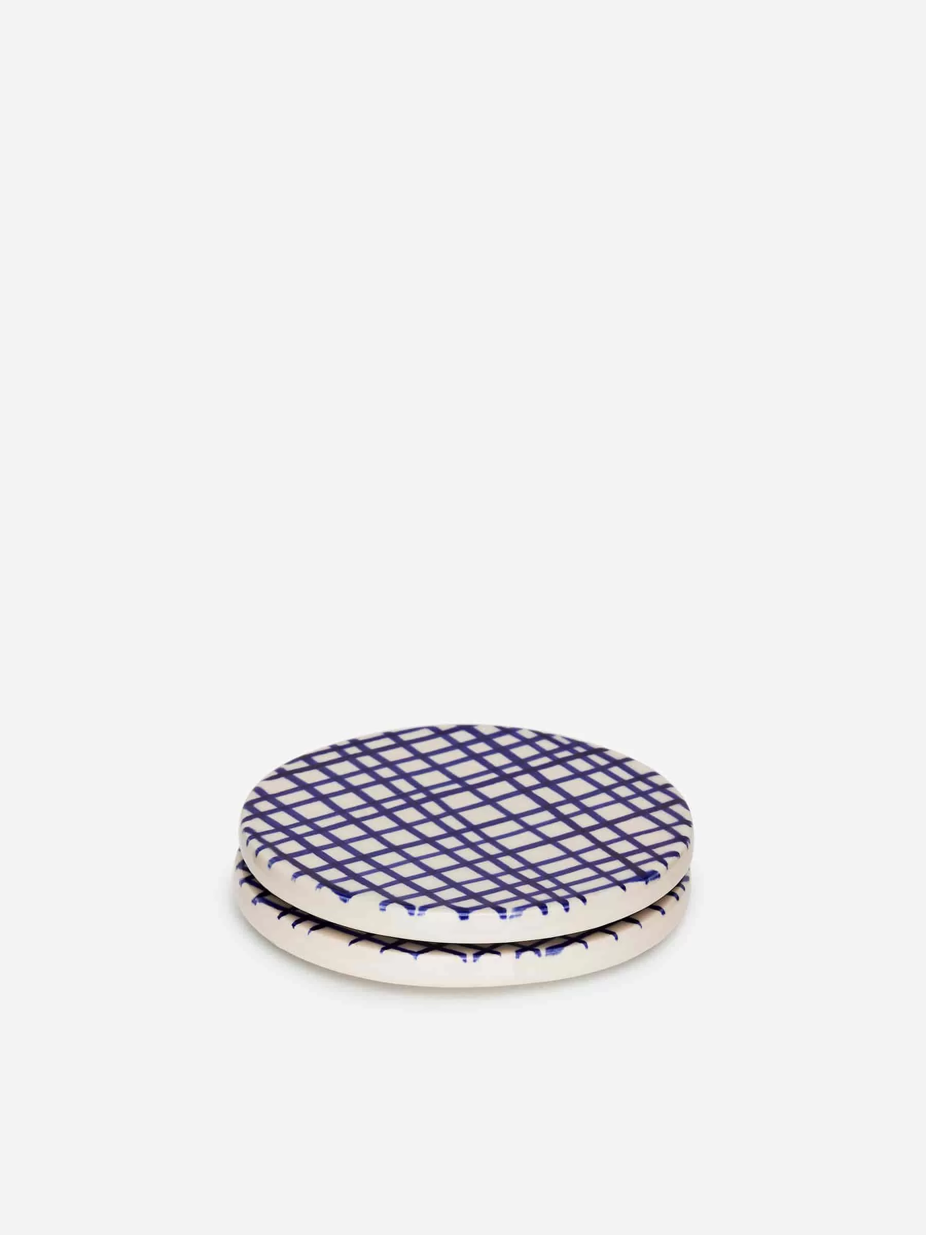 ARKE hemutrustning Stengodsunderlägg set om 2 Benvit/blå