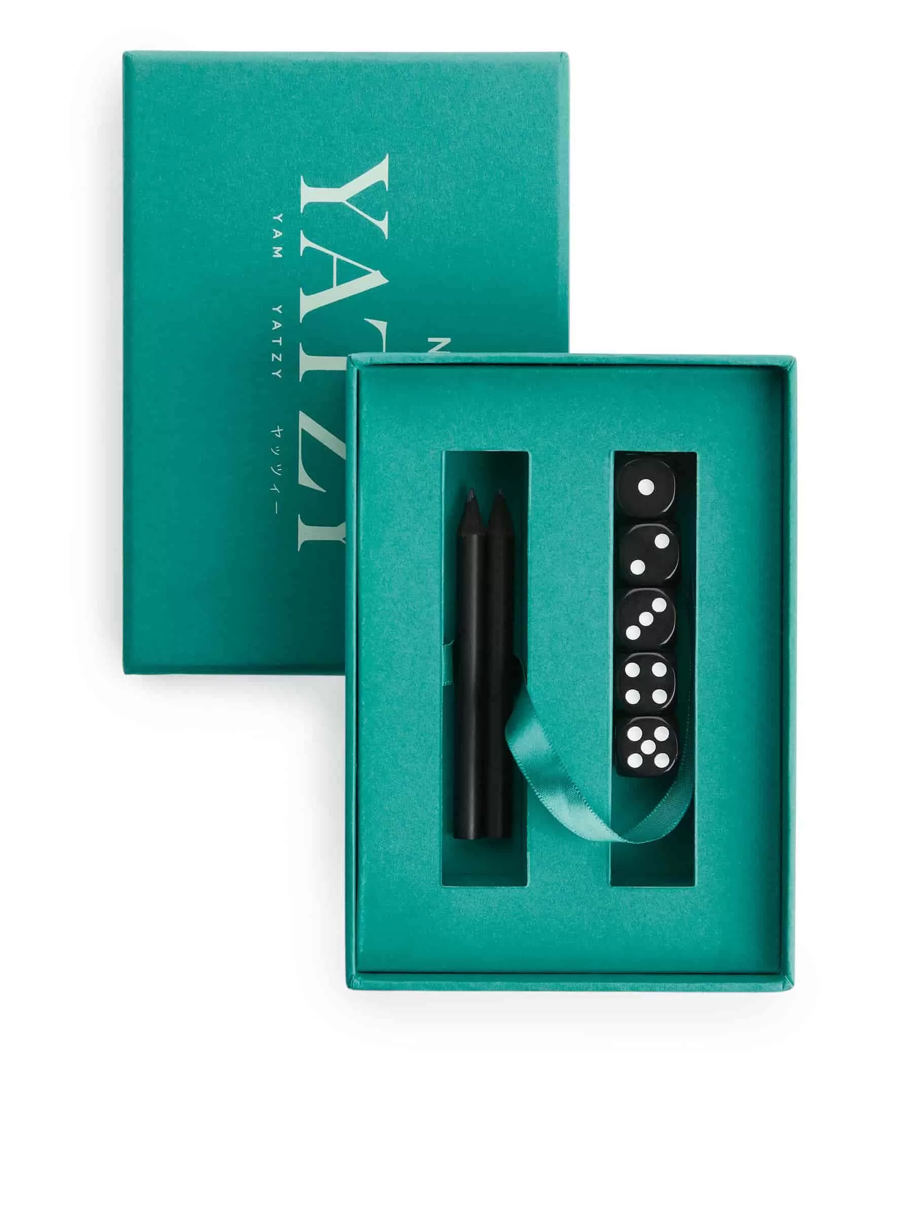Ett klassiskt set av yatzy med ett uppdaterat utseende, tillverkat av det svenska livsstilsmärket PRINTWORKS.Setet innehåller 5 svarta tärningar, 2 svarta pennor och ett 50-sidors styrkort.