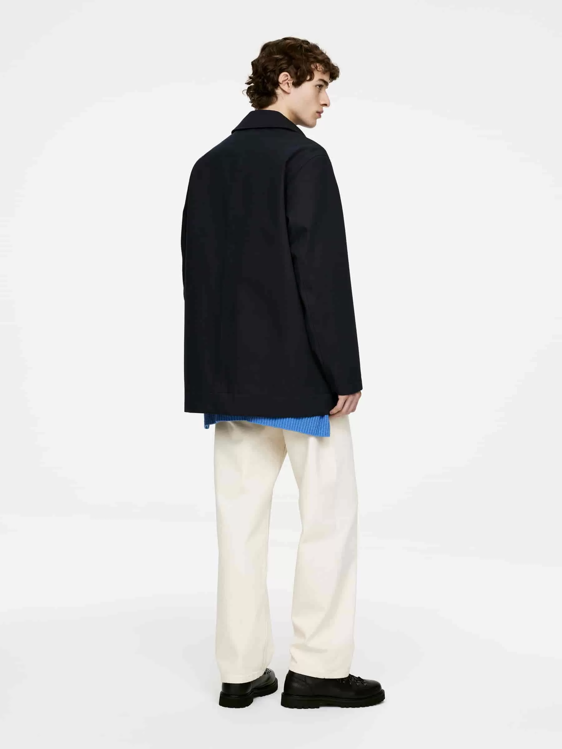 Mellång jacka tillverkad av en bomullsblandning med vattenavvisande egenskaper. Stylad med en vanlig krage, en avtagbar stormklaff och en knappslå fram med tvåvägsdragkedja och dolda tryckknappar. Två stora fickor med dold tryckknappsstängning och en enda innerficka. Justerbara flikar i nederkant. Öljetter vid ärmhål. Vanlig passform. Det här plagget är en del av 2-i-1-serien, ett modulärt ytterplaggssystem som inkluderar skal och isolerande foder speciellt utformade för att knäppas ihop och bilda en helt vadderad kappa.