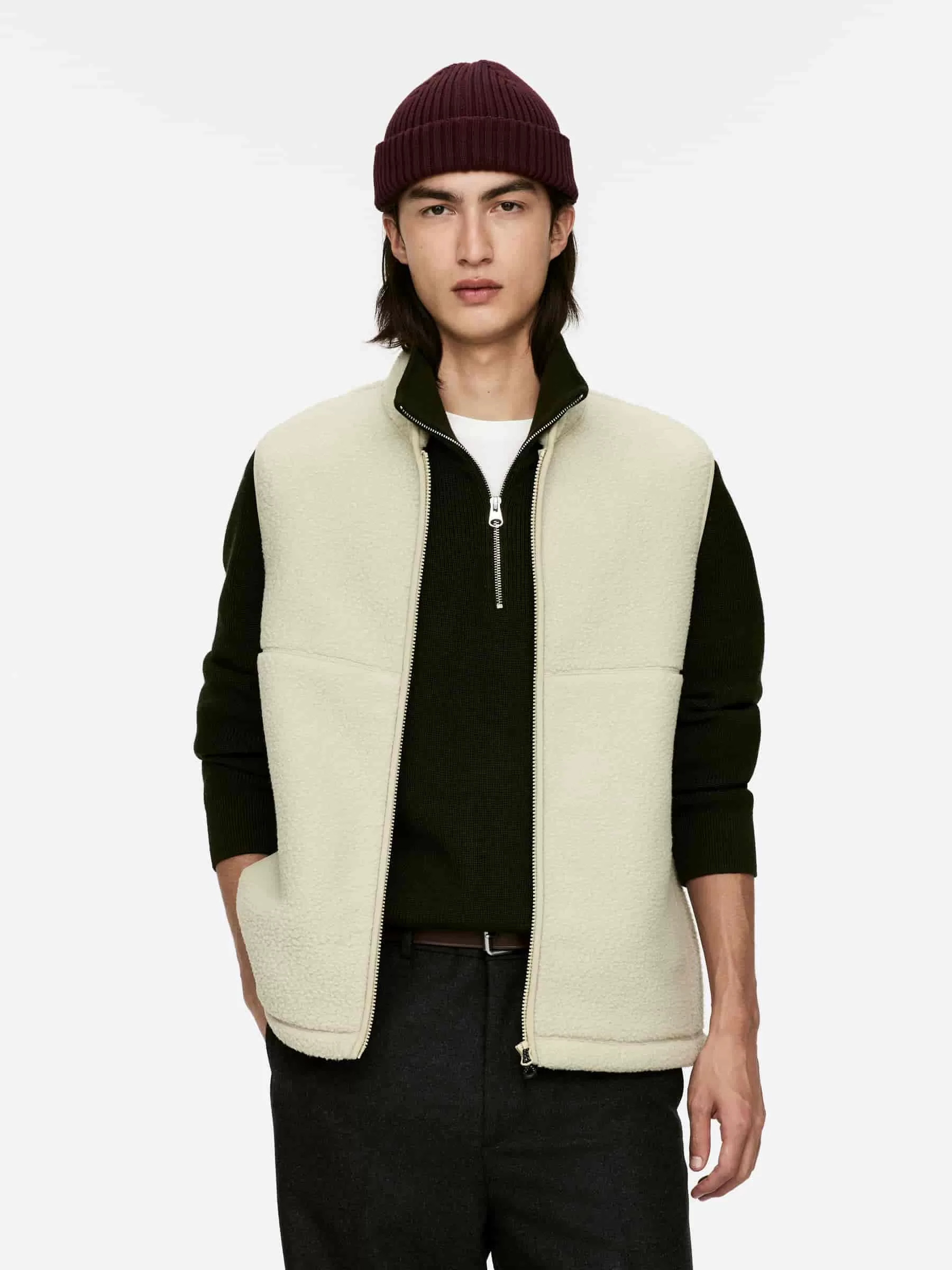 Isolerande 2-vägs fleeceväst med dragkedja. Den är designad med framfickor och elastiska blixtlåsdragare för enkel öppning när du bär handskar. Dubbelskiktskonstruktionen ger extra värme.