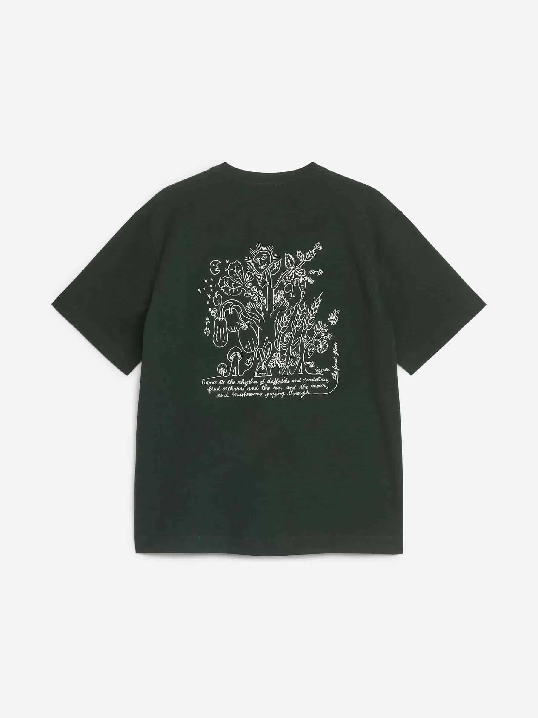 Unisex T-shirt med tryckt motiv både fram och bak. En kortärmad stil tillverkad av en enkeltröja i mellanvikt 220 GSM i bomull. Klipp för en generös passform. Denna produkt är en del av ARKET CAFÉ-kollektionen med illustrationer av Olga Prader.